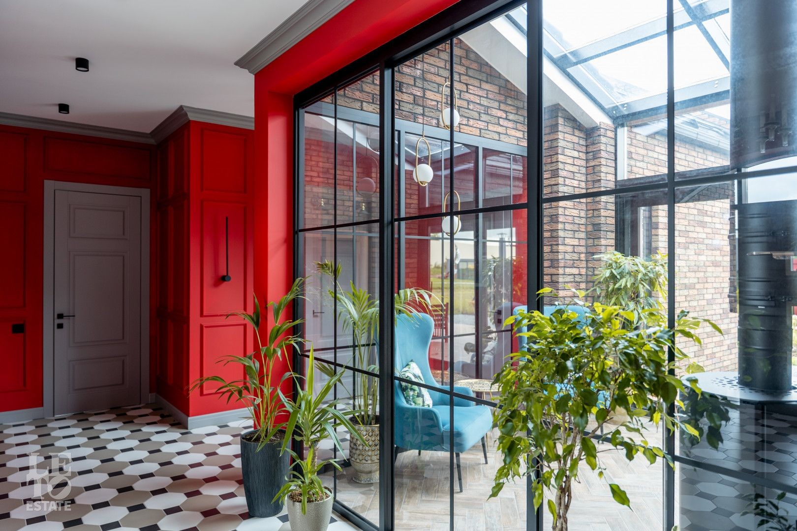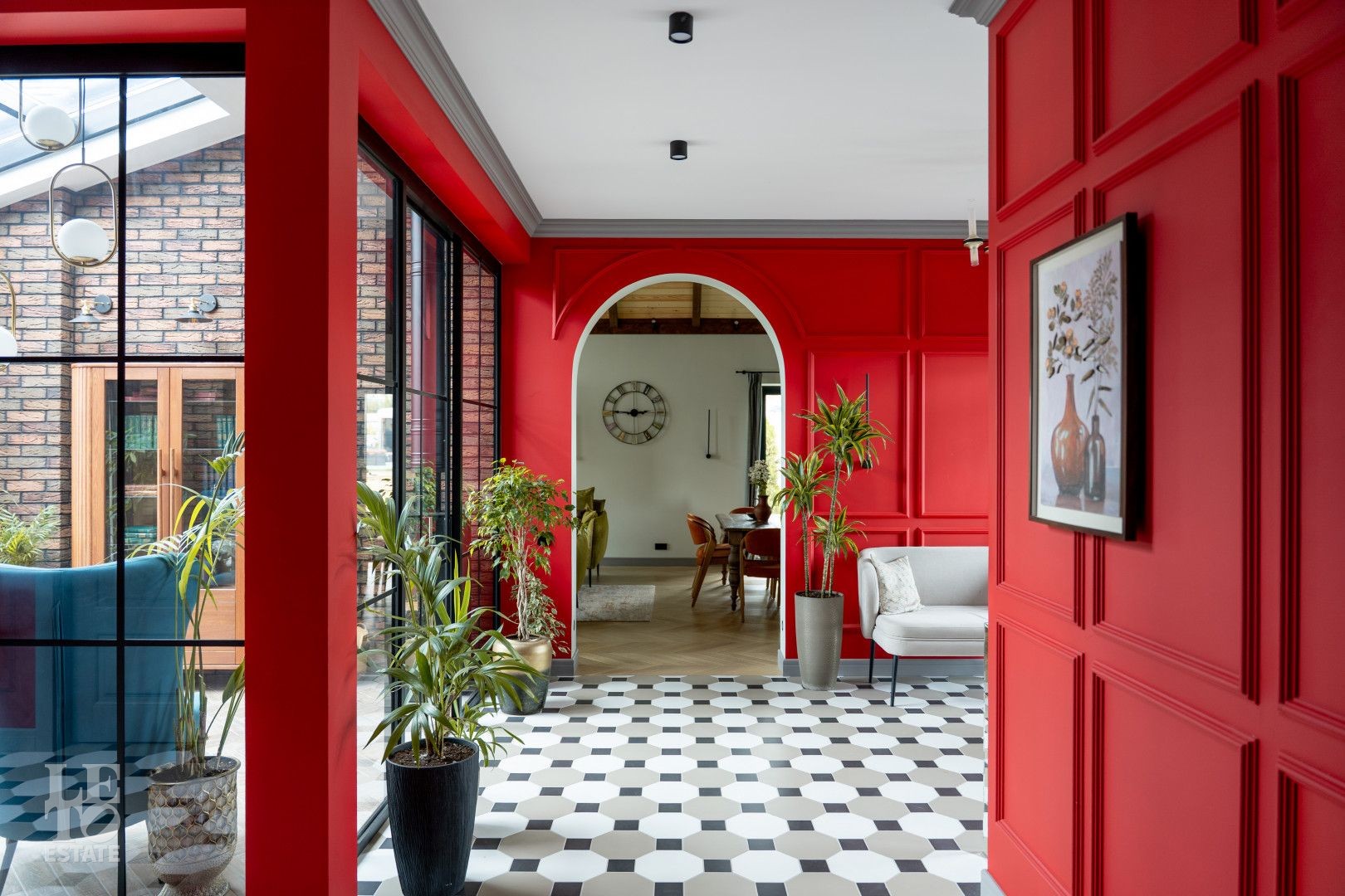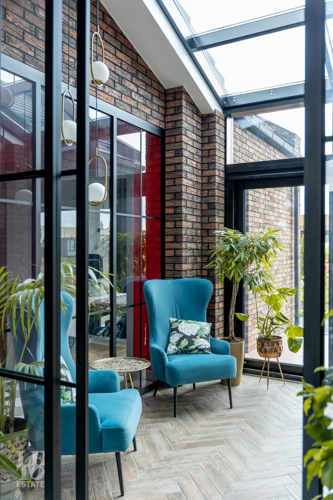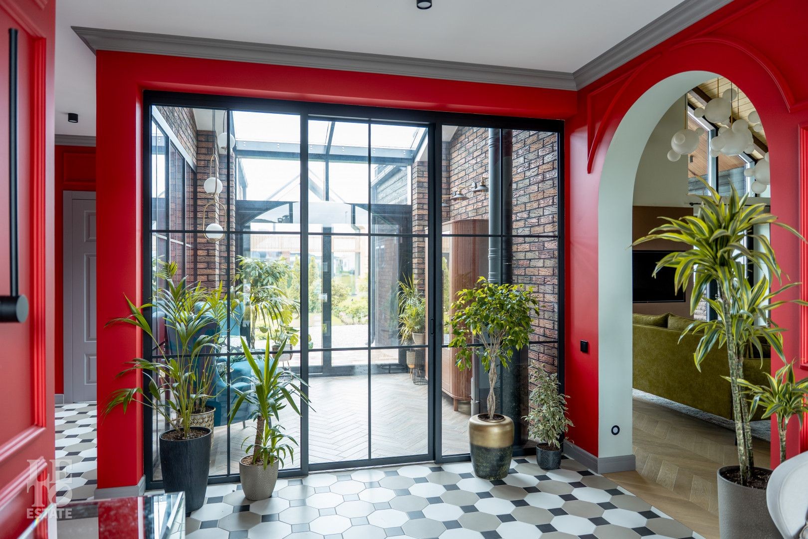 Архитектурный шедевр, в котором хочется жить. Фасад дома, одетый в уникальную кладку из трех оттенков кирпича Faber-Jar, играет объемом и глубиной, создавая неповторимый образ английского стиля. Его визитная карточка — грандиозный витраж и панорамное остекление, которое стирает границу между изысканным интерьером и природой вашего сада.