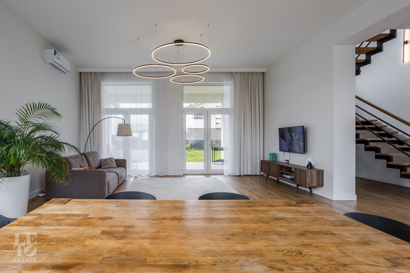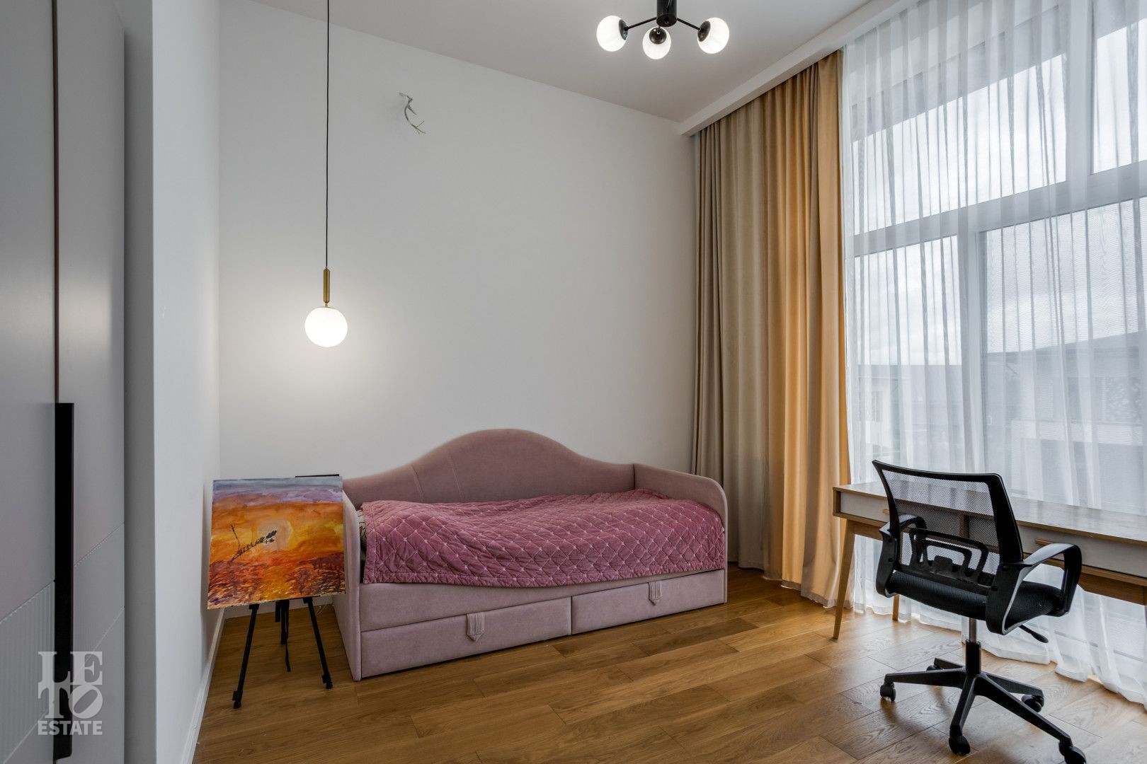 Планировка продумана для максимального удобства: просторная гостиная-столовая, стильная кухня, оснащенная современной бытовой техникой, четыре уютные спальни, включая мастер-спальню с индивидуальной гардеробной зоной.