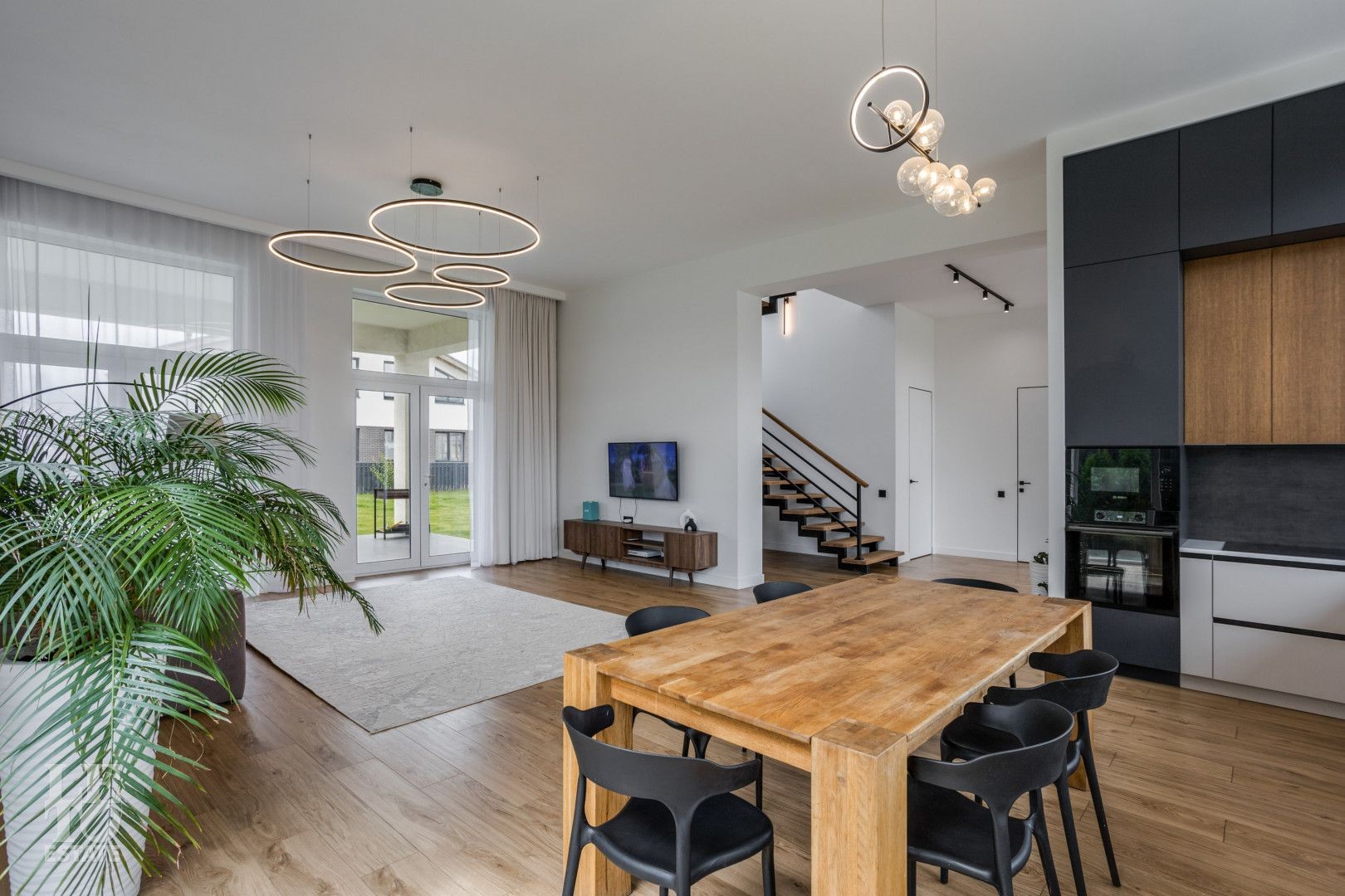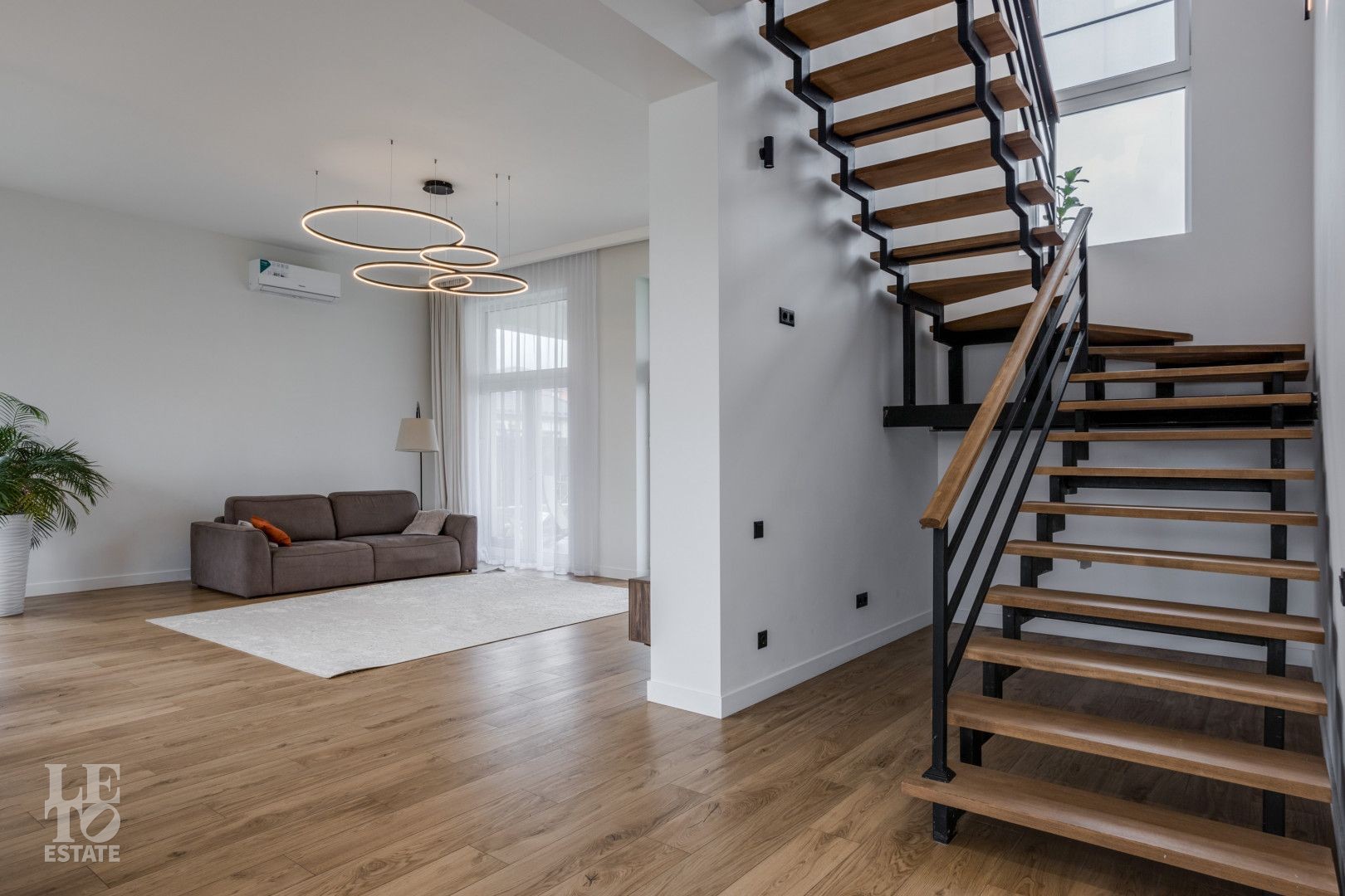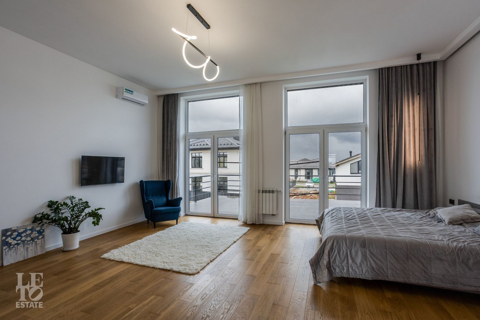 Большие панорамные окна и высокие потолки обеспечивают естественное освещение на протяжении всего дня, создавая атмосферу тепла и уюта даже в пасмурную погоду. Этот дом идеально подойдет для тех, кто ищет современный и функциональный вариант загородного жилья с комфортной близостью к столице и развитой инфраструктурой.