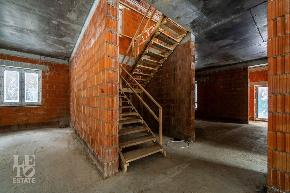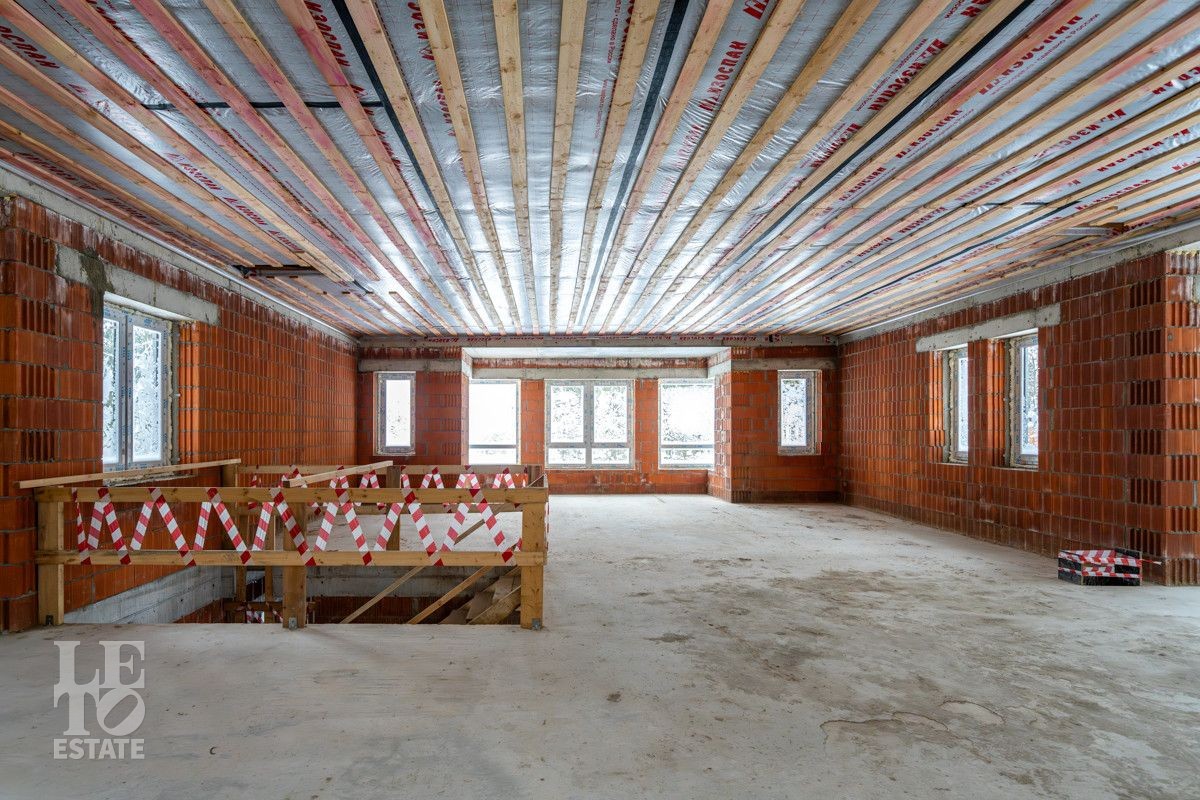 В архитектурном проекте данного дома продумано все до мельчайшей детали. Строили, как для себя. В основании – монолитная плита на сваях с ростверком, стены построены из керамического кирпича Porotherm 38 Thermo, перекрытия монолитные. Кровля – фальцевая ручной работы из кровельного металла Pure Tech Mat zn 275 с гарантией 35 лет, утеплена минеральной ватой 200 мм. Водосточная система аквасистем. В доме установлены пластиковые стеклопакеты Veko Premium, входная дверь – Deft. Первый этаж дома облицован керамическим кирпичом Konigstein (250х85х65), второй – декоративной штукатуркой. Благодаря такому приему, дом будет выглядеть стильно и современно долгие годы.