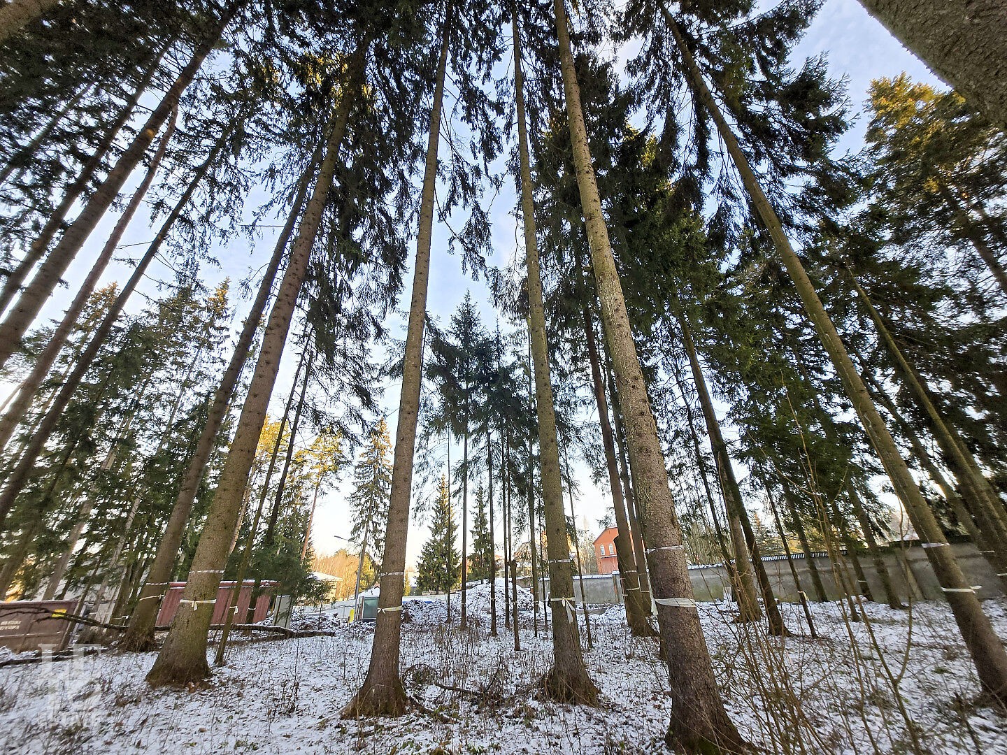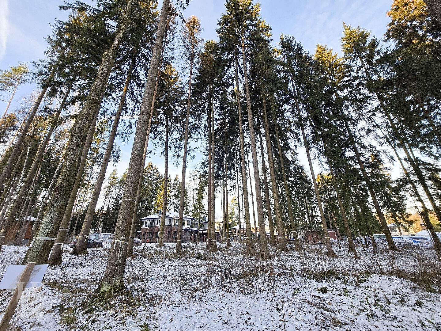Коттеджный поселок утопает в сосновом бору. На каждом участке растут вековые сосны.