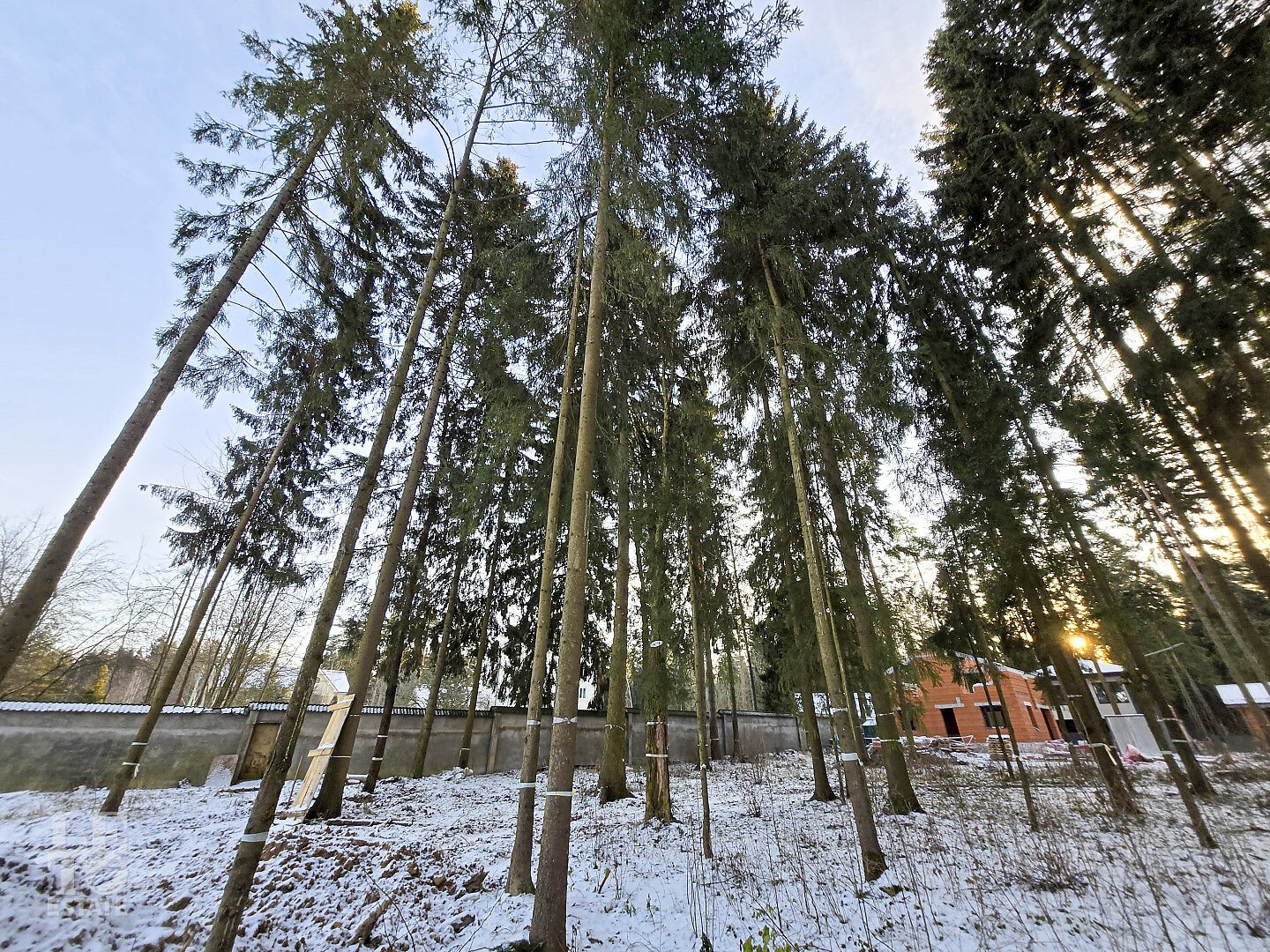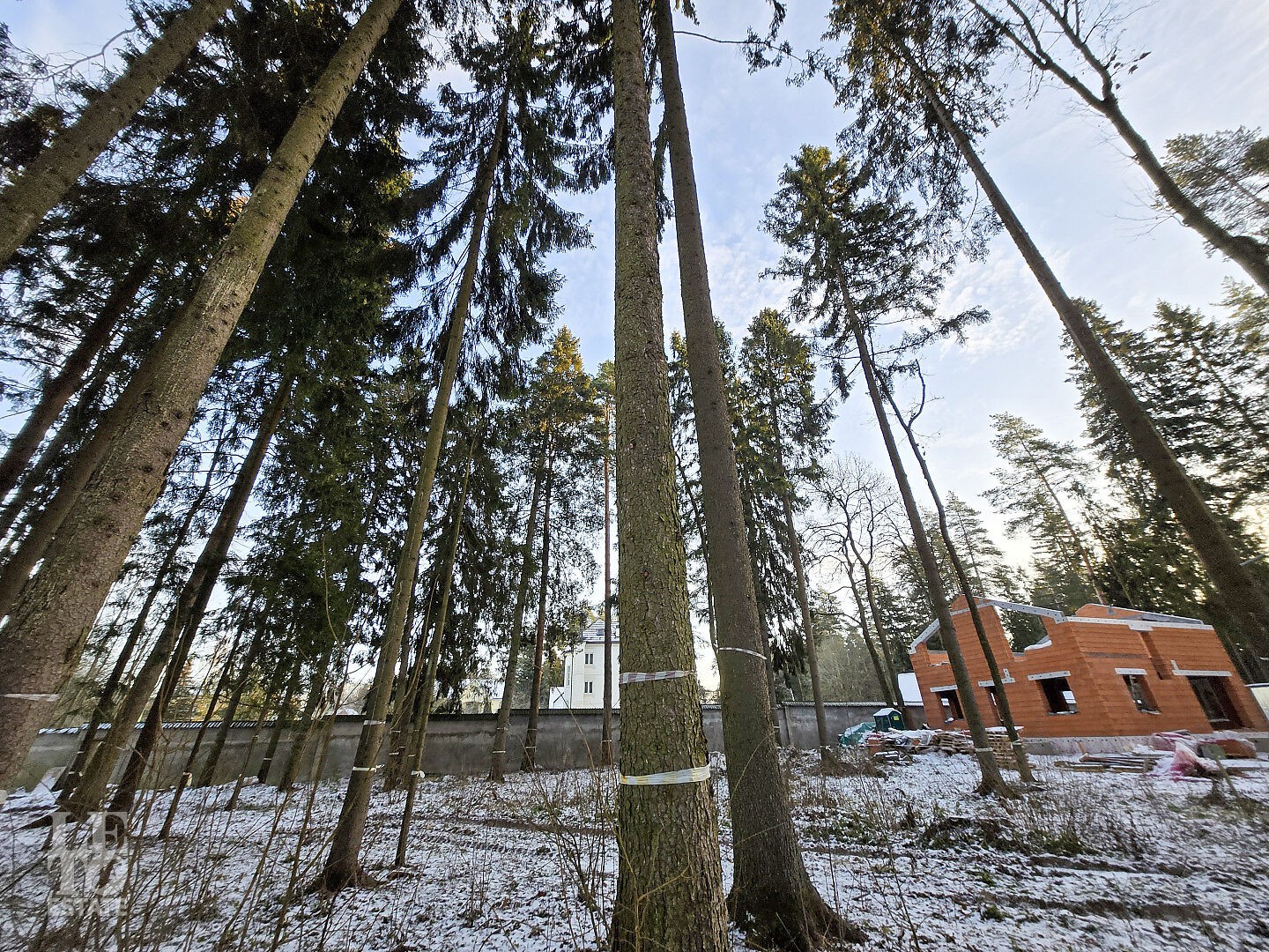 Коттеджный поселок утопает в сосновом бору. На каждом участке растут вековые сосны.
