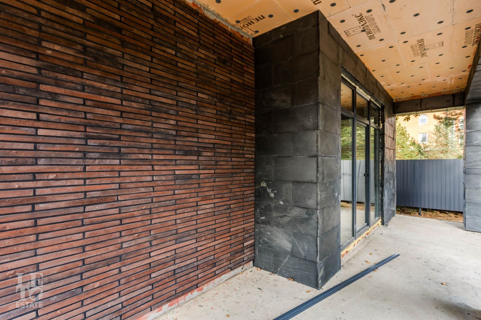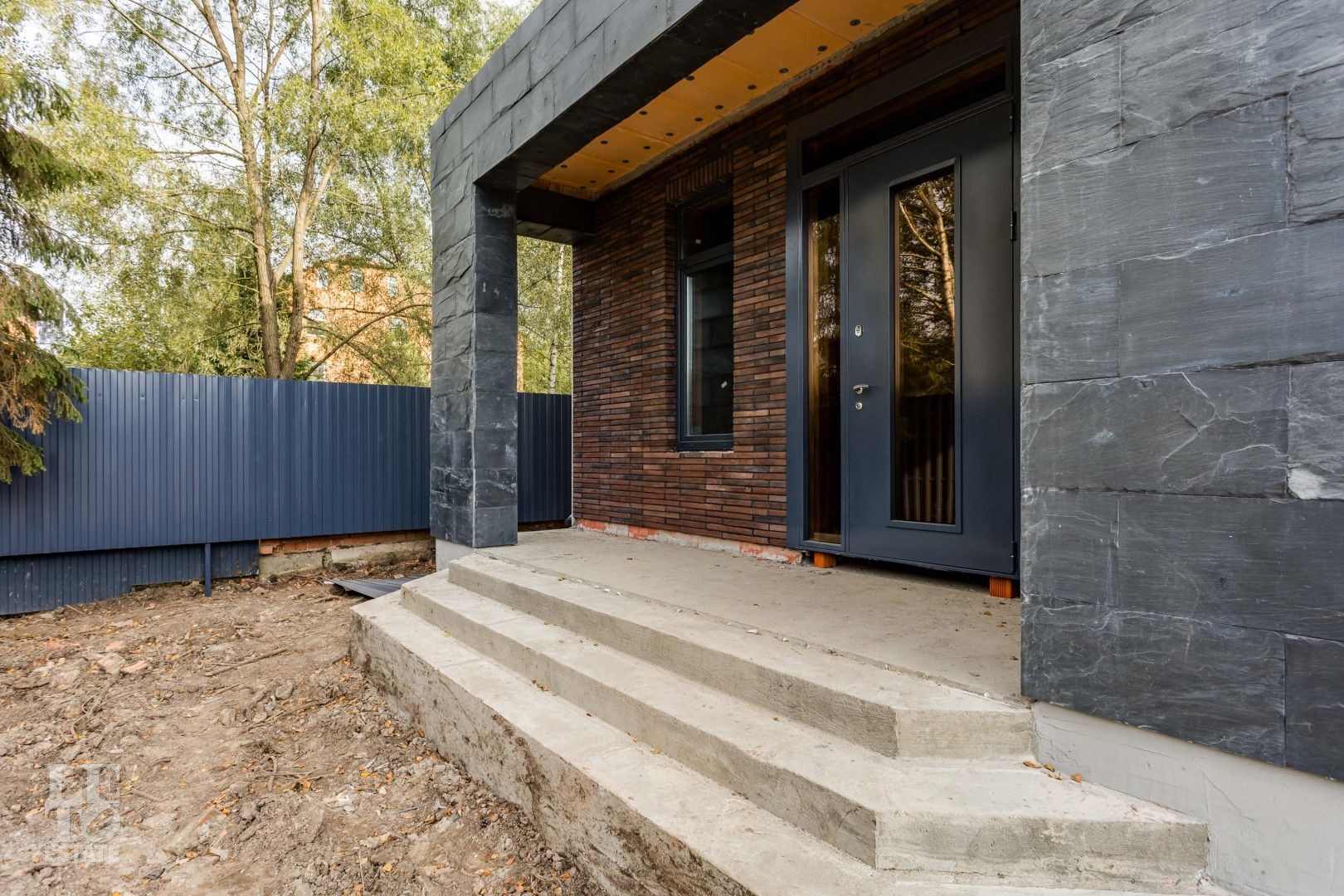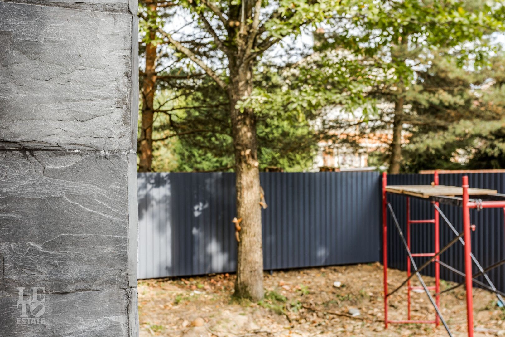 Участок огорожен. Внутренние заборы – металлические, высота 1,8 м. Фасадное ограждение – кирпичные столбы, бетонная лента, горизонтальный штакетник, подсветка. Калитка с закладной под домофон. Откатные ворота с закладной под автоматику.