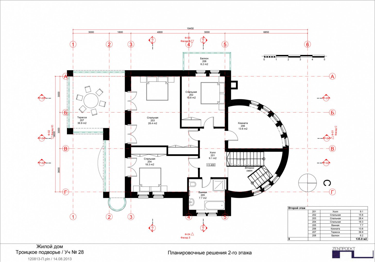 Второй этаж - три спальни с балконами, санузел, кабинет (сауна).