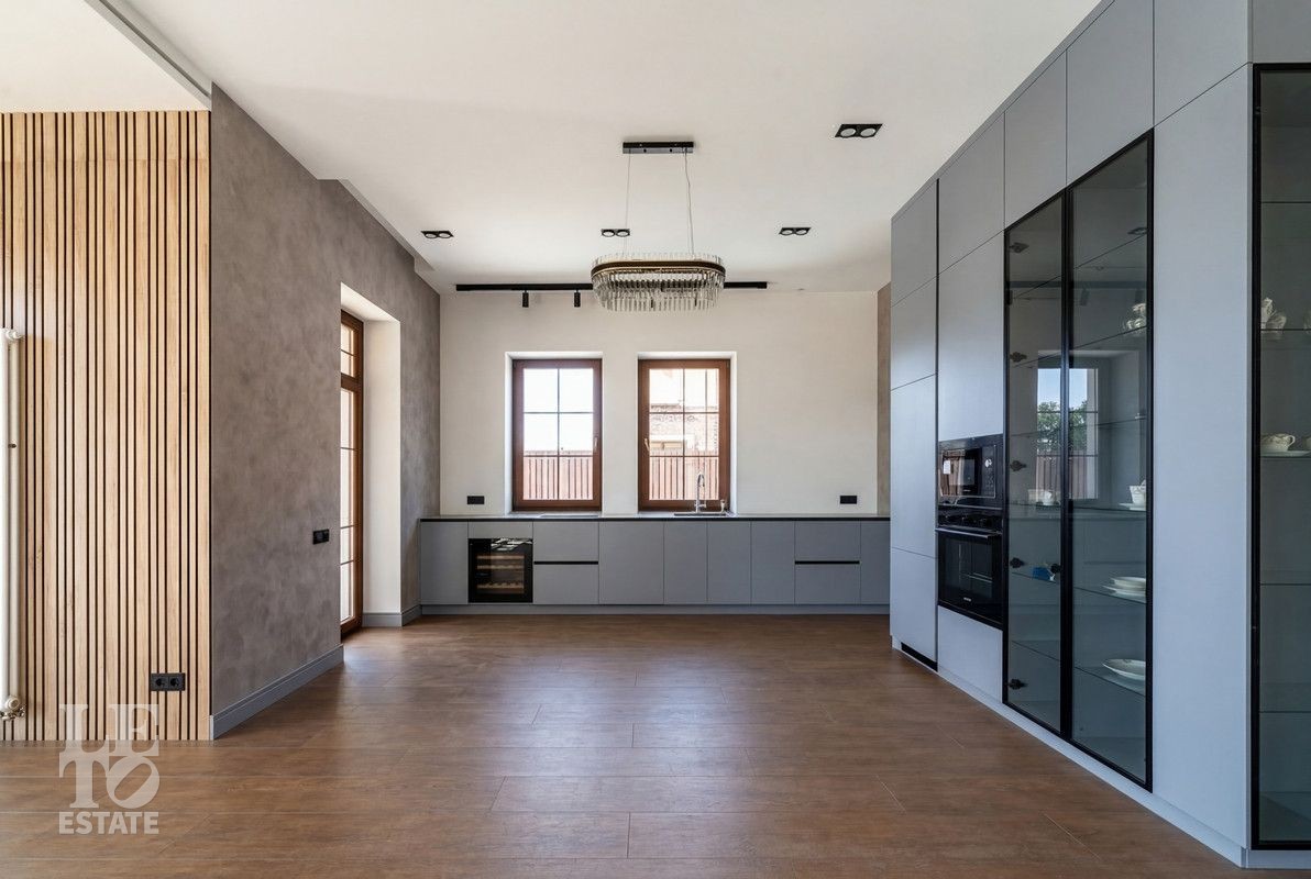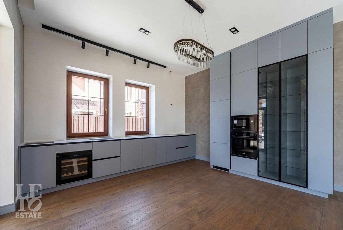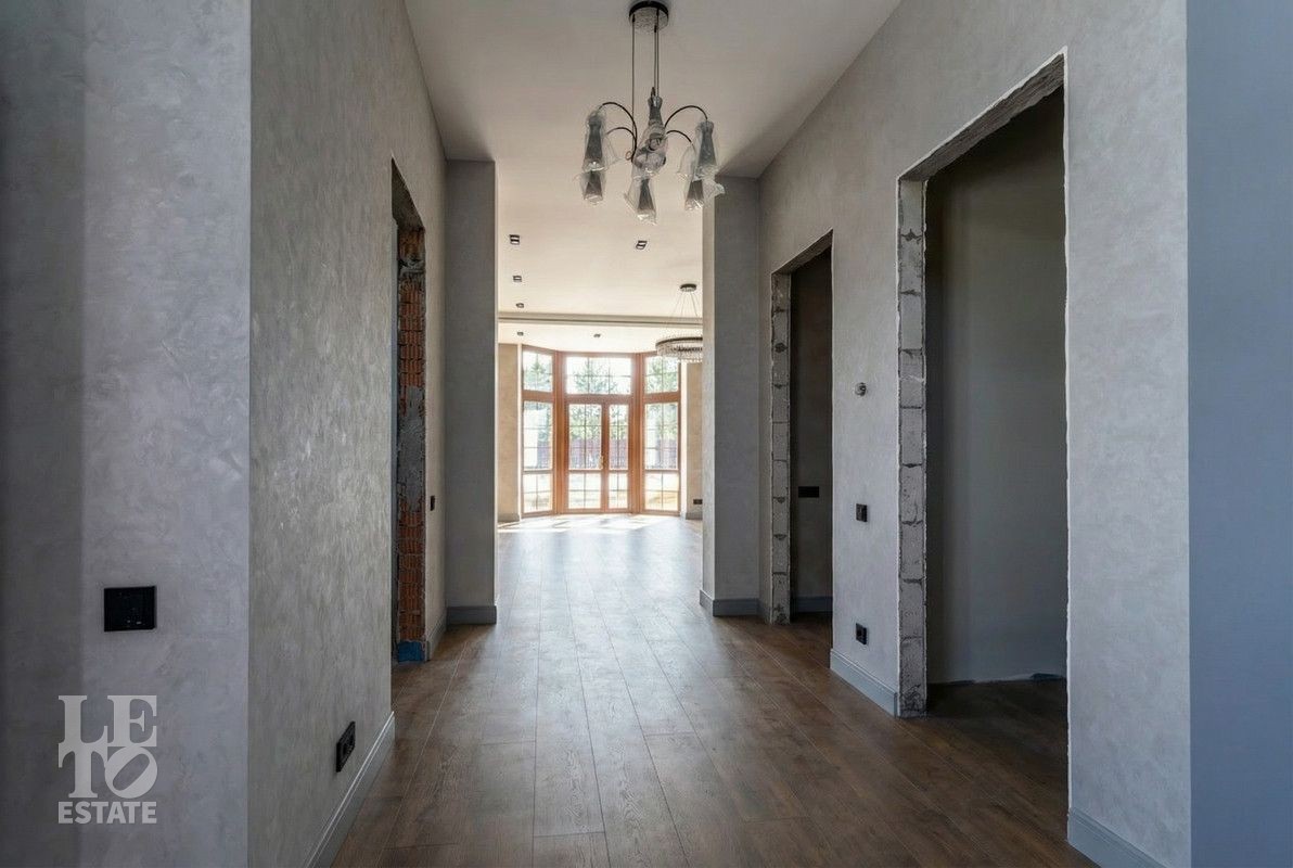 Дом построен из керамического кирпича, отделан снаружи декоративной плиткой. Дом построен по индивидуальному проекту, в средиземноморском стиле. Идеальное состояние нового дома, в котором все пространство продуманное и реализовано для самого взыскательного покупателя! Установлены дорогие деревянные окна, кровля покрыта мягкой черепицей. Все центральные коммуникации заведены в дом, возведены все перегородки из полнотелого кирпича, выполнена разводка канализации и водопровода с установкой сантехники и мебели для санузлов, установлена система теплых полов на первом этаже и в санузлах, смонтирована и запущена котельная и система отопления. Установлена вся система освещения с люстрами и настенными/потолочными светильниками. Пространство кухни-столовой реализовано в полном соответствии с дизайн-проектом и закончено установкой встроенной кухонной мебелью и техникой BOSCH.