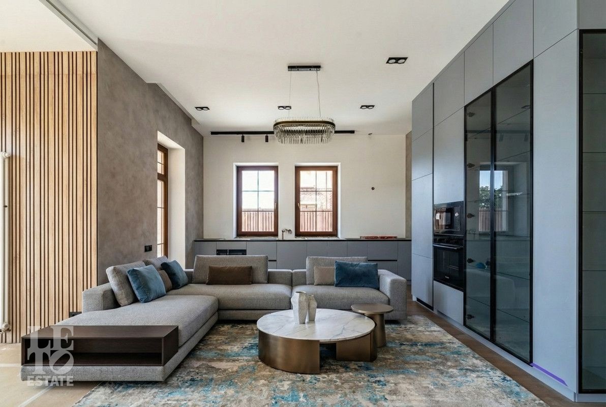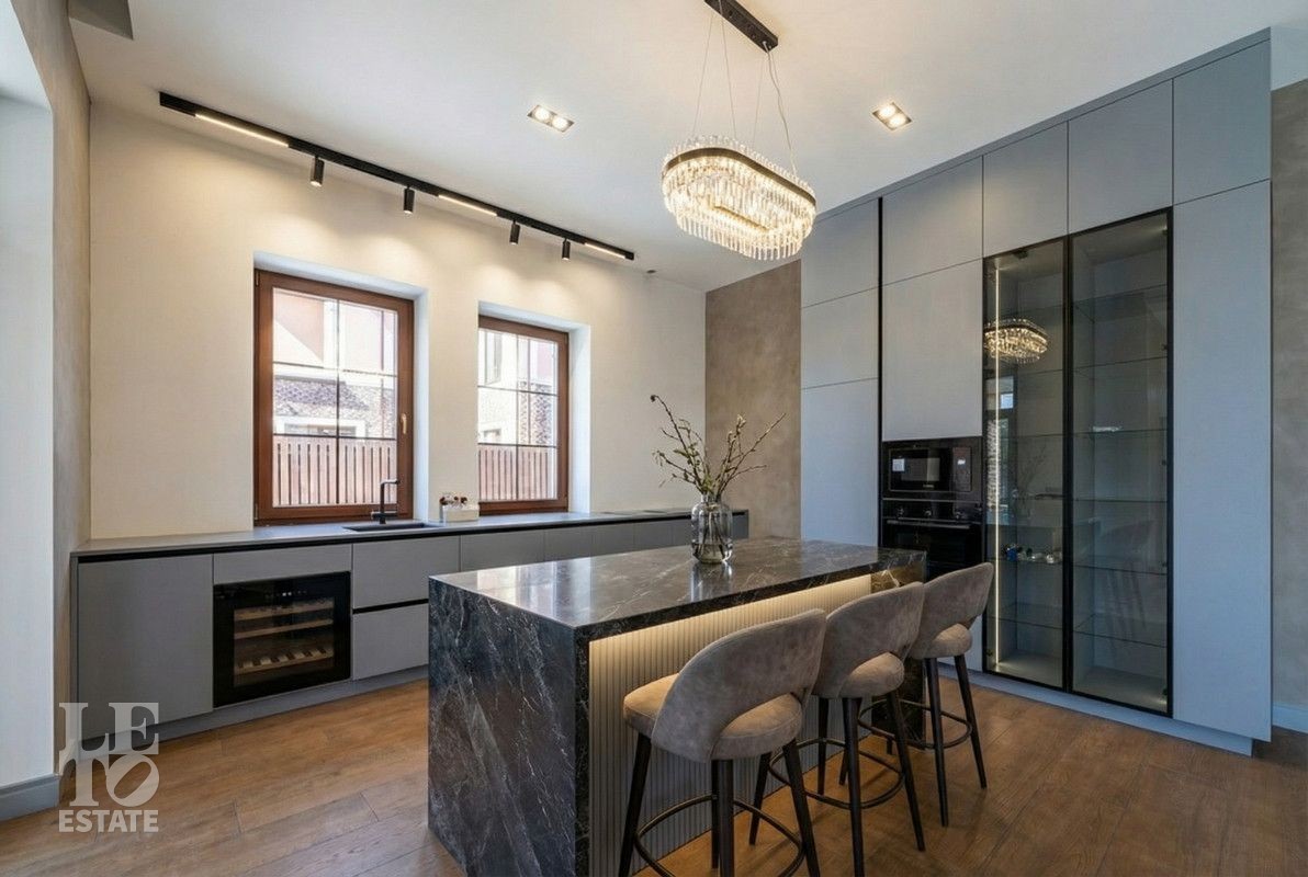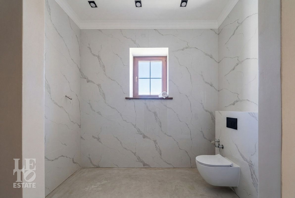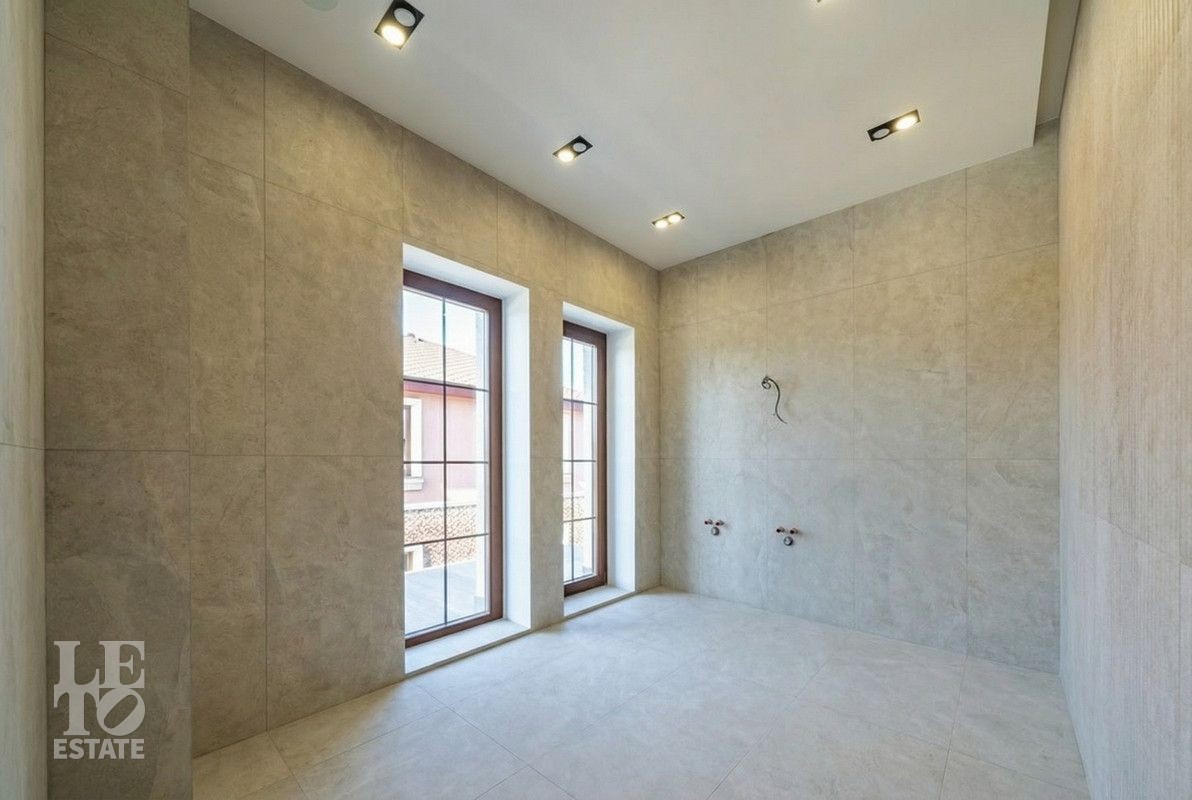 Дом построен из керамического кирпича, отделан снаружи декоративной плиткой. Дом построен по индивидуальному проекту, в средиземноморском стиле. Идеальное состояние нового дома, в котором все пространство продуманное и реализовано для самого взыскательного покупателя! Установлены дорогие деревянные окна, кровля покрыта мягкой черепицей. Все центральные коммуникации заведены в дом, возведены все перегородки из полнотелого кирпича, выполнена разводка канализации и водопровода с установкой сантехники и мебели для санузлов, установлена система теплых полов на первом этаже и в санузлах, смонтирована и запущена котельная и система отопления. Установлена вся система освещения с люстрами и настенными/потолочными светильниками. Пространство кухни-столовой реализовано в полном соответствии с дизайн-проектом и закончено установкой встроенной кухонной мебелью и техникой BOSCH.