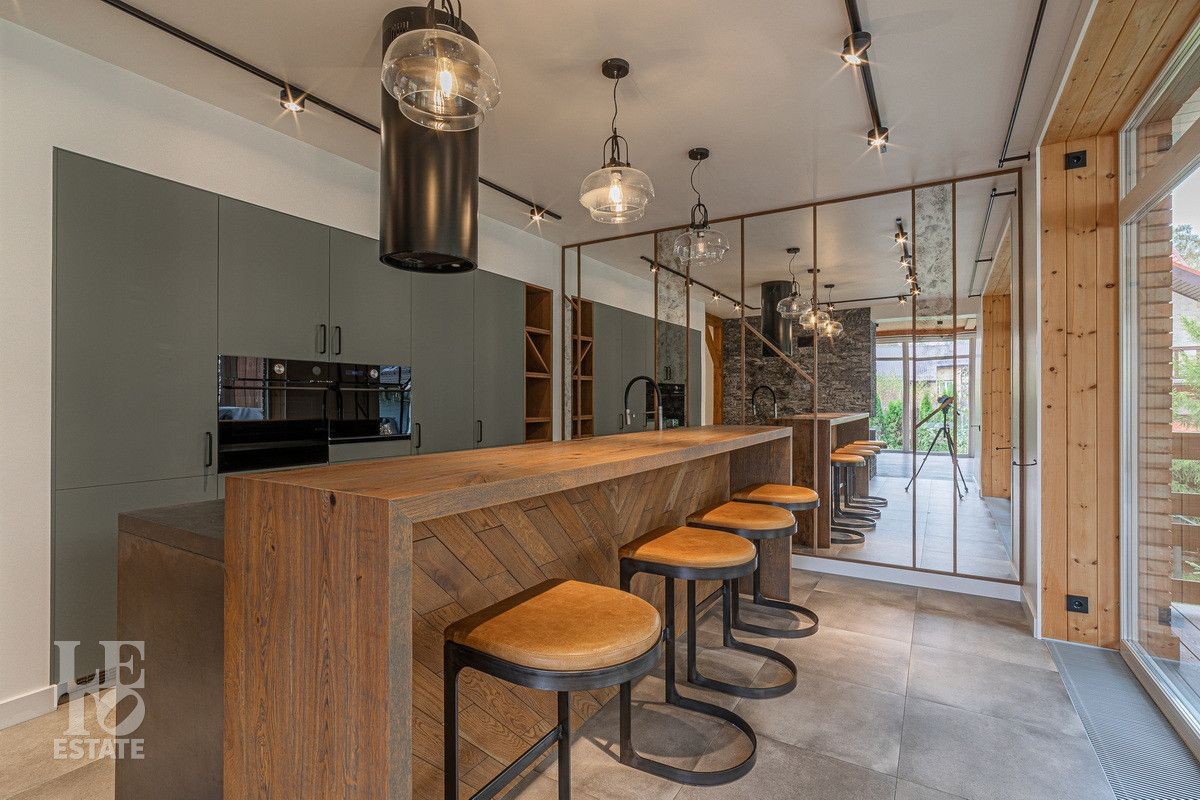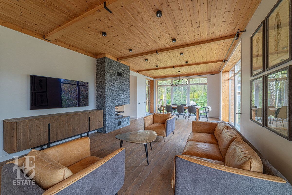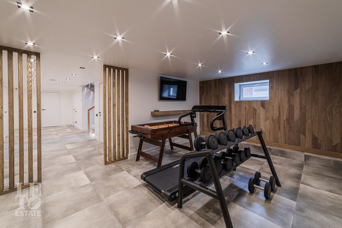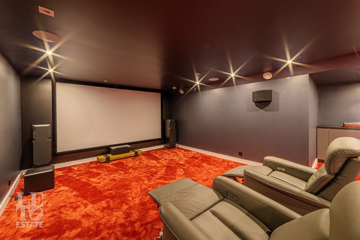 Планировка дома тщательно продумана и функциональна. В доме есть просторная кухня-гостиная с выходом на большую открытую террасу, где можно проводить время с семьей и друзьями, наслаждаясь общением и прекрасной природой. Дом также предлагает 4 спальни, которые обеспечат комфортный сон и отдых для каждого члена семьи. Кабинет позволит создать рабочую атмосферу для работы или учебы, а на подвальном этаже располагается кинотеатр и тренажерный зал для проведения досуга на любой вкус.