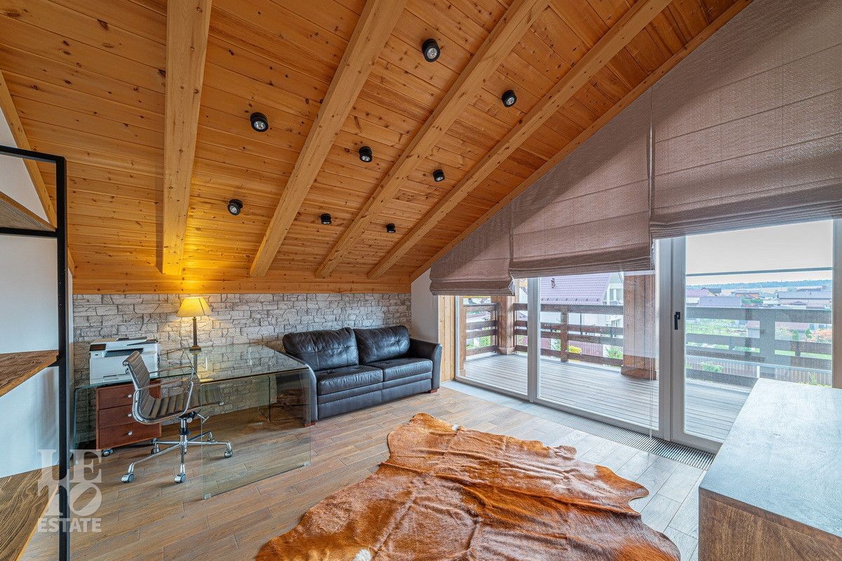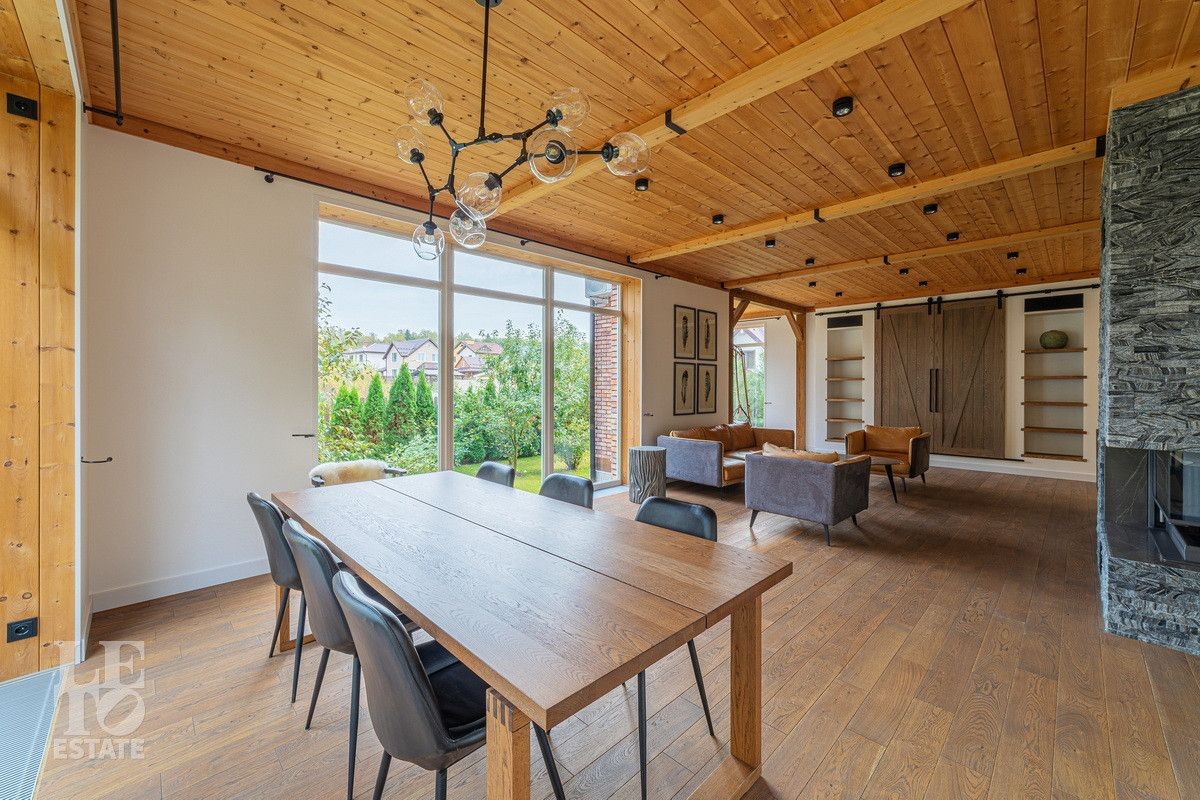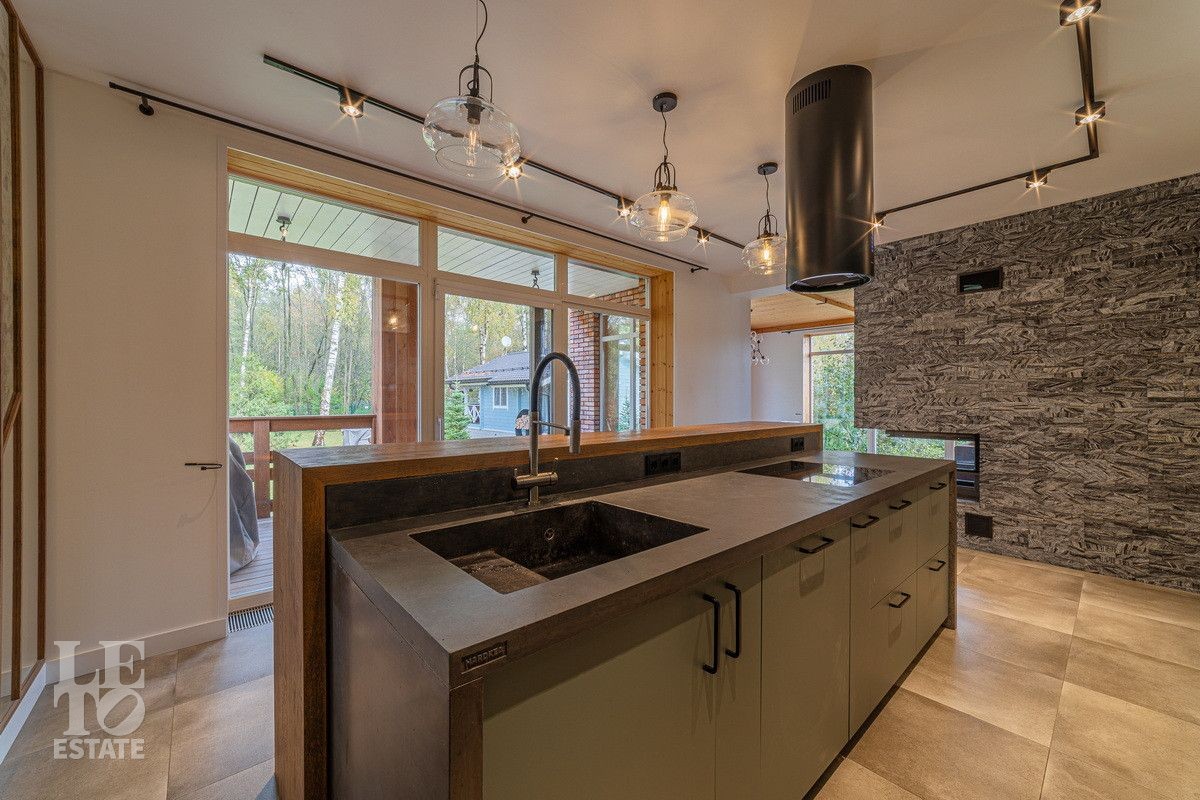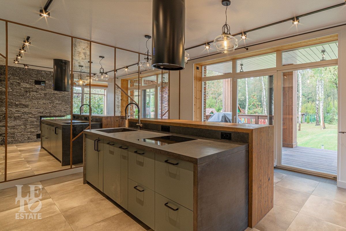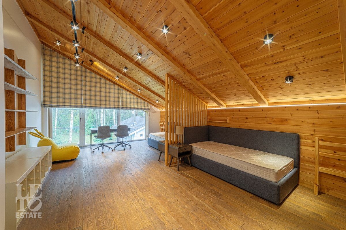 Планировка дома тщательно продумана и функциональна. В доме есть просторная кухня-гостиная с выходом на большую открытую террасу, где можно проводить время с семьей и друзьями, наслаждаясь общением и прекрасной природой. Дом также предлагает 4 спальни, которые обеспечат комфортный сон и отдых для каждого члена семьи. Кабинет позволит создать рабочую атмосферу для работы или учебы, а на подвальном этаже располагается кинотеатр и тренажерный зал для проведения досуга на любой вкус.