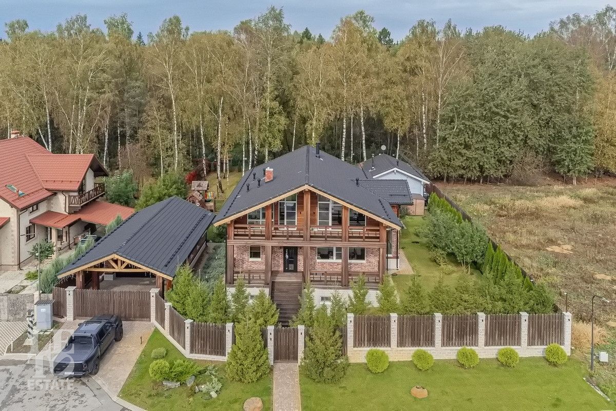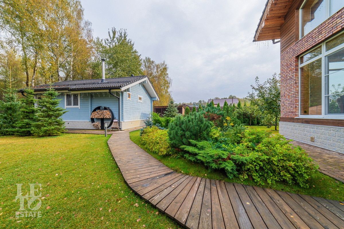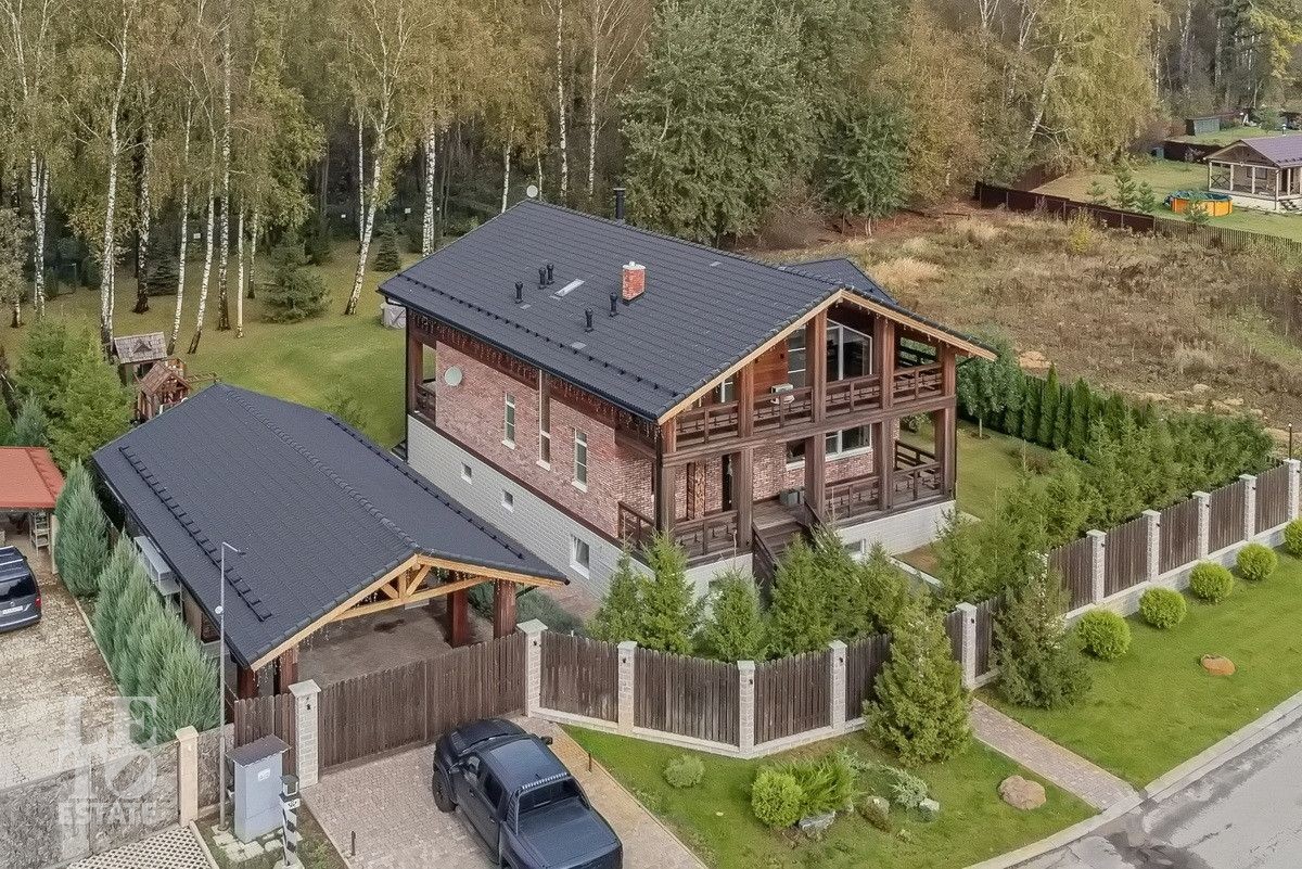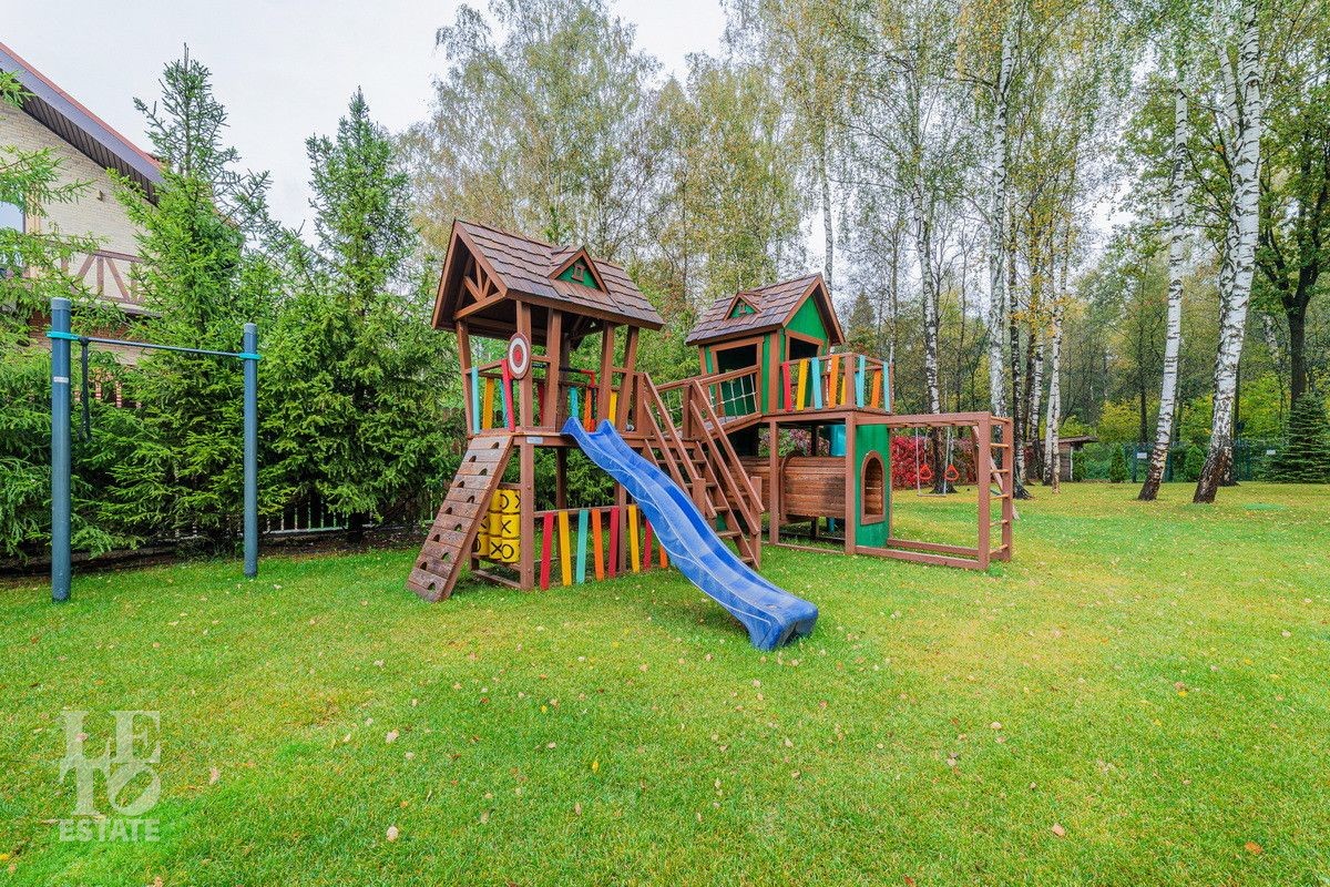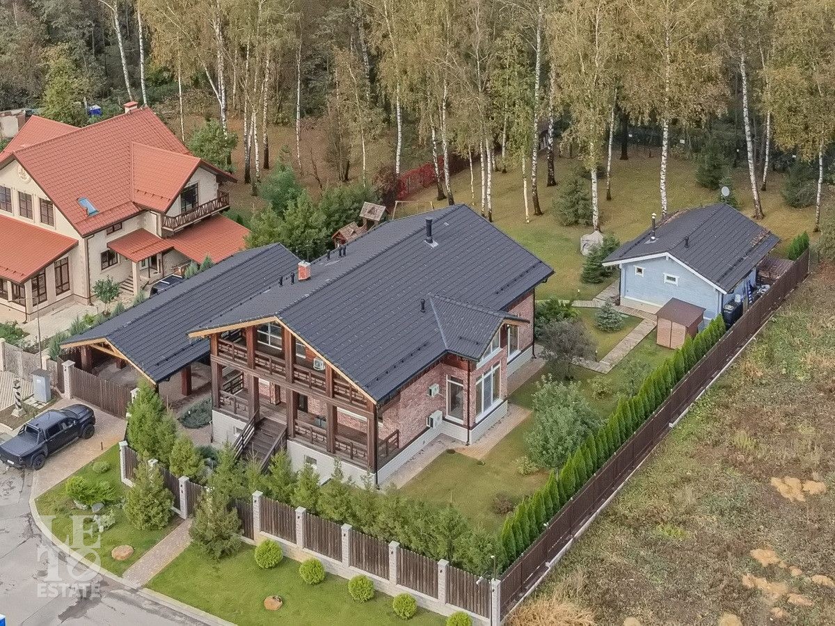 Дом расположен на великолепном и ухоженном при лестном участке, продуманный ландшафт до мелочей , высажены многолетние туи, голубые ели, и плодовые деревья , установлен автоматический полив, освещение, дренажная система, детская площадка фирмы Crooked.