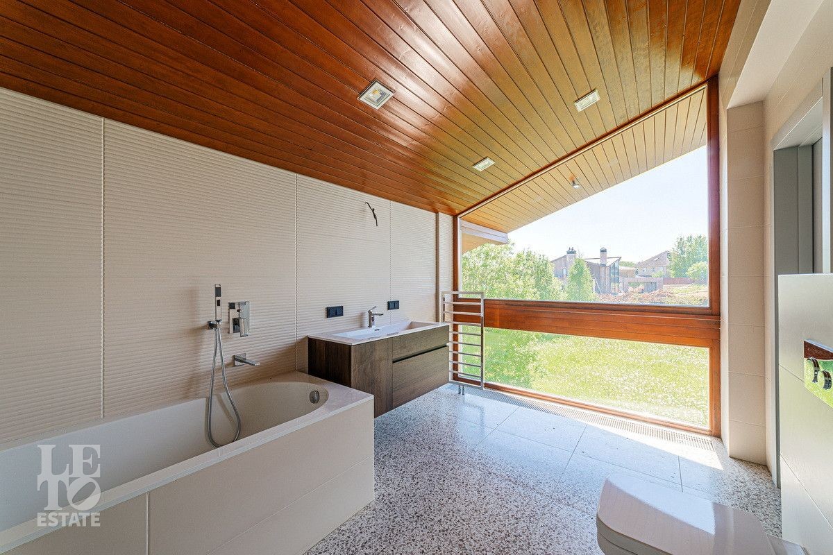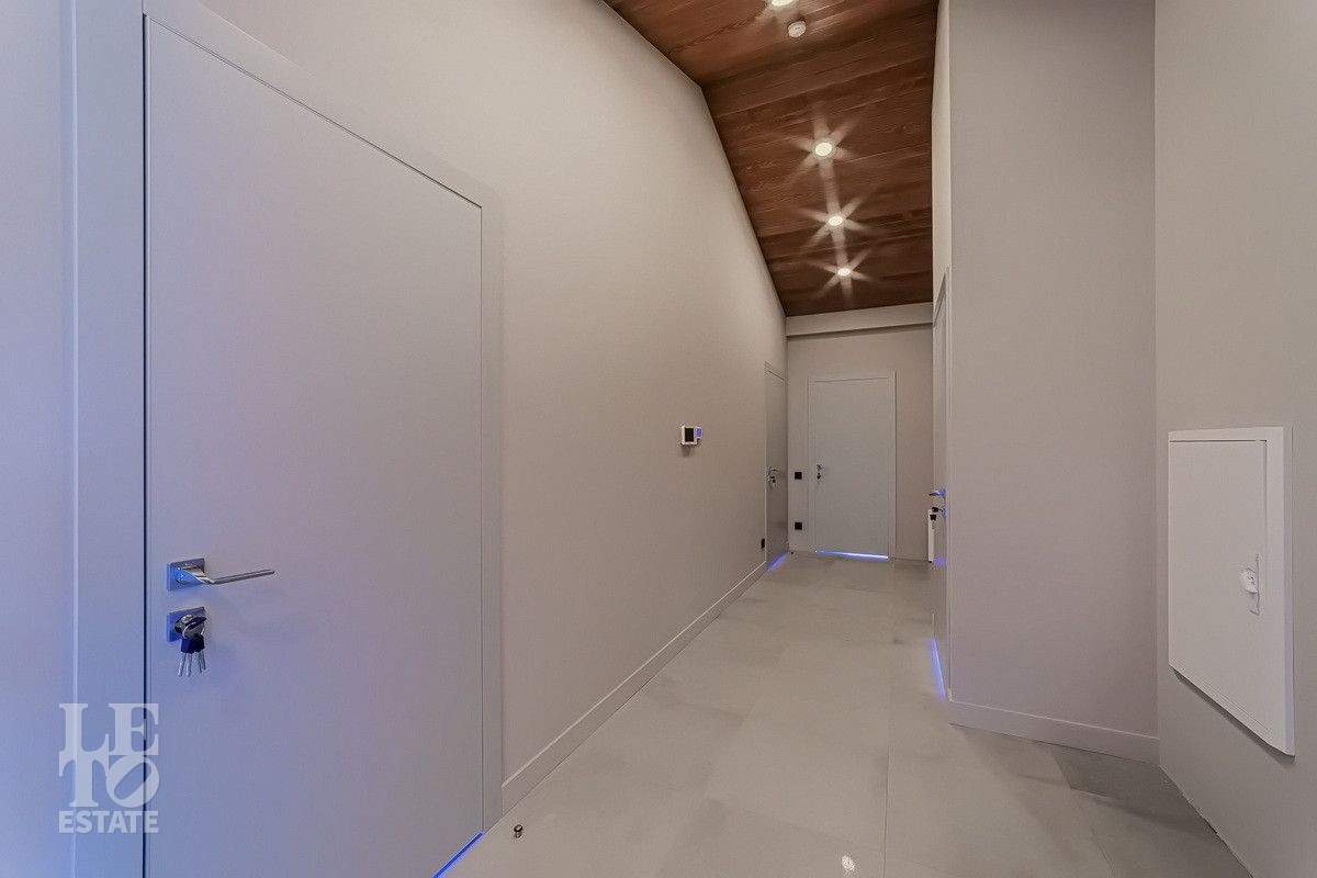 Дом расположен на участке 26,5 соток в тупиковой и очень тихой улице, вдали от соседских домов, рядом с центральным прудом. Отделка дома закончена в мае 2024 года и имеет просторную и продуманную планировку, одну из лучших в поселке.