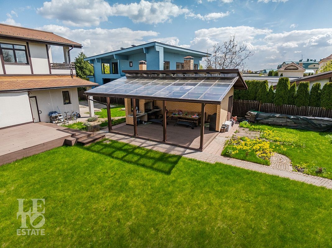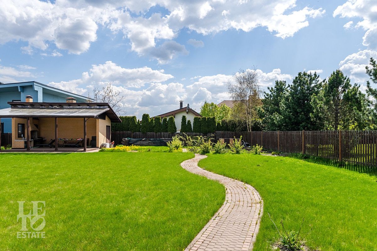 На ухоженном участке 20 соток расположена просторная крытая беседка с зоной барбекю для отдыха и приема гостей, соединенная с задней стороны с хозблоком для хранения инвентаря и материалов.