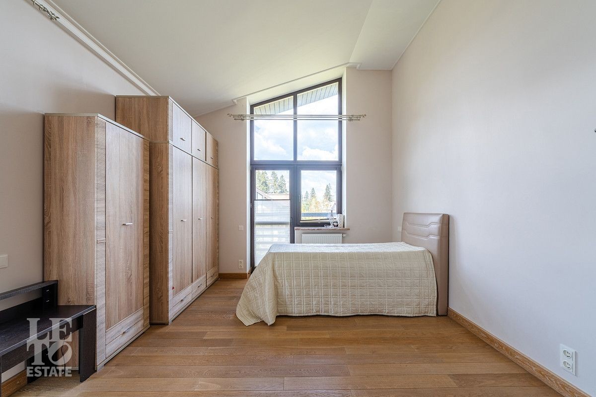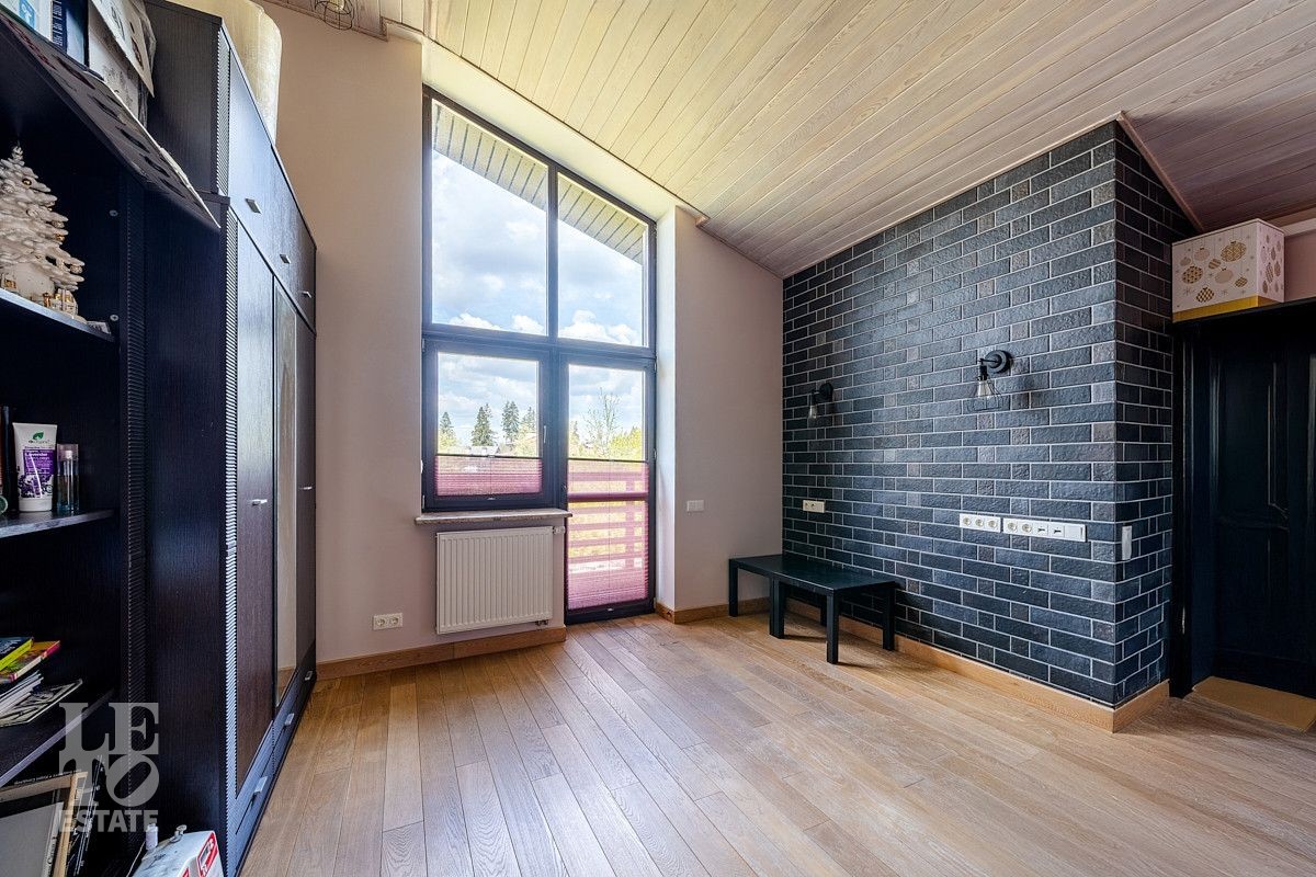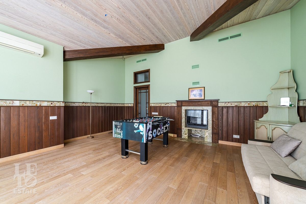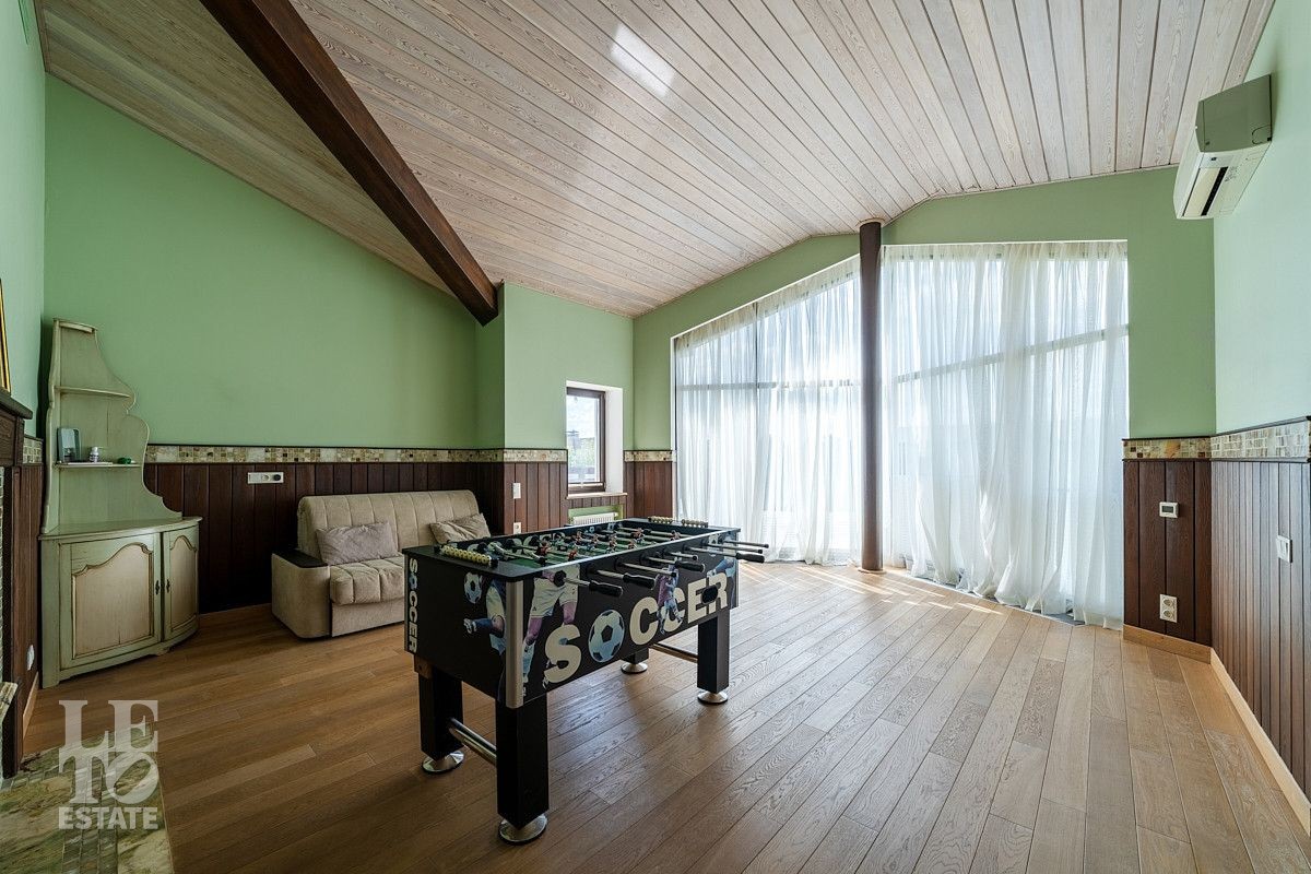 На втором этаже: мастер блок с кабинетом, своим просторным санузлом и гардеробной, игровая комната с панорамными окнами и камином, а также четыре уютные комнаты, санузел с душевой и санузел с ванной, душевой и балконом.