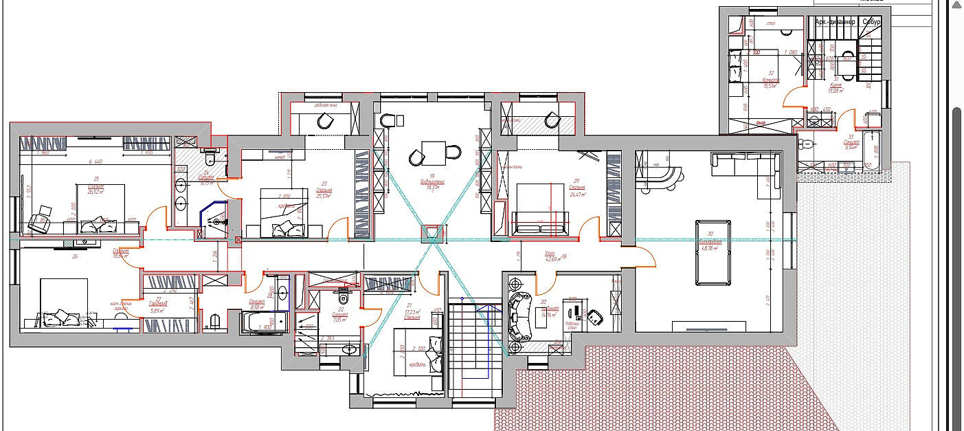 Также в доме предусмотрен блок для персонала с отдельным входом