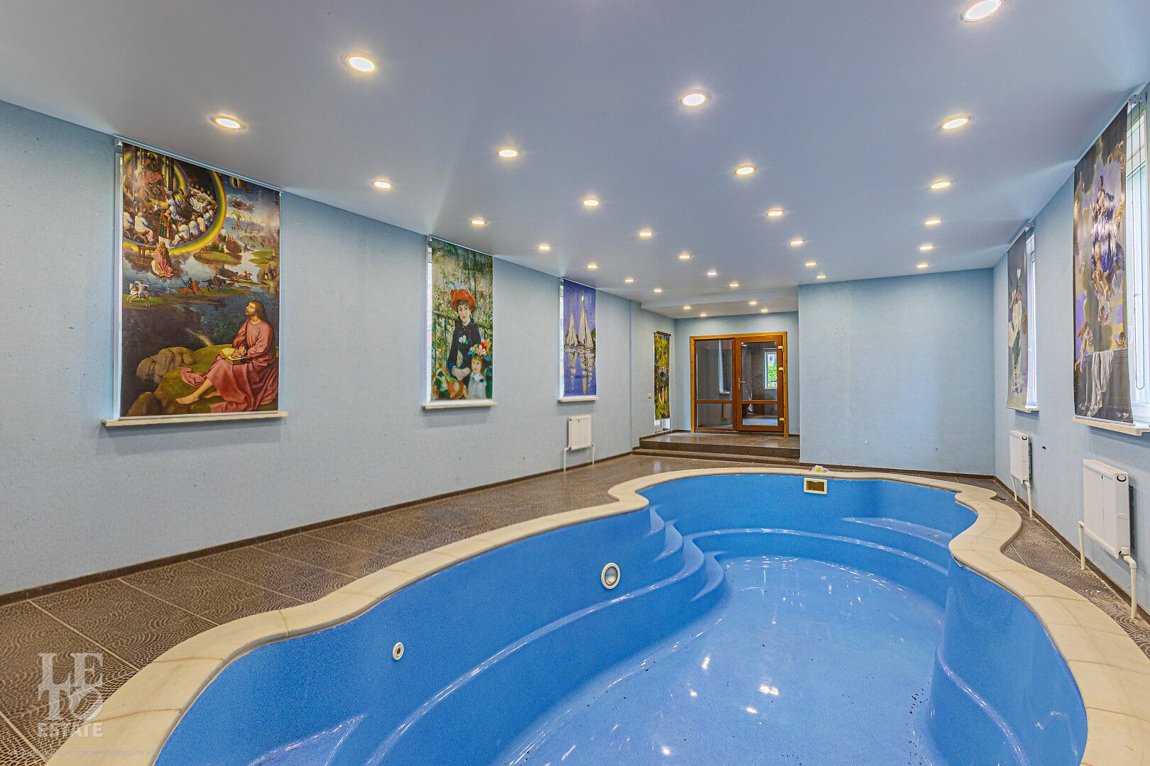 - На земельном участке в 15,29 соток: расположен современный двухэтажный дом с большими окнами, балконной группой, гаражом, бассейном с сауной.