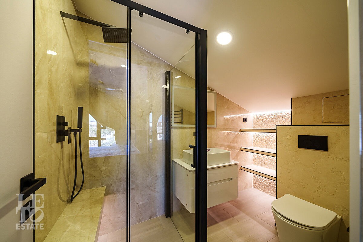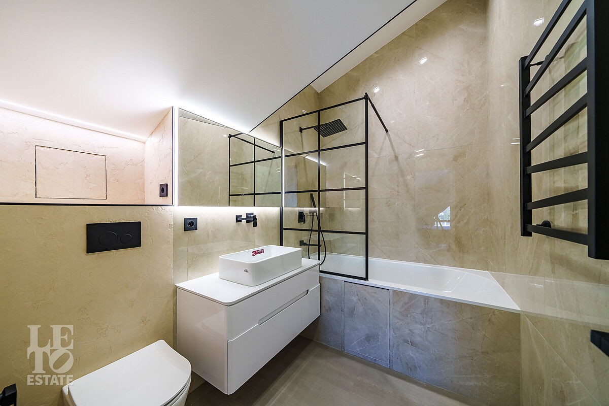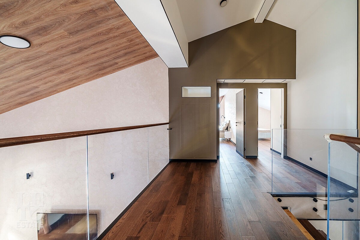 Второй этаж: спальня с санузлом с ванной, спальня санузлом с душевой, мастерспальня с гардеробной и санузлом с душевой.