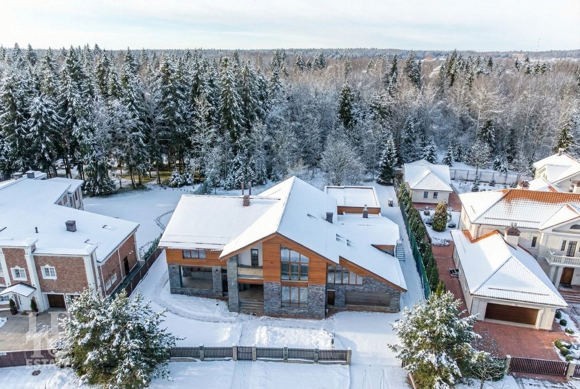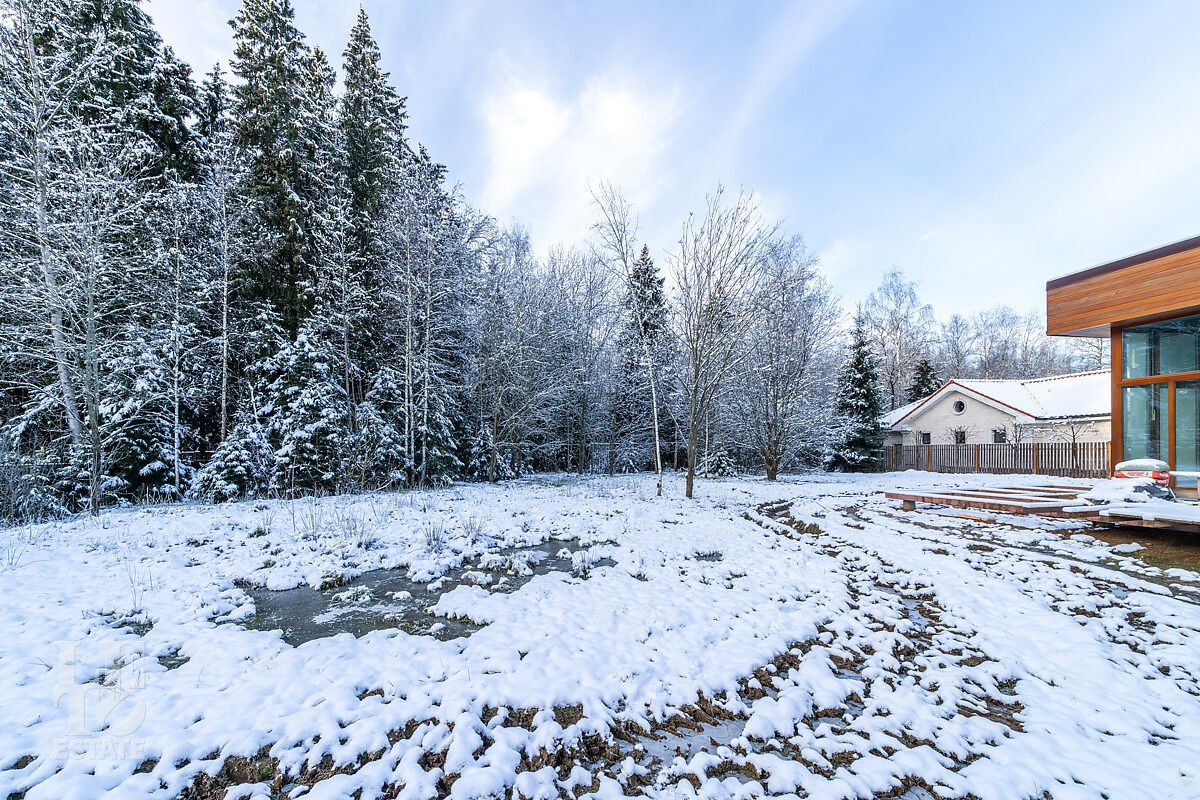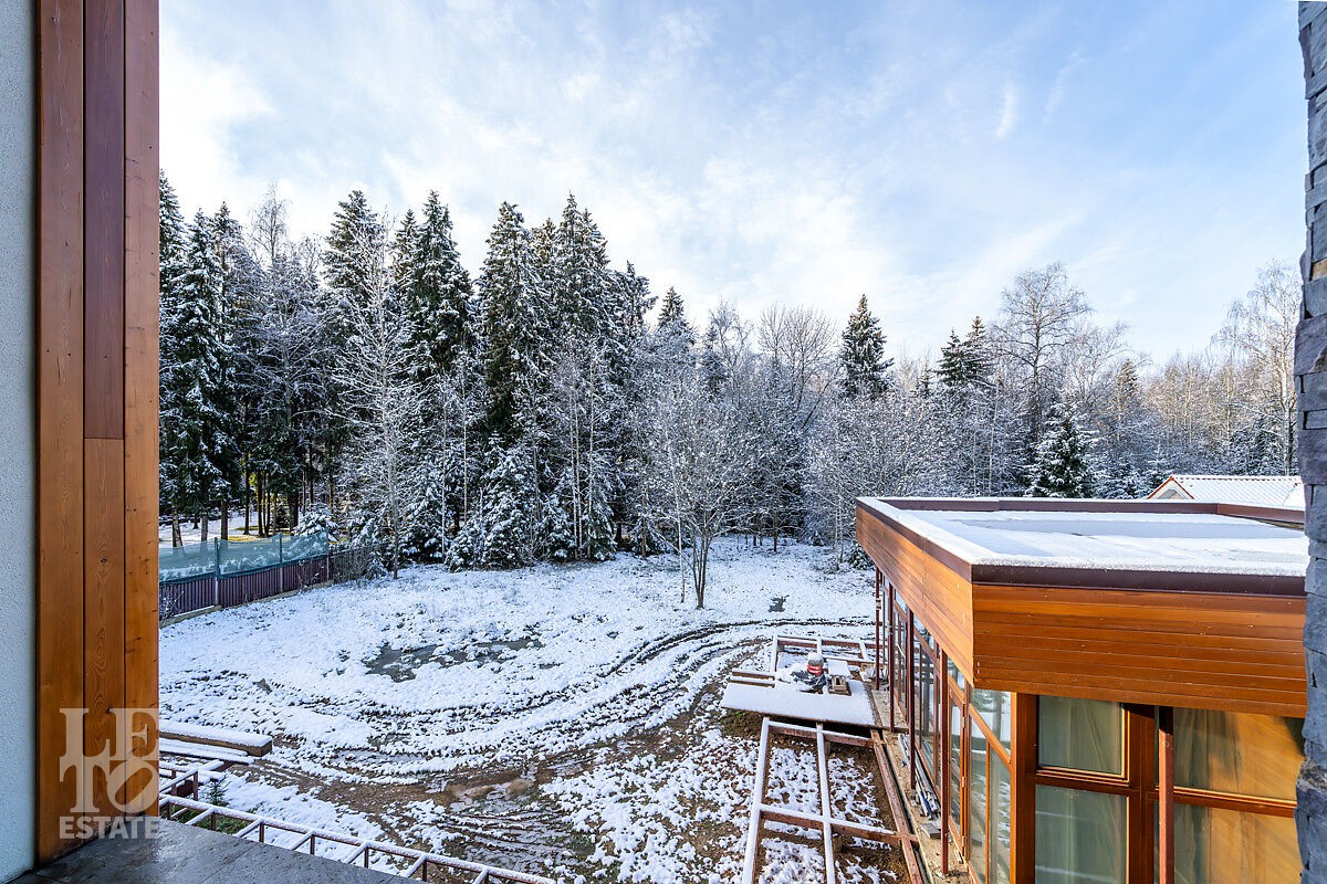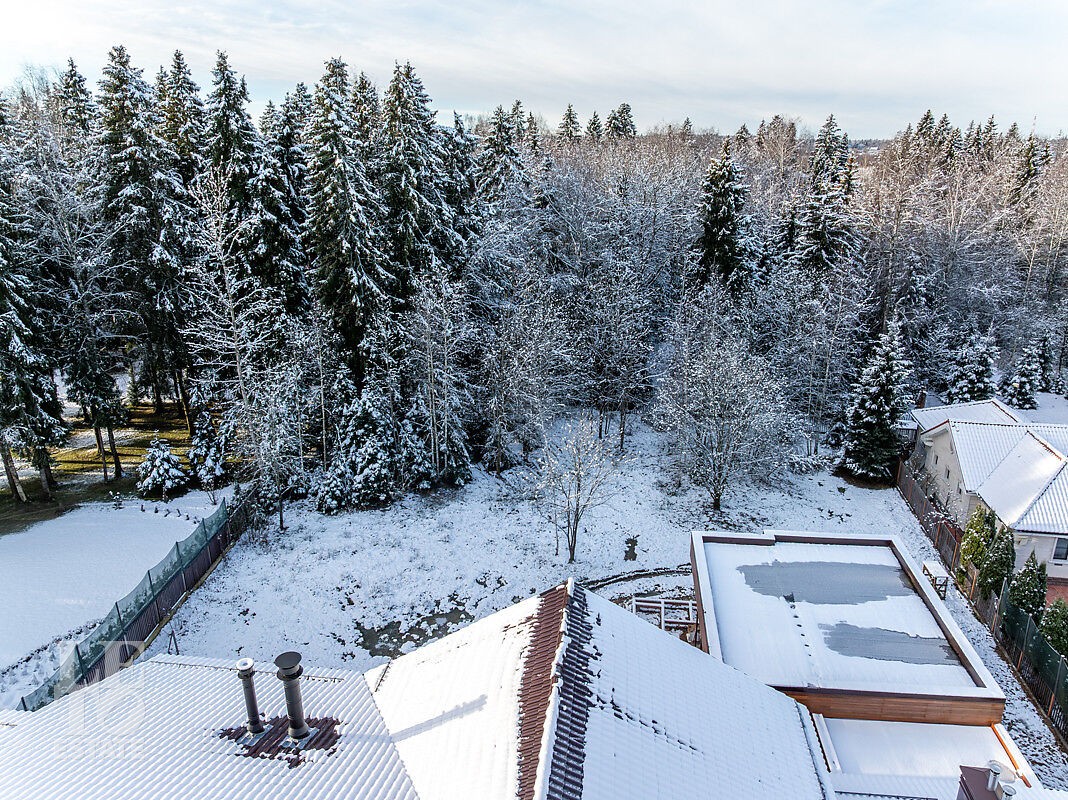 Дом расположен в одной из самых приватных частей поселка, рядом с прудом и примыкает к лесу, благодаря чему, из окон открывается шикарный вид на лесную чащу . Отлично спланированное внутреннее пространство позволяет разграничить общую семейную жизнь и приватные зоны.