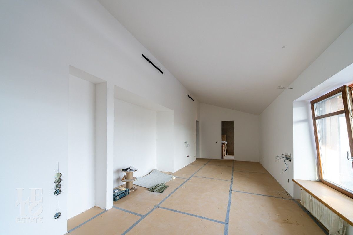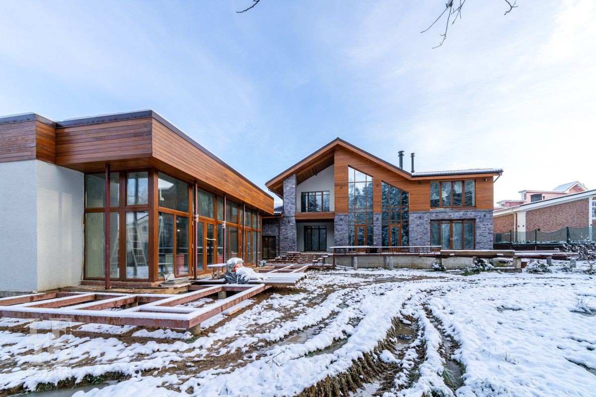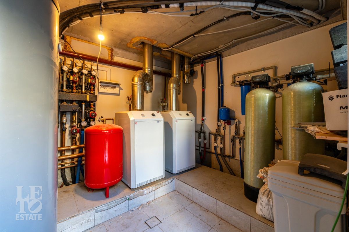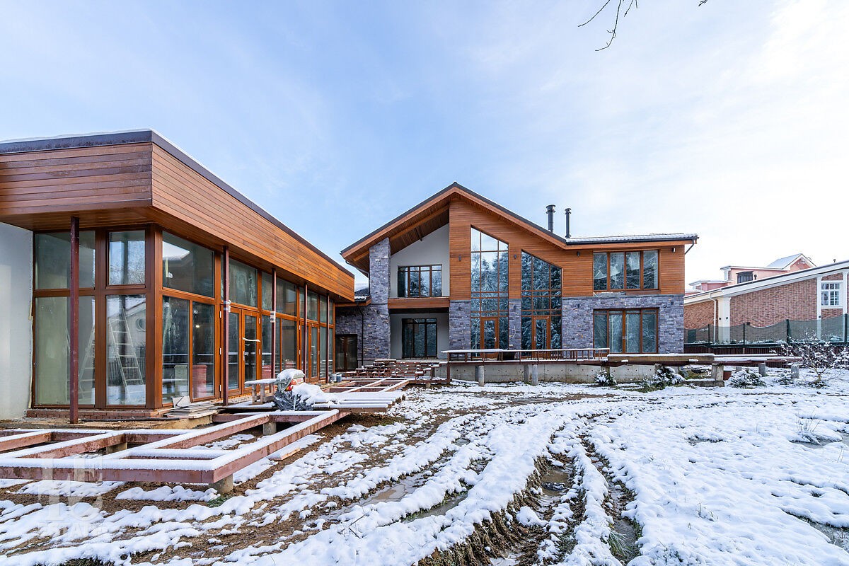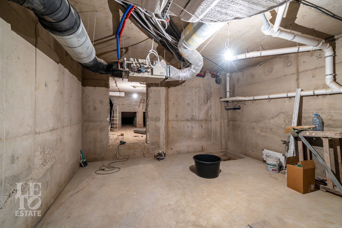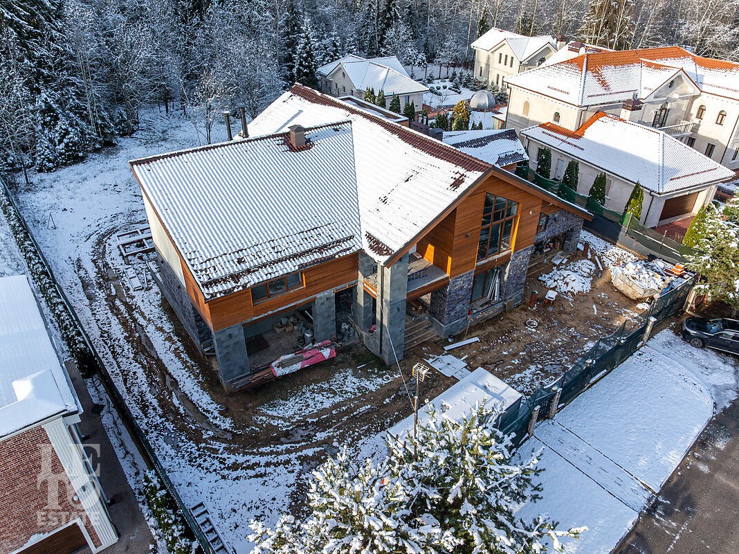 В доме выполнено большое количество внутренних строительных и отделочных работ и состояние доведено до финишной отделки: выполнены перегородки, оштукатурены и подготовлены под финишную покраску стены, выполнена вся разводка инженерных коммуникаций по дому, отлита лестница по всем трем этажам, пол- на первом этаже и в санузлах снабжен водяным обогревом, выполнена и разведена по дому приточно –вытяжная вентиляция. На цокольном этаже установлена отдельная вентиляция для организации климат-контроля в зоне бассейна. На первом этаже на полу уложен керамогранит, санузлы доведены до 90%-ной готовности, установлены встроенные части сантехнического оборудования. На втором этаже также готовы санузлы, уложен паркет и декоративный камень. По дому проведена вся электрика и установлена система "умного дома". Закуплены все внутренние двери, закуплена вся кухня с техникой и мебелью .