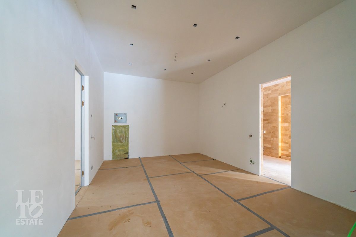 Второй этаж: мастер-блок со своим санузлом, гардеробной и выходом на террасу, три спальни, каждая со своим санузлом, игровая комната, гостевая спальня, санузел.