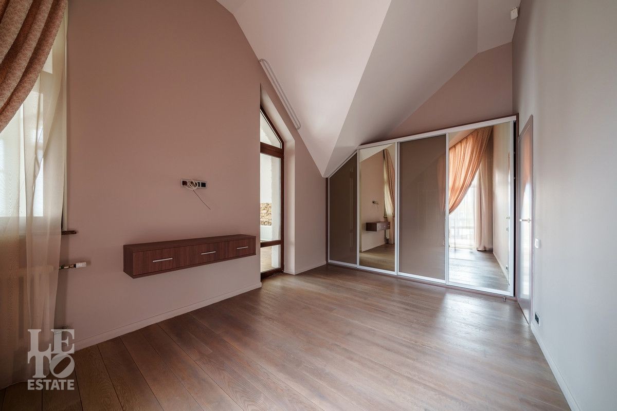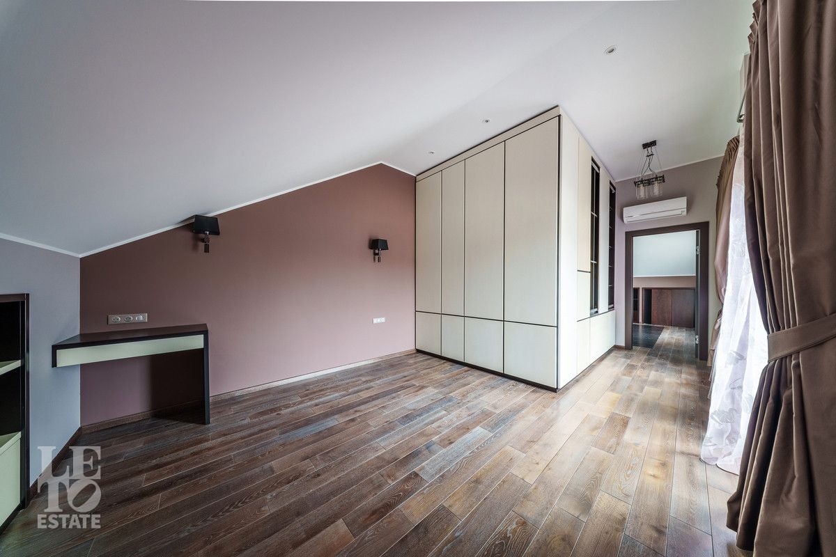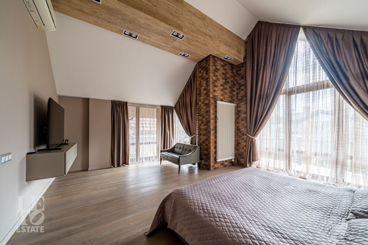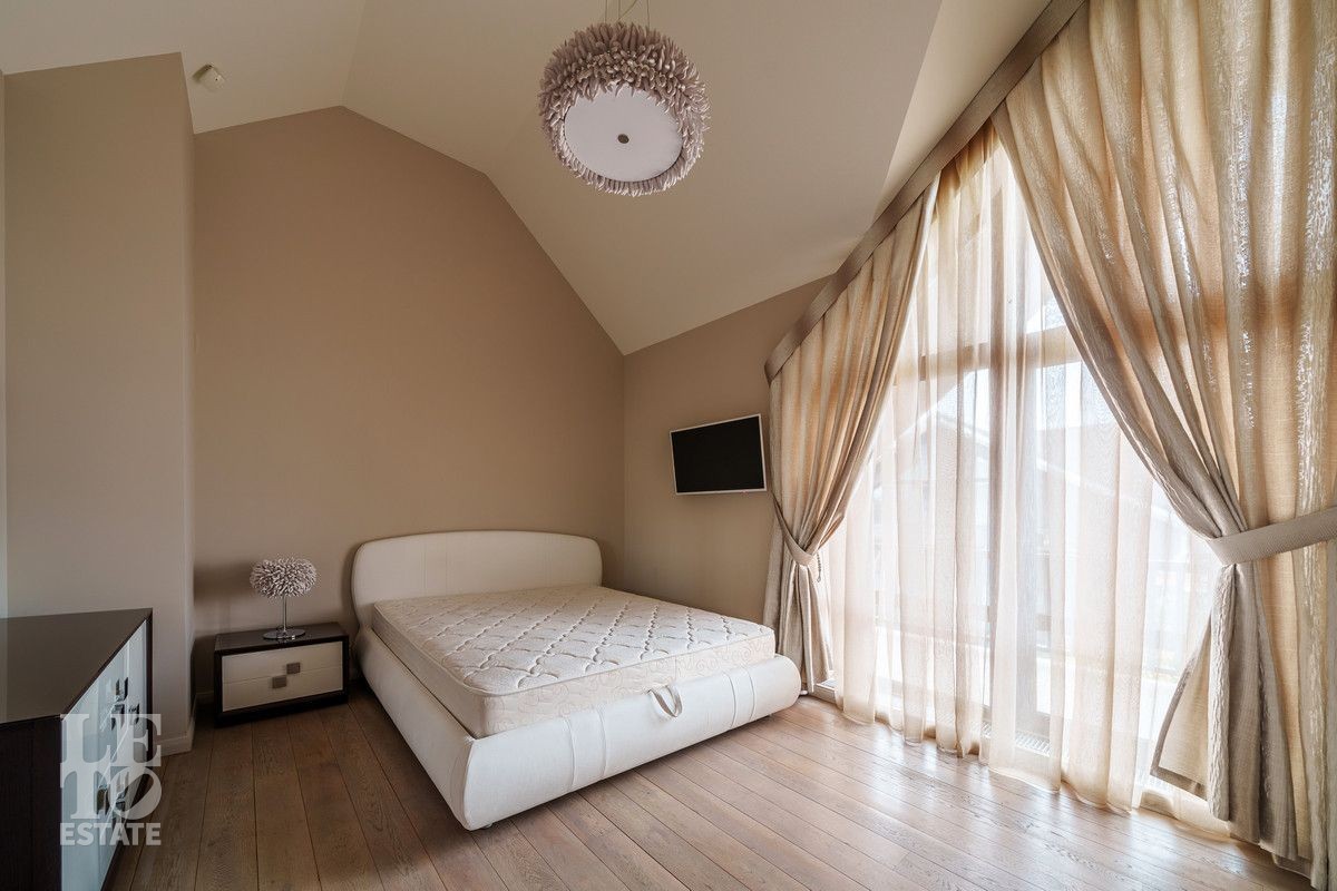 Второй этаж: Спальня с гардеробной и камином, спальня с балконом, спальня гостевая с закрытой террасой 40 кв.м, санузел с ванной, кабинет, главная спальня с гардеробной и санузлом с душевой и ванной;