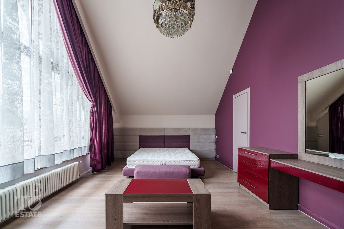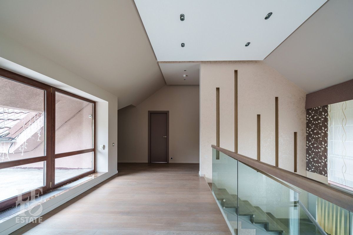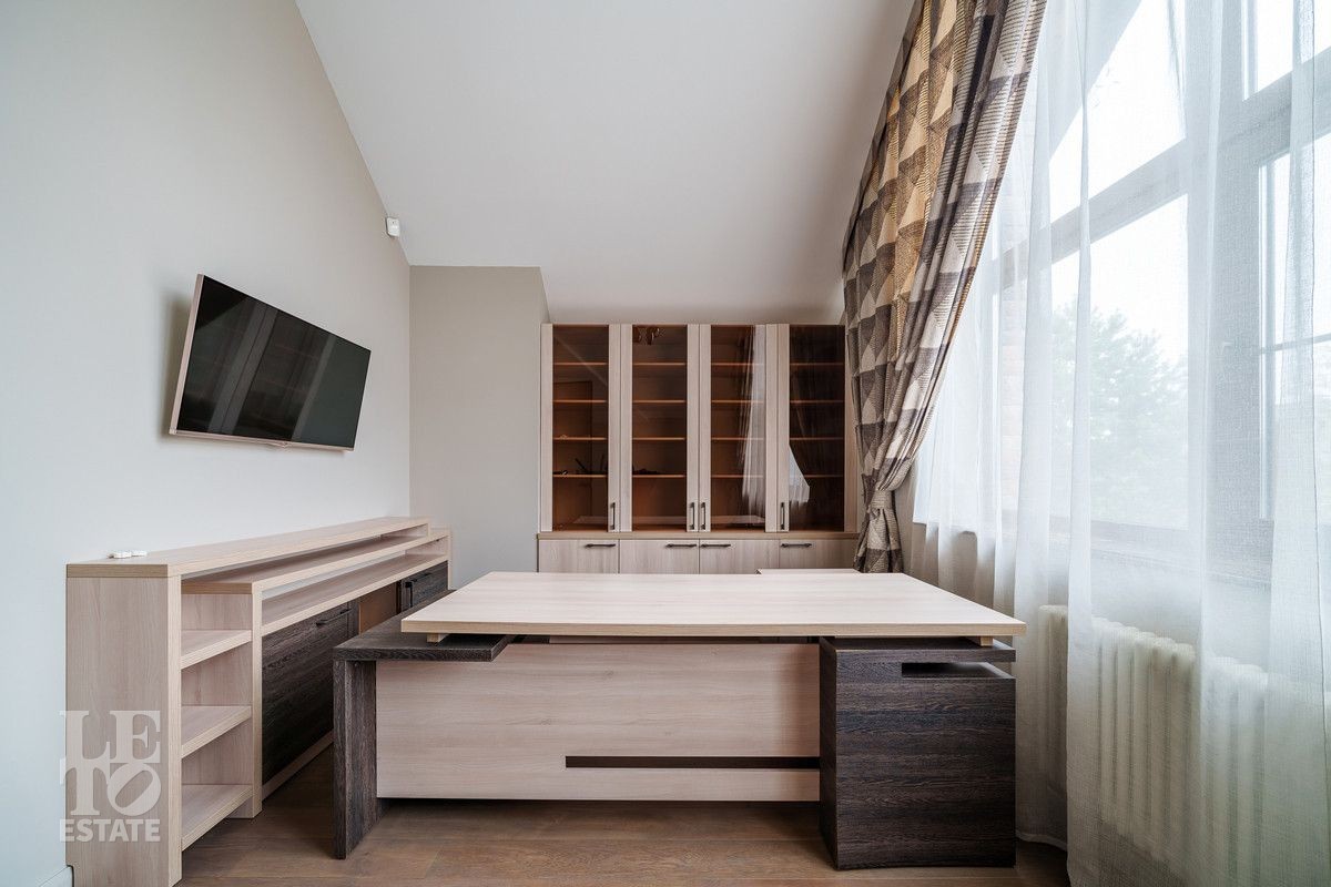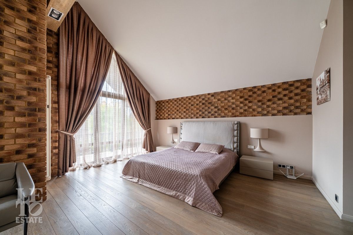 Второй этаж: Спальня с гардеробной и камином, спальня с балконом, спальня гостевая с закрытой террасой 40 кв.м, санузел с ванной, кабинет, главная спальня с гардеробной и санузлом с душевой и ванной;
