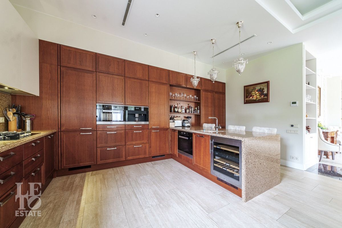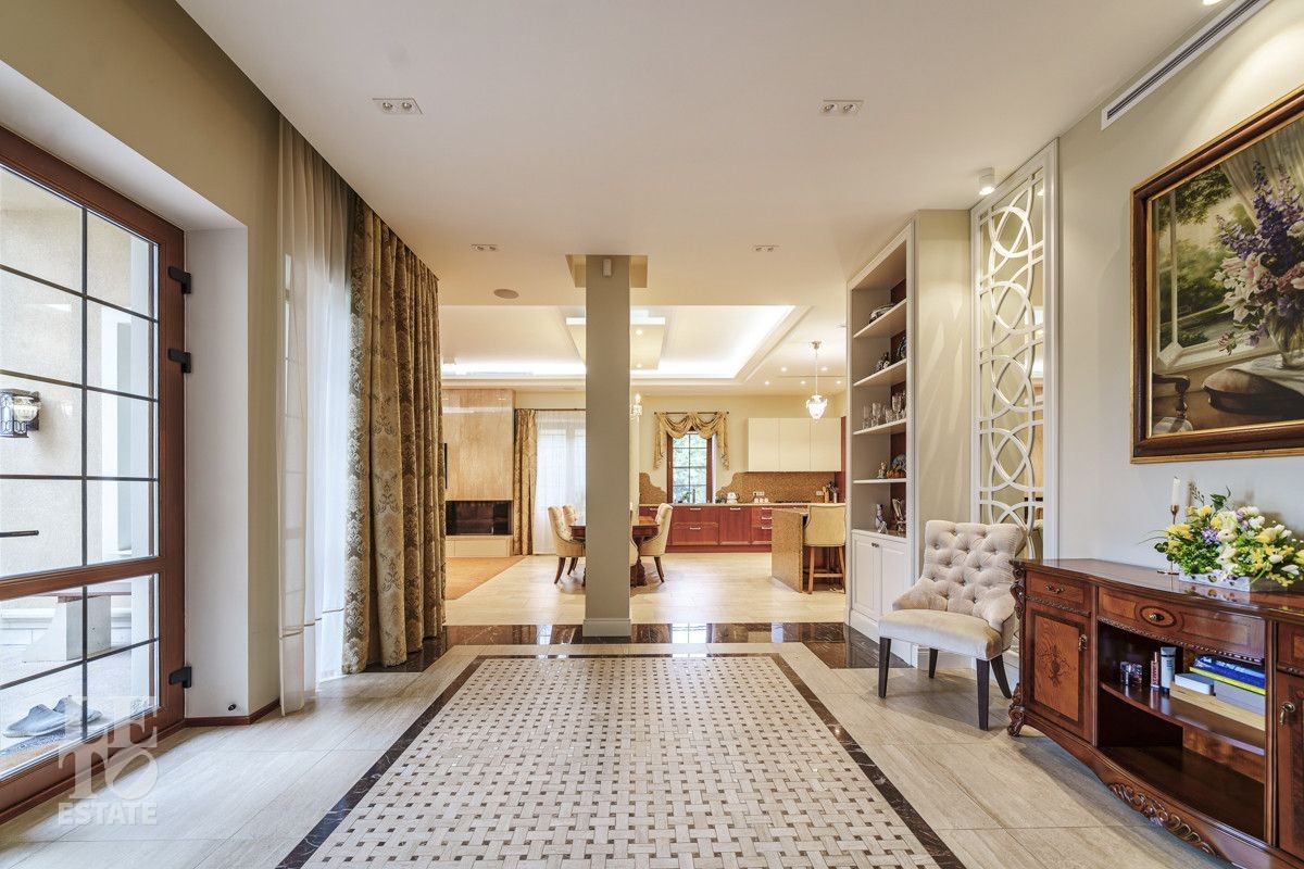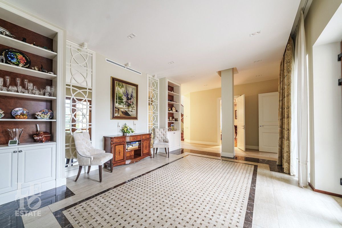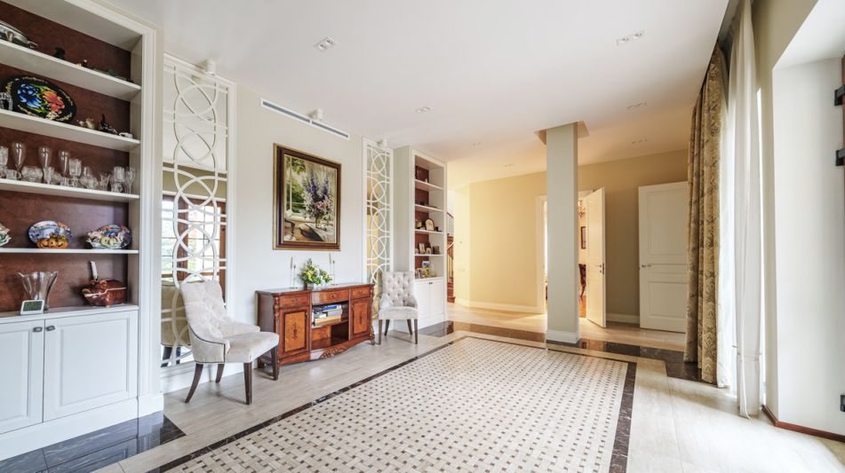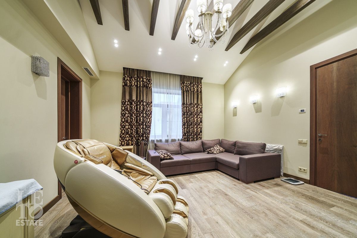 Дом оснащен современной техникой, приточно-вытяжной вентиляцией, системой кондиционирования от ведущих производителей Daikin и Mitsubishi. Высококачественная отделка с использованием натуральных материалов, таких как керамогранит «Mirage», коллекция «Тribеса», имитирующим фактуру природного камня и мраморная мозаика фабрики «Реtrа antiqua», придает дому неповторимый стиль и изысканность. А изюминкой в доме, является наличие собственного домашнего кинотеатра, который оборудован профессиональным оборудованием, акустикой, креслами реклайнерами на 8 зрителей, а также уникальной шумоизоляцией, обеспечивающей идеальные условия для просмотра кино и отдыха. Планировка дома продумана до мелочей, позволяющих с комфортом проживать большой семье.