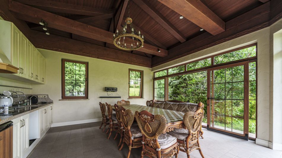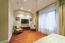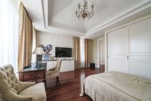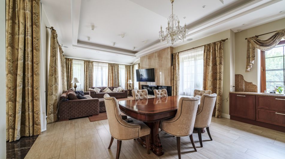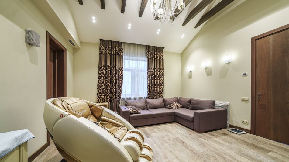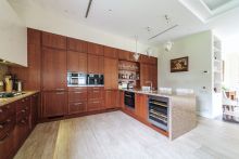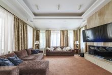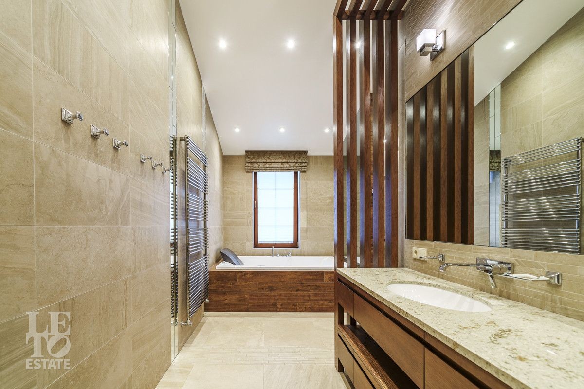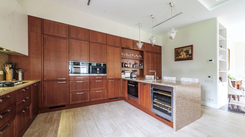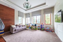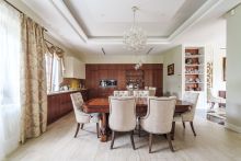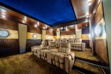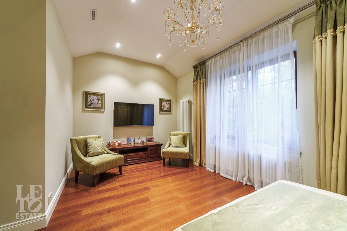 Дом оснащен современной техникой, приточно-вытяжной вентиляцией, системой кондиционирования от ведущих производителей Daikin и Mitsubishi. Высококачественная отделка с использованием натуральных материалов, таких как керамогранит «Mirage», коллекция «Тribеса», имитирующим фактуру природного камня и мраморная мозаика фабрики «Реtrа antiqua», придает дому неповторимый стиль и изысканность. А изюминкой в доме, является наличие собственного домашнего кинотеатра, который оборудован профессиональным оборудованием, акустикой, креслами реклайнерами на 8 зрителей, а также уникальной шумоизоляцией, обеспечивающей идеальные условия для просмотра кино и отдыха. Планировка дома продумана до мелочей, позволяющих с комфортом проживать большой семье.