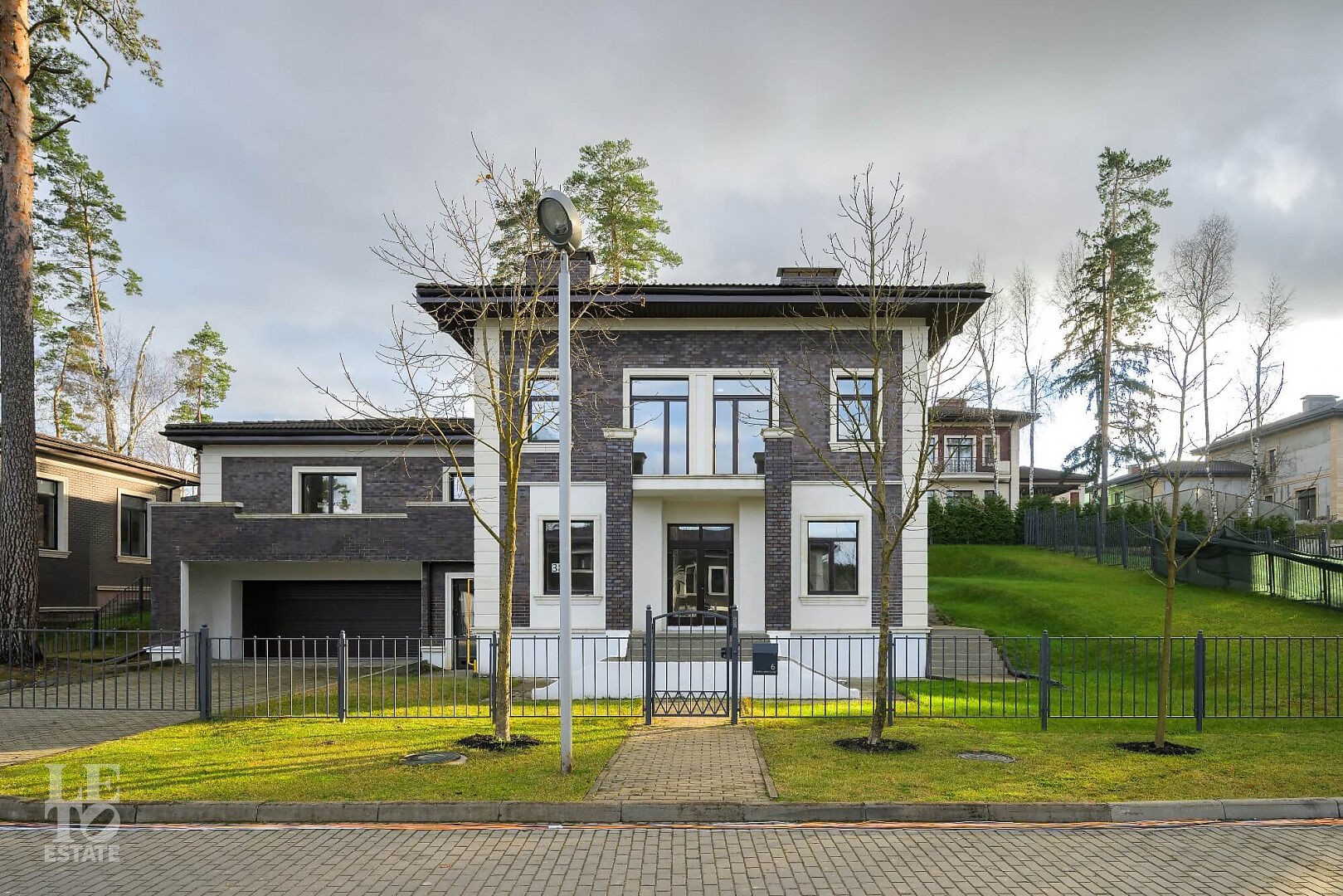 В доме: 5 спален с индивидуальными ванными комнатами и гардеробными, просторная кухня-гостиная с выходом на открытую веранду, кабинет/гостевая спальня с ванной комнатой, парадный холл с двумя гардеробными, 2 кладовые, котельная, теплый гараж на 2 м/м.