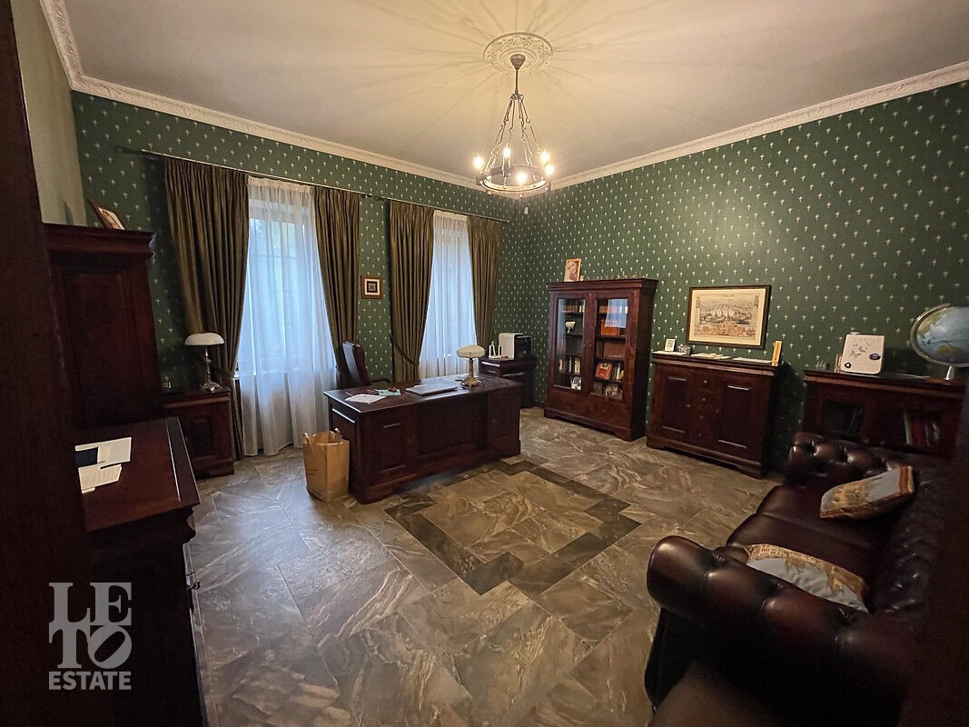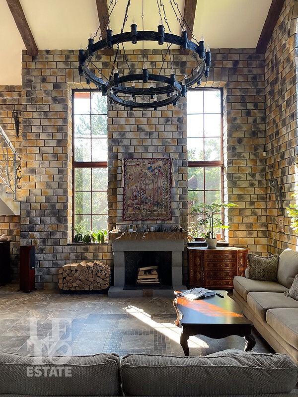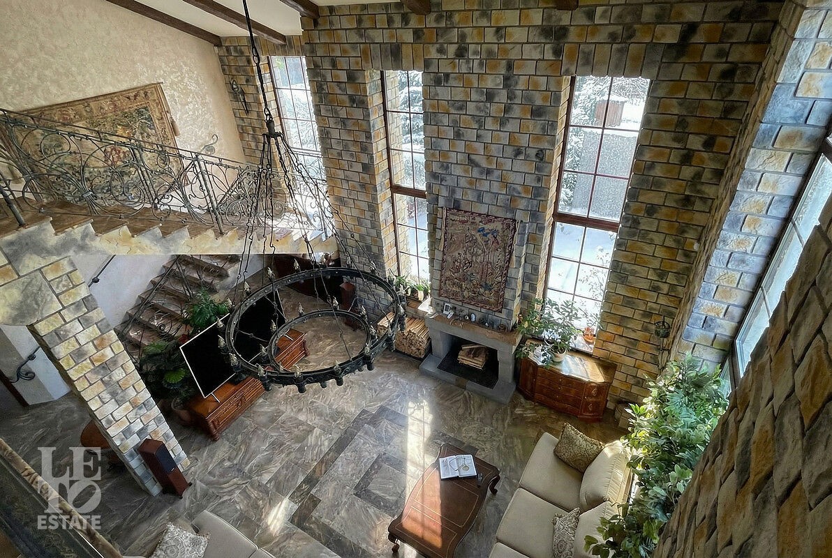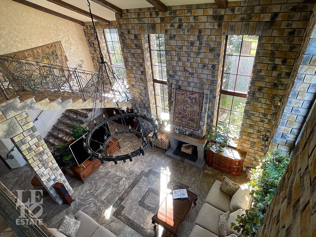 Монолитный трёхэтажный дом построен в 2007 году. Архитектура и оформление интерьера выполнено в романтичном замковом стиле. Внутреннее пространство — это воплощение роскоши с использованием мрамора, гранита, дуба и итальянского керамогранита, дополненное элементами ручной ковки, авторскими предметами интерьера и предметами искусства. Объект полностью укомплектован мебелью и техникой, которые остаются новому владельцу. Технологическая оснащенность дома включает в себя: теплые полы во всех помещениях, приточно-вытяжную систему вентиляции, систему водоподготовки, камин с принудительным выводом дыма и охранную систему.