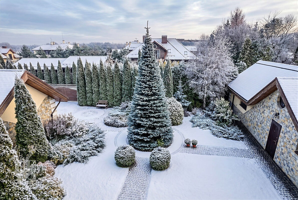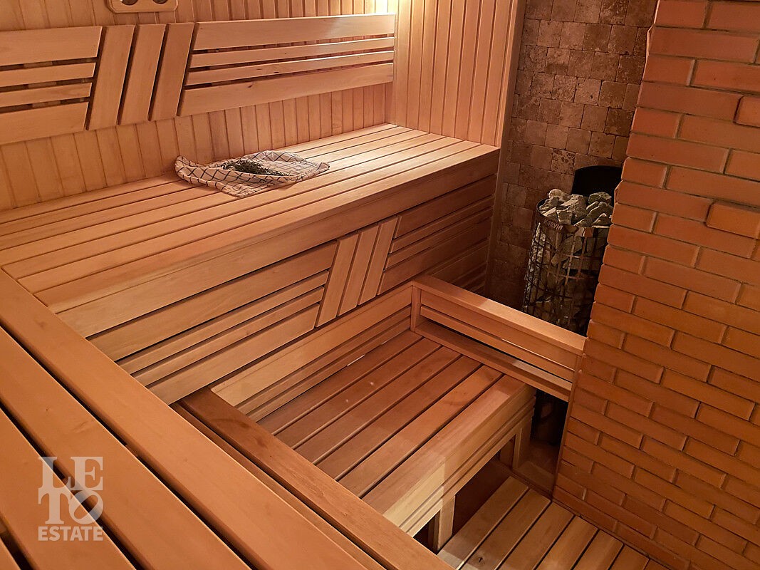 На участке площадью 16 соток реализован авторский ландшафтный дизайн. На территории обустроены несколько зон отдыха с камином и барбекю. Дополняет участок гостевой дом с банным комплексом, два гаража с комнатой для персонала. По всему участку обустроена надежная дренажная система, есть отдельная котельная, что делает это место готовым решением для комфортной загородной жизни.