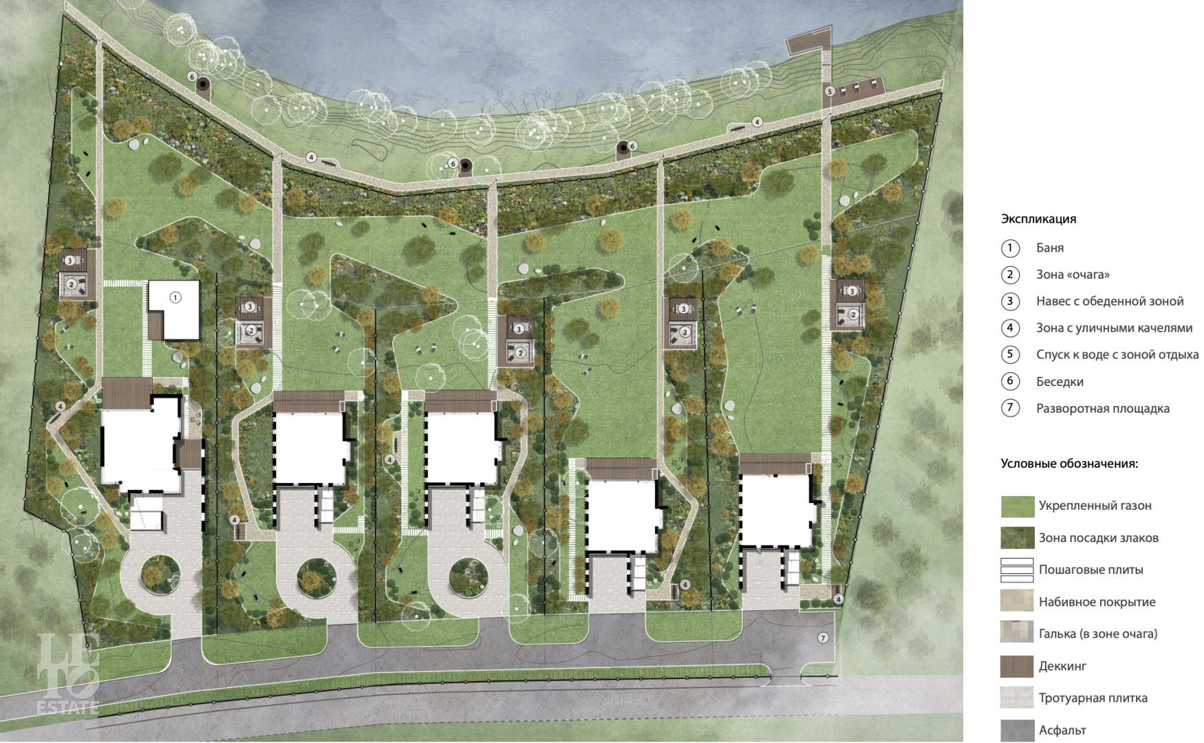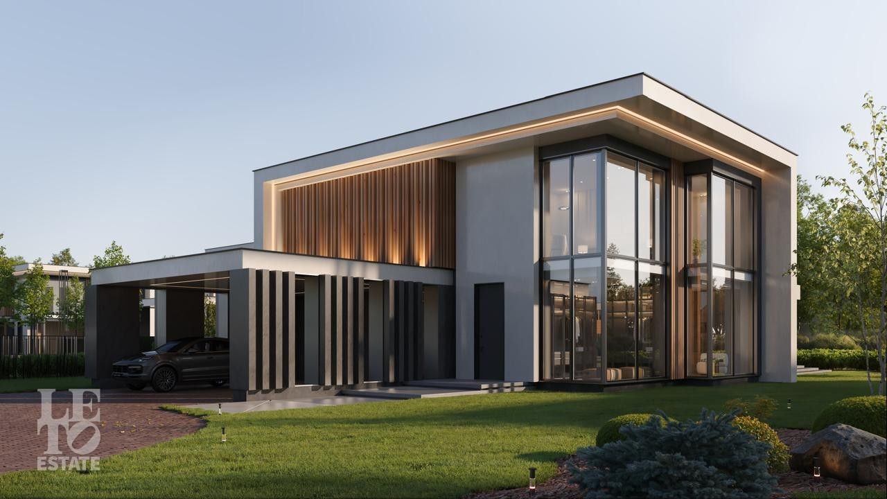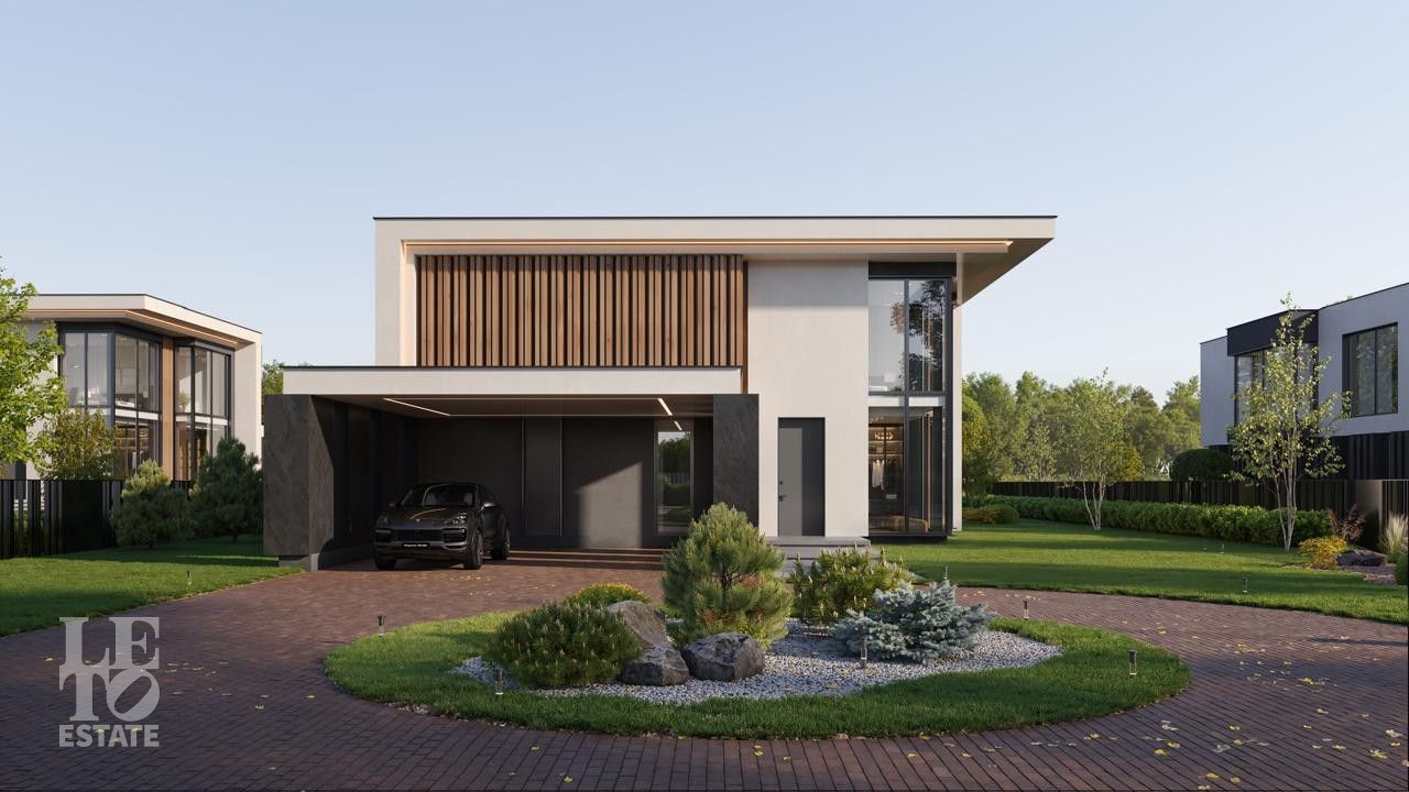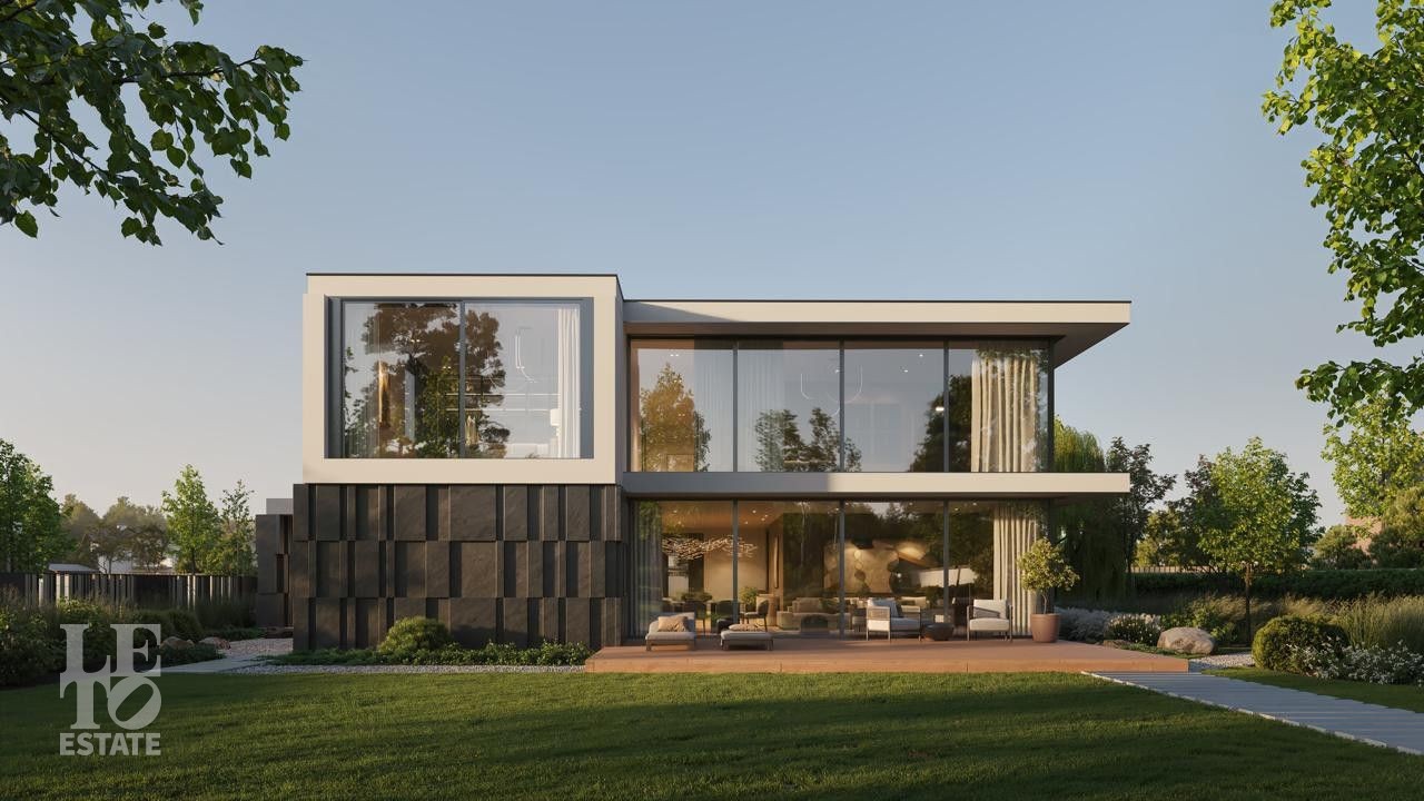 Здесь вас ждут четыре просторных дома площадью 380 кв.м. и одна флагманская вилла. Архитектура — современная европейская классика: панорамные окна, стирающие границу между просторным интерьером и природой, натуральные материалы и уютные террасы с видом на большой участок и реку.