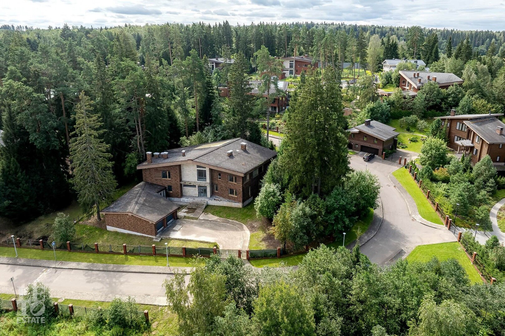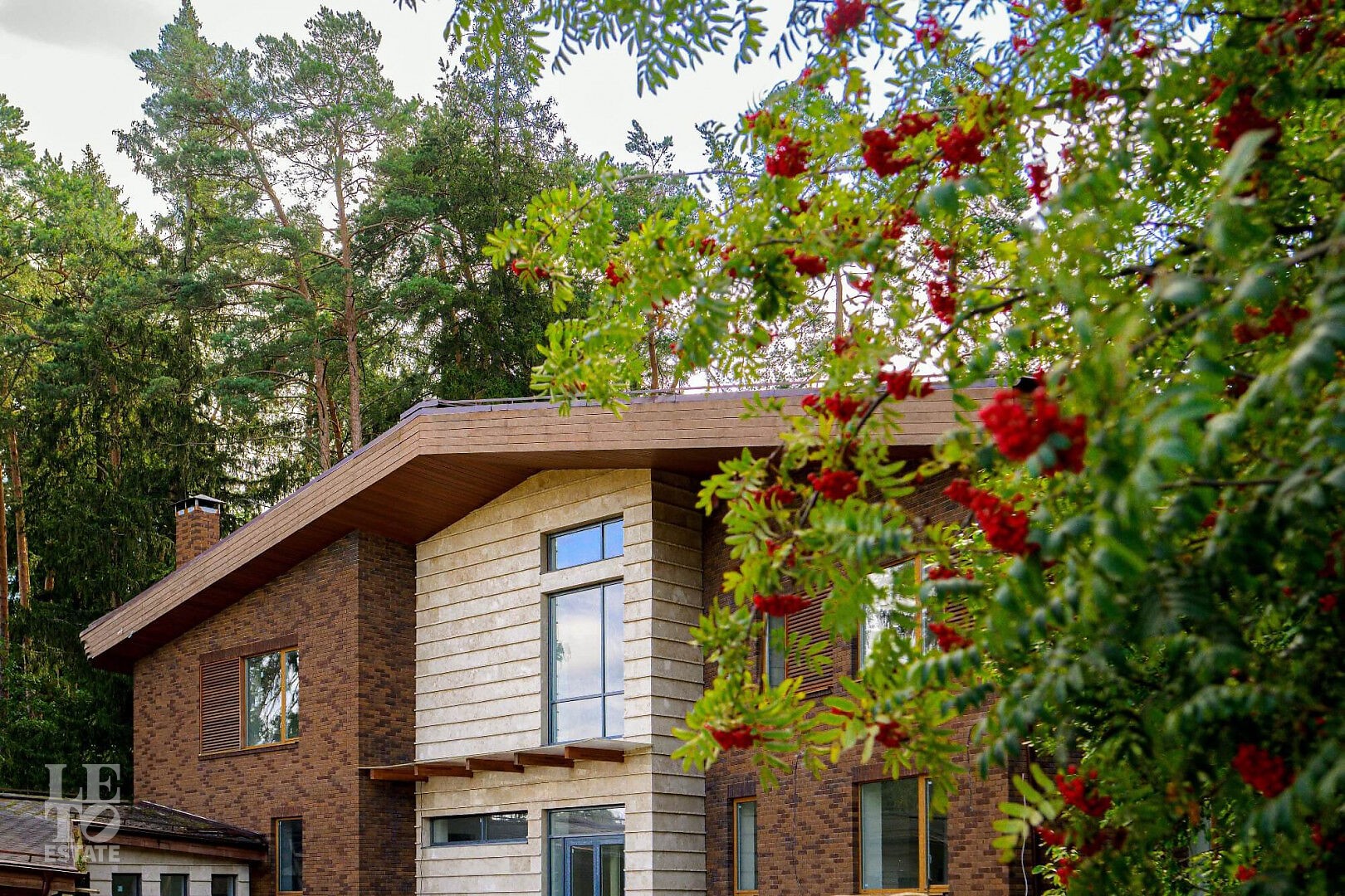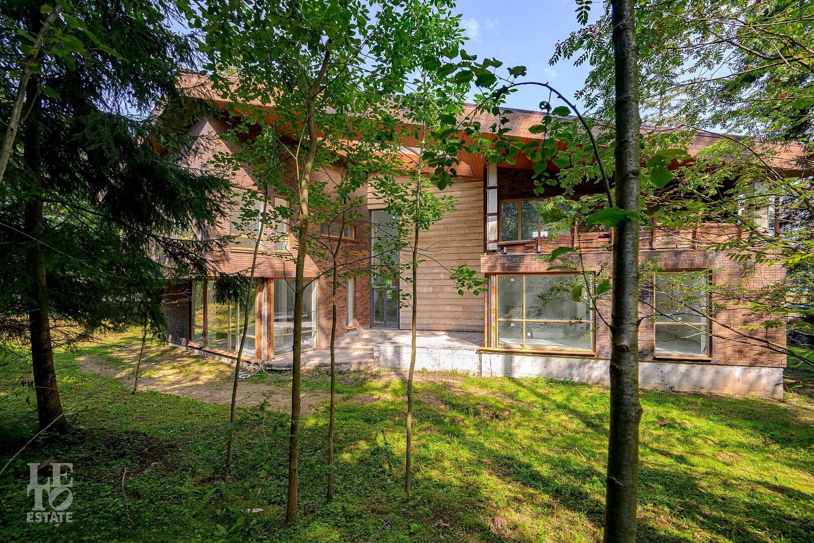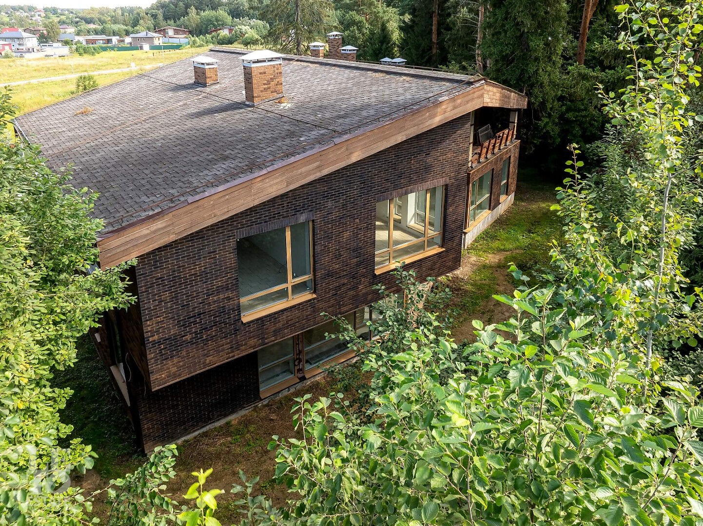 Особенности дома: интересная планировка, высокие потолки (3,3 м - на 1 этаже, 5,5 м - на втором), лесной участок - утопает в зелени, живописный вид из панорамных окон на вековые сосны, рябины, дубы.