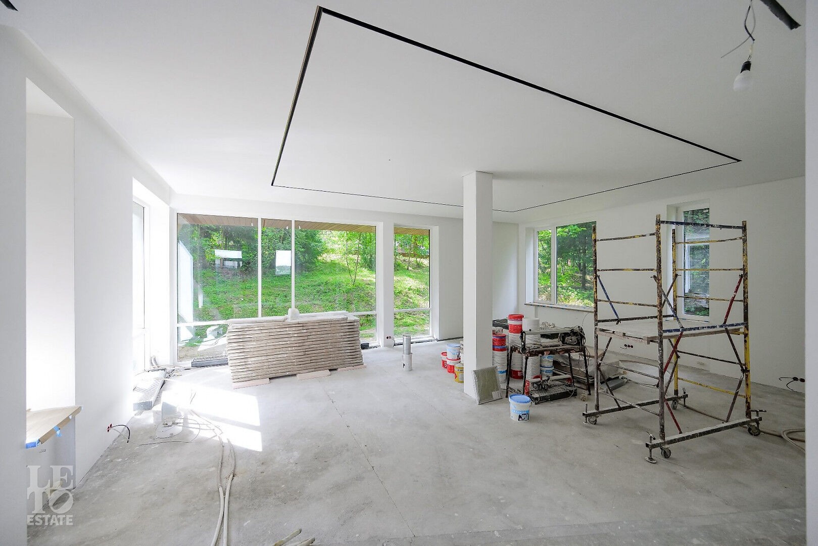 Дом “под чистовую отделку”. В дверные проемы установлены короба, современные двери “под покраску” на все проемы закуплены и находятся в доме. Выполнена инженерная разводка: водоснабжение, канализация, электричество, газ, теплые полы. В каждом с/у установлена инсталляция. В гараже уложена плитка, готовы водостоки. В котельной функционирует оборудование, заключен прямой договор на газ.