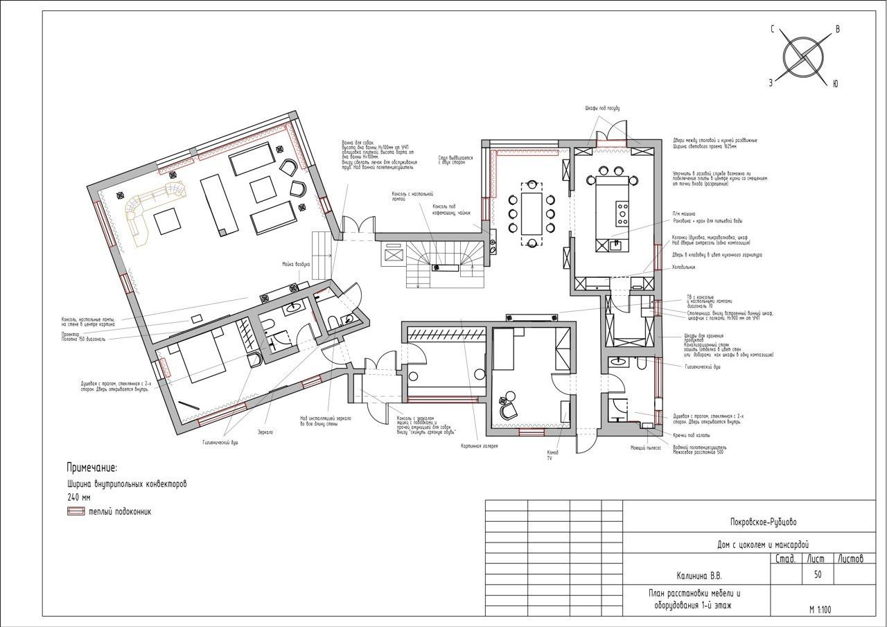 Первый этаж: холл, кухня, столовая, гостиная с камином, санузел, спальня со своей гардеробной и ванной комнатами, кабинет, гараж на два автомобиля;
