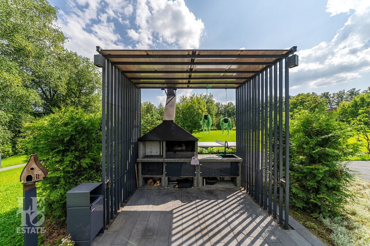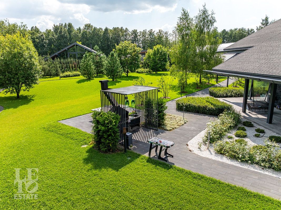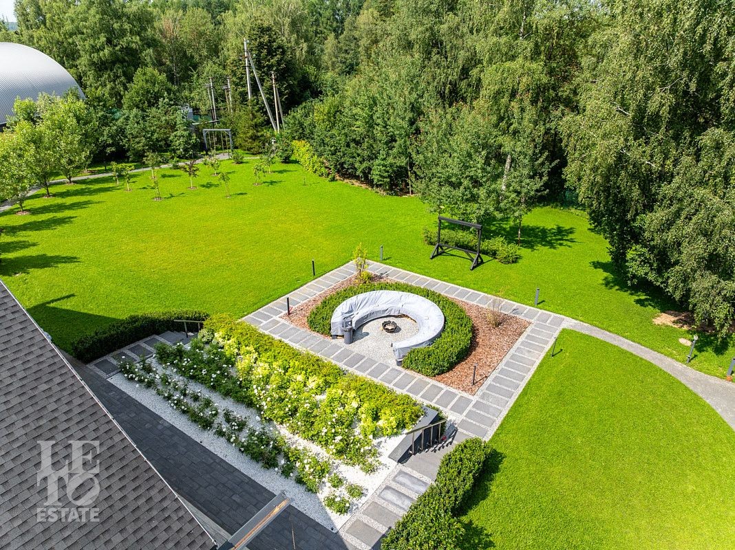 Участок, общей площадью 63 сотки, полностью благоустроен, на берегу реки организована лаундж-зона с кострищем, на безопасном расстоянии от дома расположена BBQ-зона.