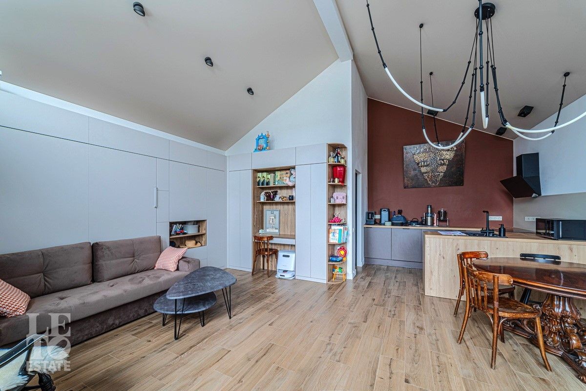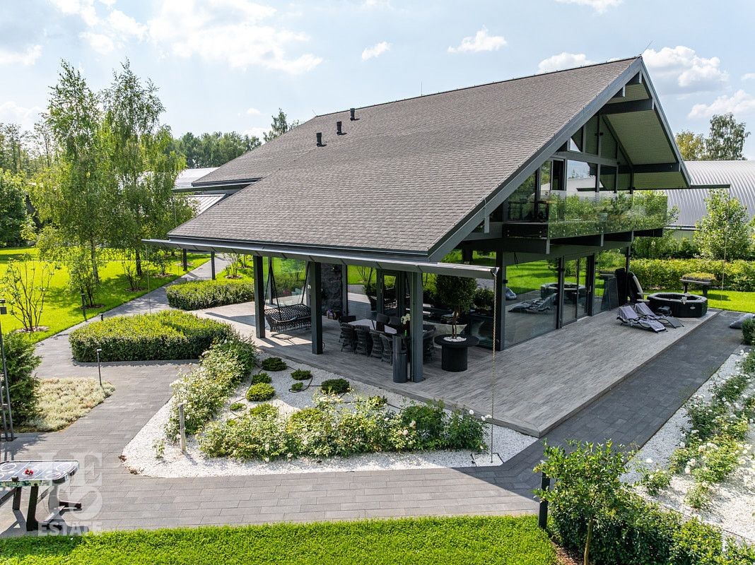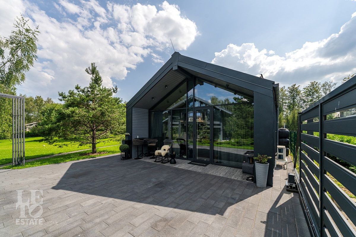 Дом двухэтажный. Полезная площадь дома составляет 240 кв.м. В доме предусмотрены раздвижные окна, обеспечивающие прямой доступ к террасе 114 кв.м. В гостиной установлен подвесной дровяной камин. Дом продается с отделкой «под ключ». В настоящий момент ведутся внутренние работы. Особенностью дома является наличие второго света и панорамное остекление, что подарит будущему хозяину ощущение простора, дополнительное естественное освещение всего дома.
