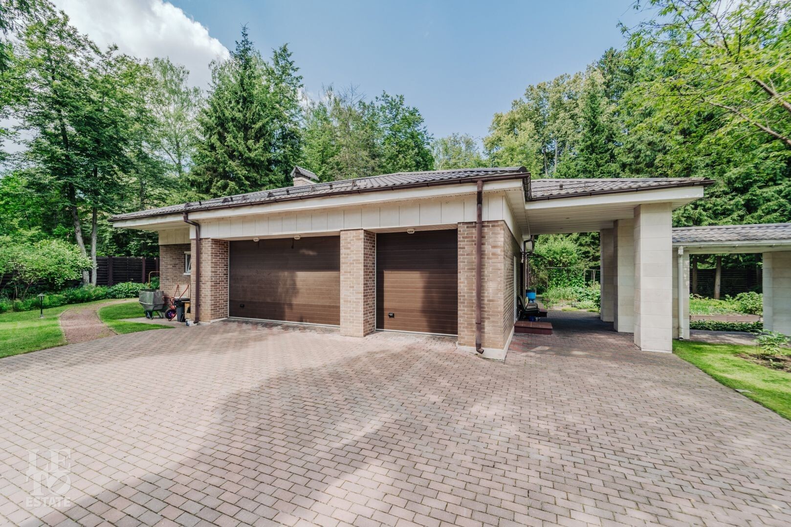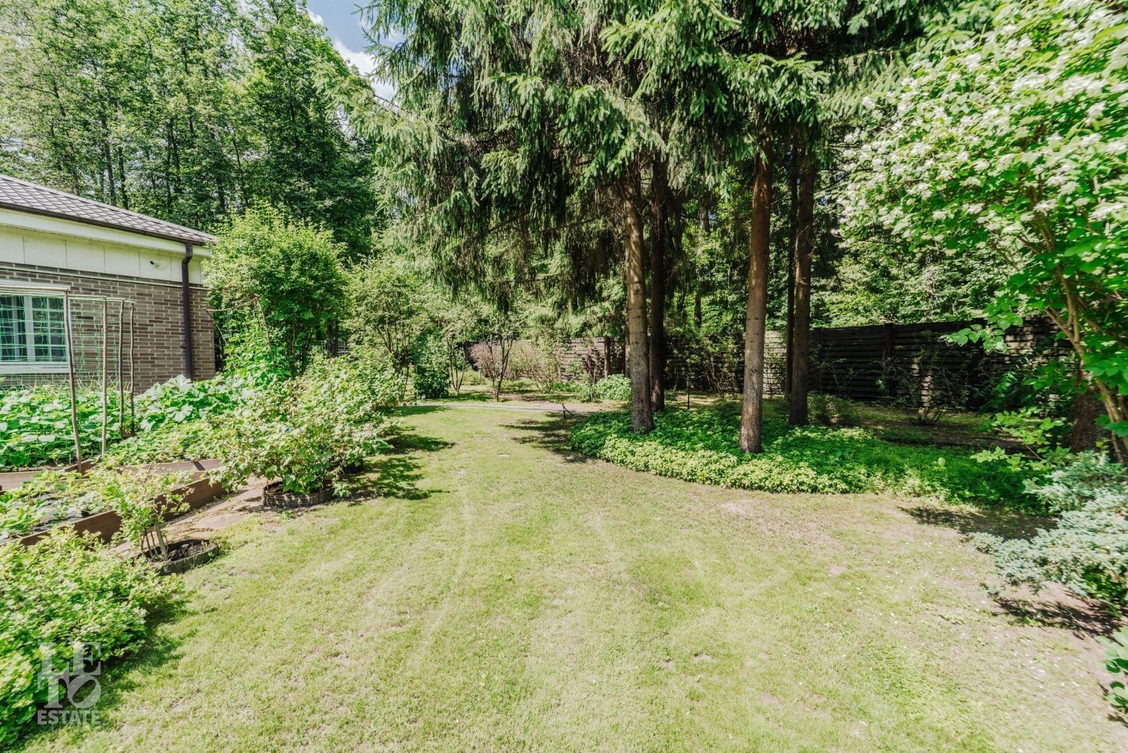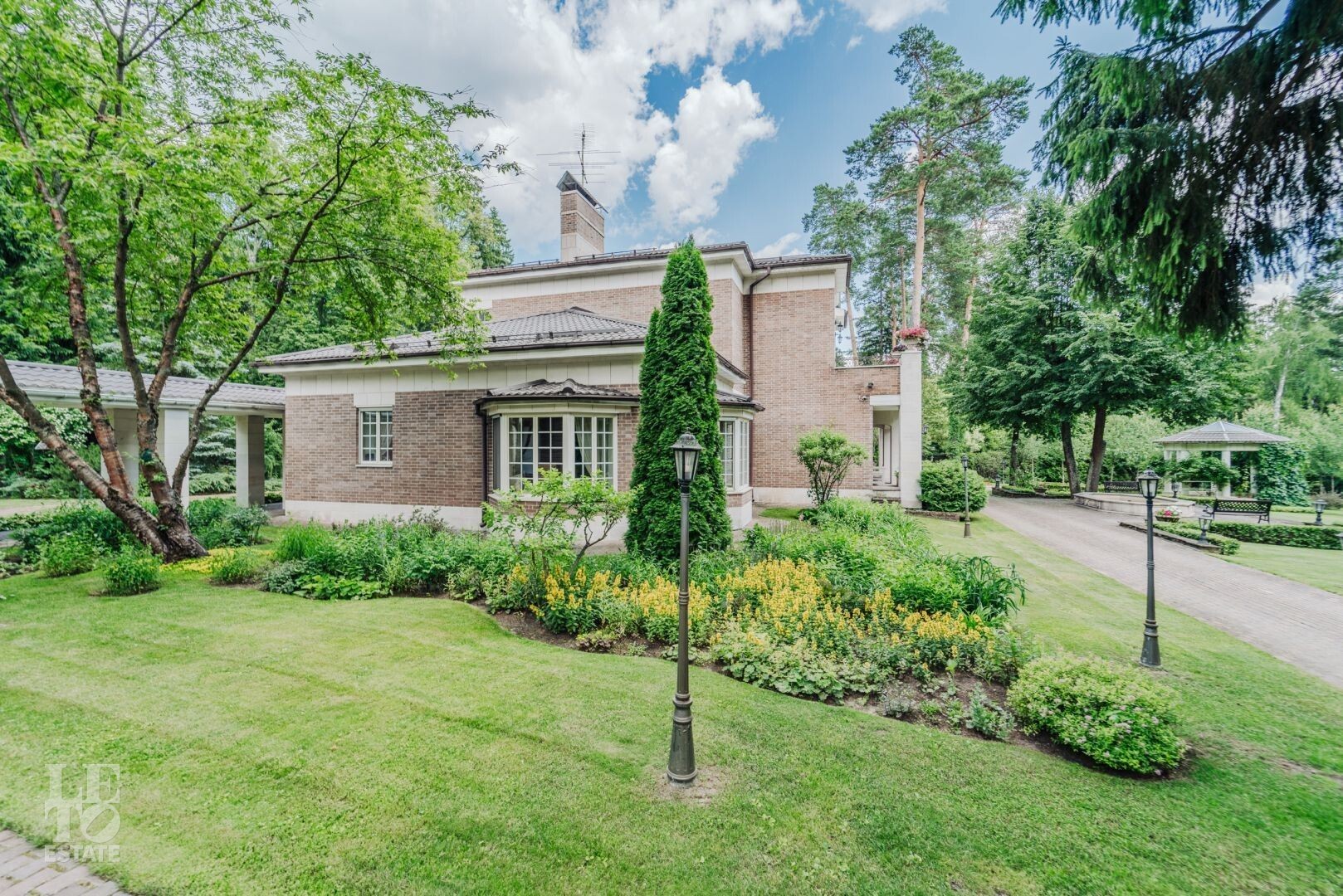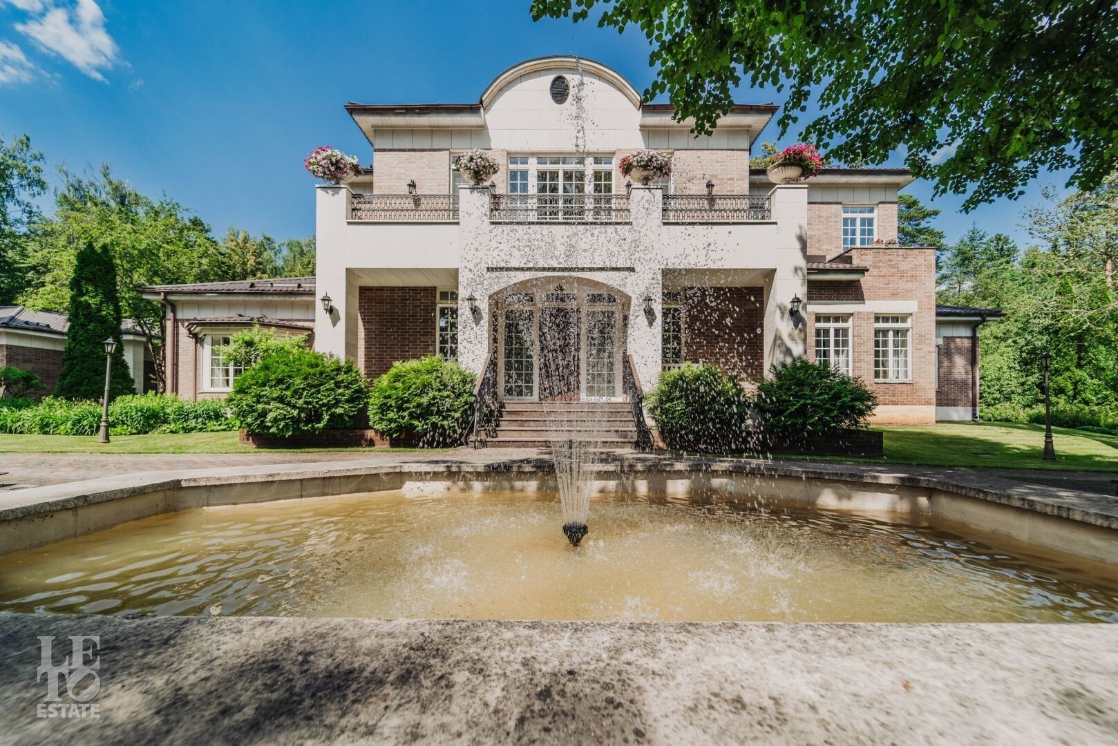 На участке располагается гараж с квартирой для персонала, пергола, в которой летом устанавливают бассейн, а также элегантности ландшафту придаёт изящный фонтан. Участок с эксклюзивным ландшафтом, корабельными соснами, вековыми елями, канадскими клёнами и разнообразными хвойными деревьями и кустарниками. Весь участок в собственности.