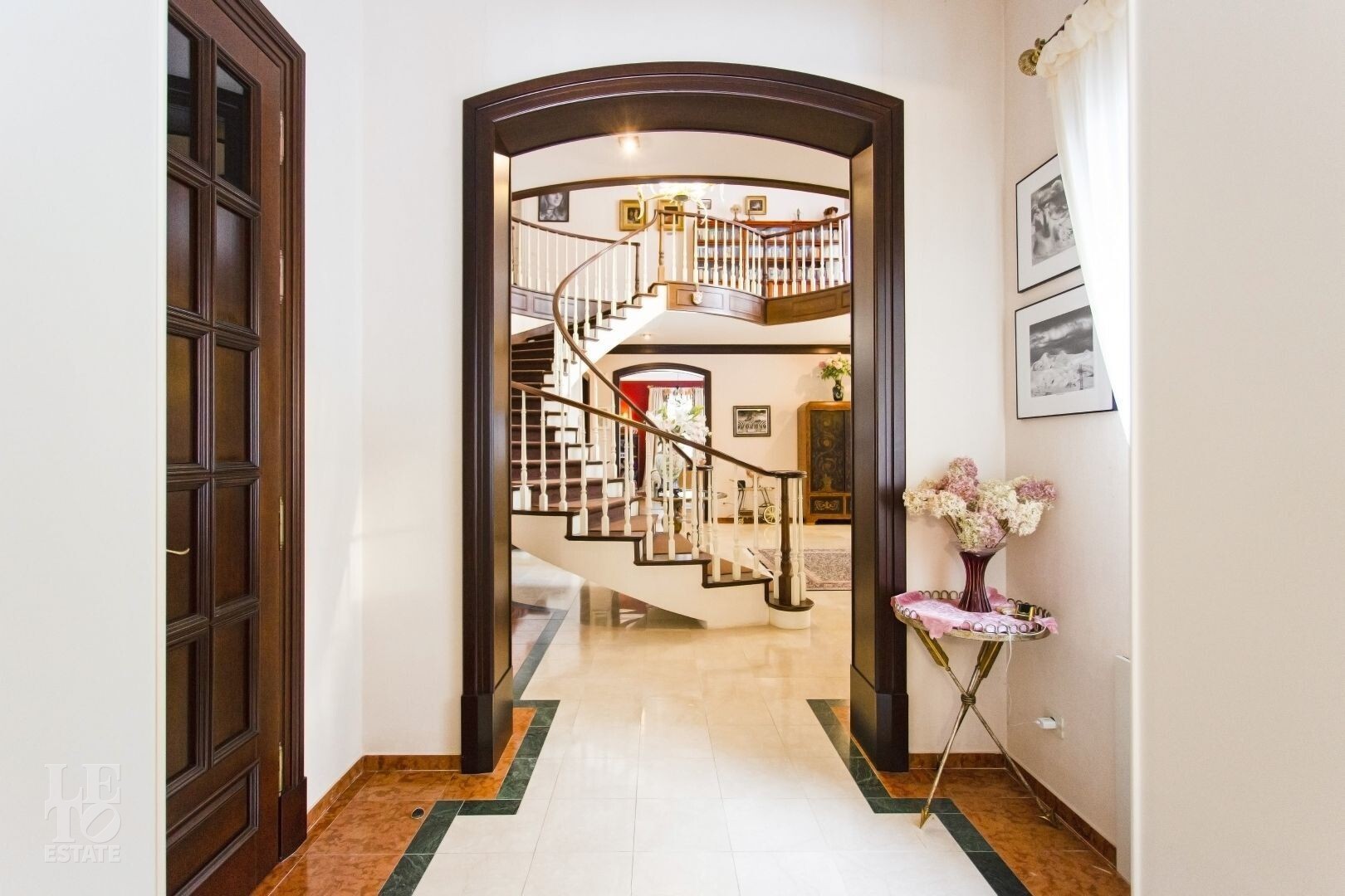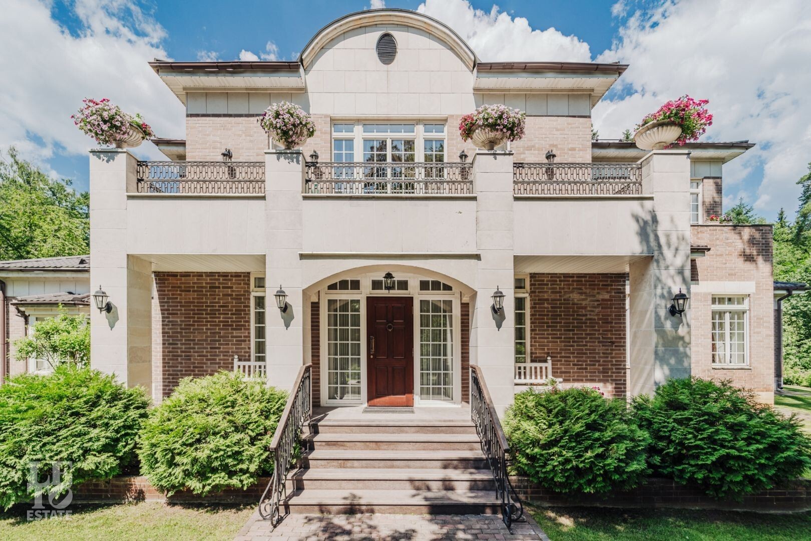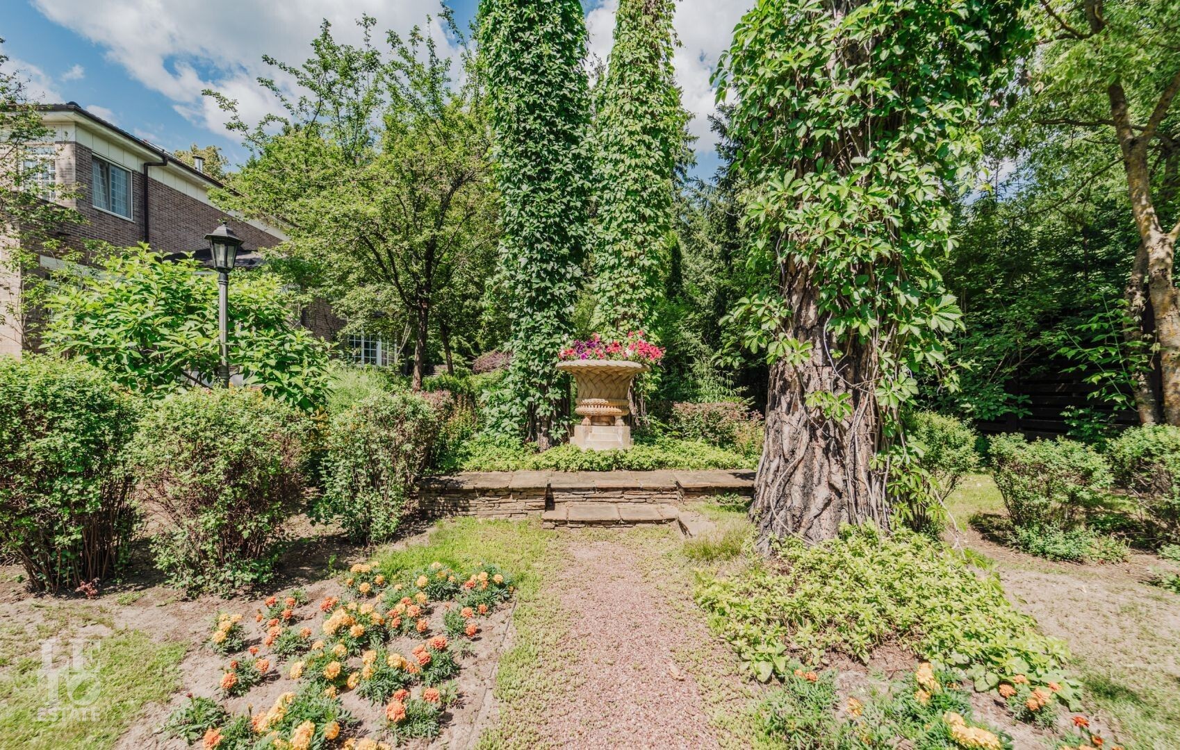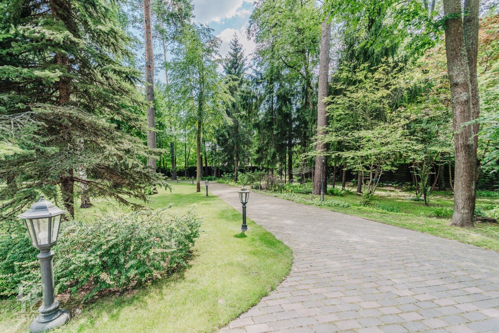 На участке располагается гараж с квартирой для персонала, пергола, в которой летом устанавливают бассейн, а также элегантности ландшафту придаёт изящный фонтан. Участок с эксклюзивным ландшафтом, корабельными соснами, вековыми елями, канадскими клёнами и разнообразными хвойными деревьями и кустарниками. Весь участок в собственности.