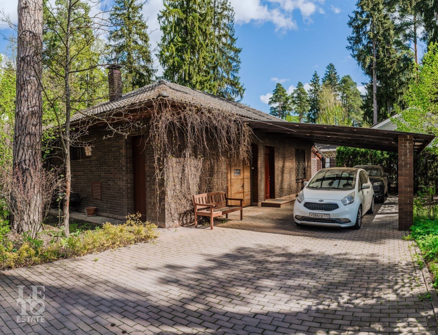 На участке с вековыми корабельными соснами и эксклюзивным ландшафтным дизайном расположен основной дом с гаражом, гостевой дом и отдельно стоящий СПА- комплекс.