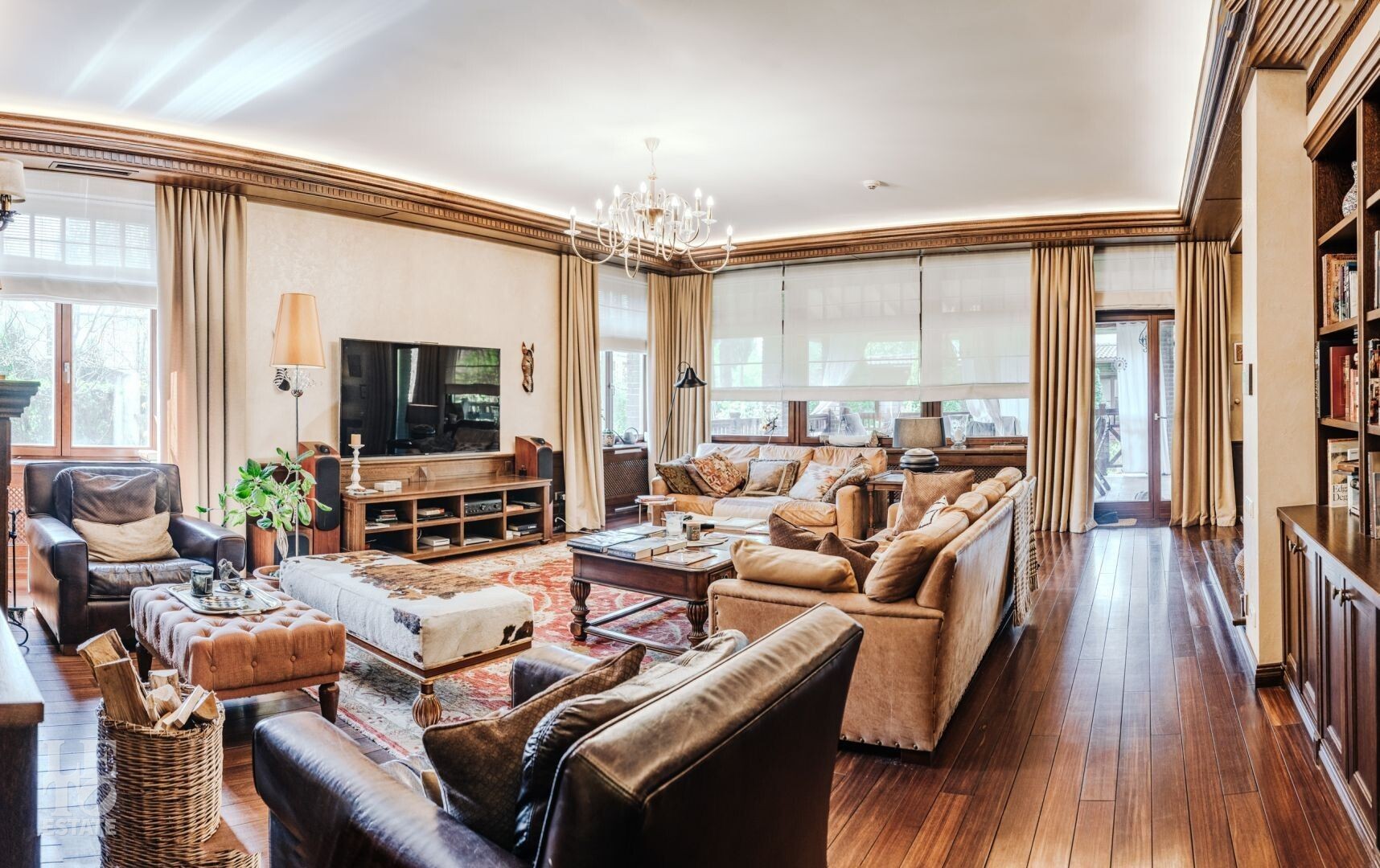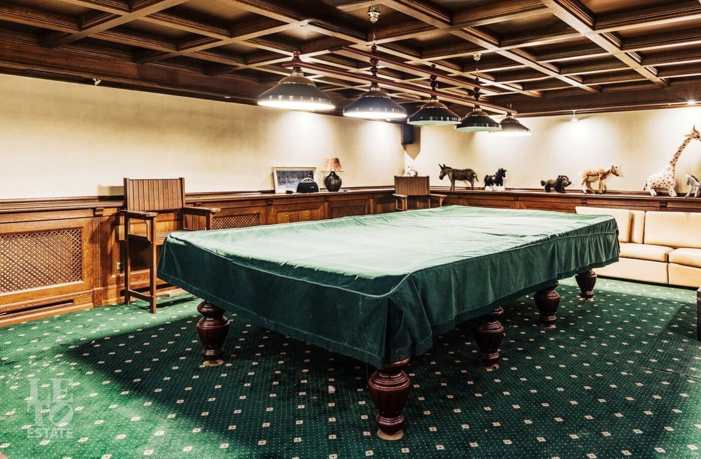 Цокольный этаж: сезонная гардеробная, котельная, бильярдная, санузел, спортзал, сауна;