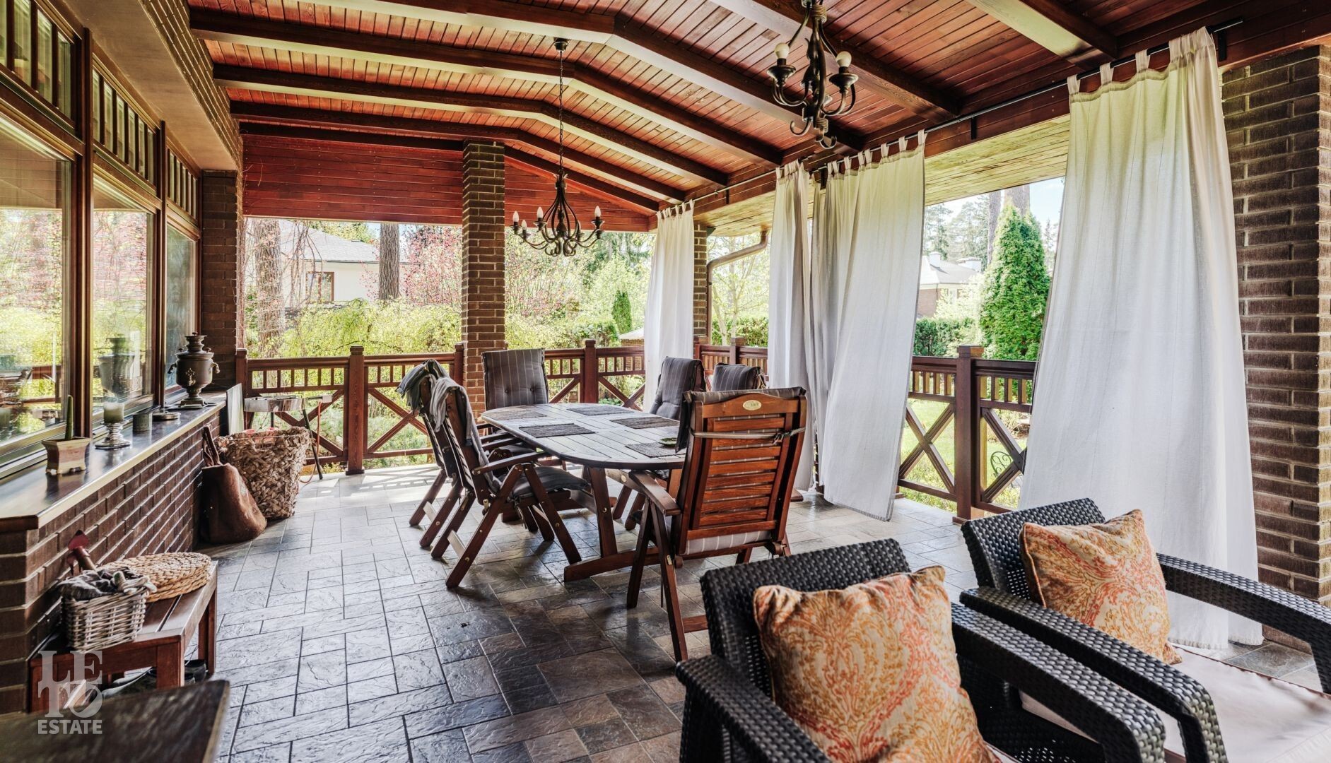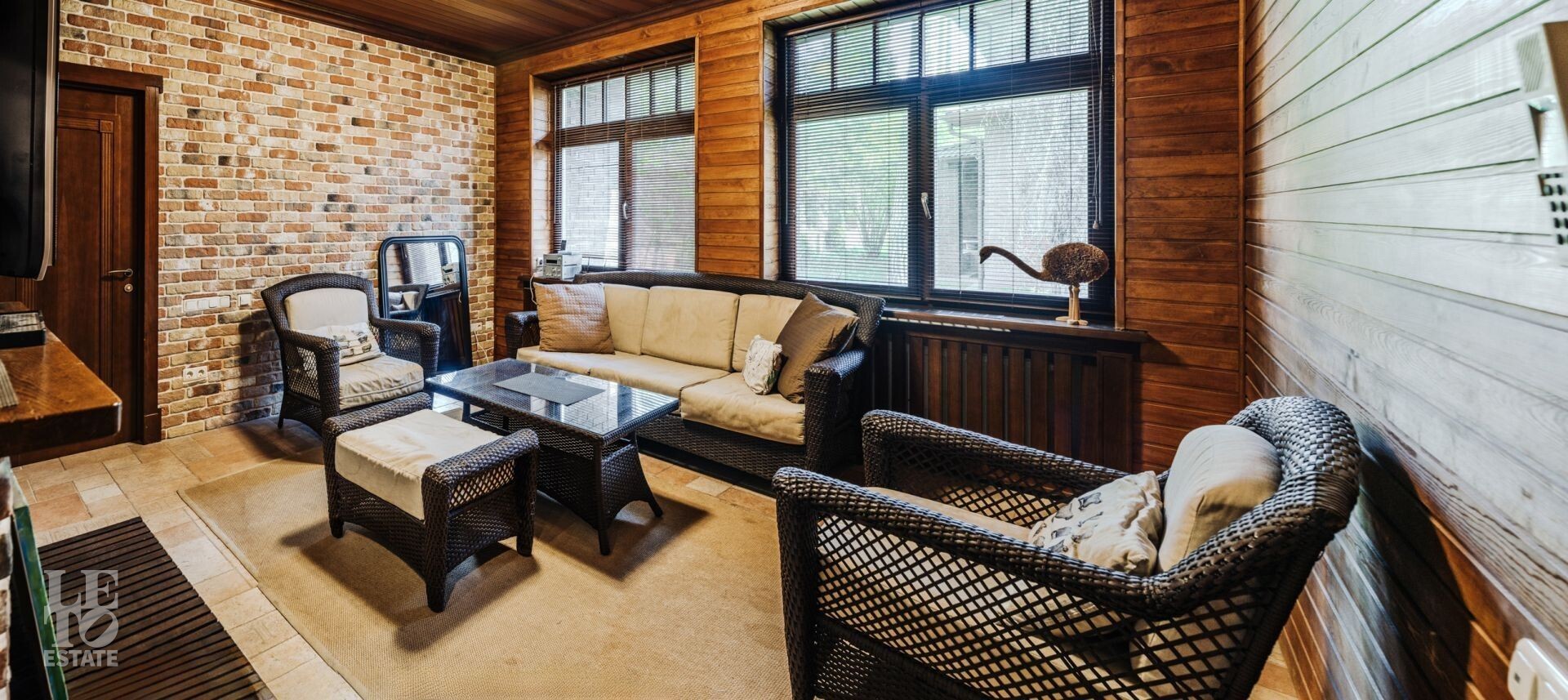 Внутренняя отделка гостевого дома выполнена из натурального дерева, он может использоваться как отдельный полностью автономный дом для гостей, детей-подростков или родителей, либо как дом для проживания помощников.
