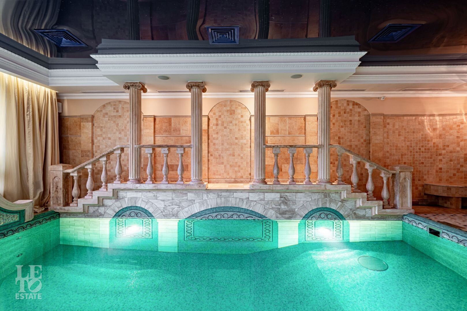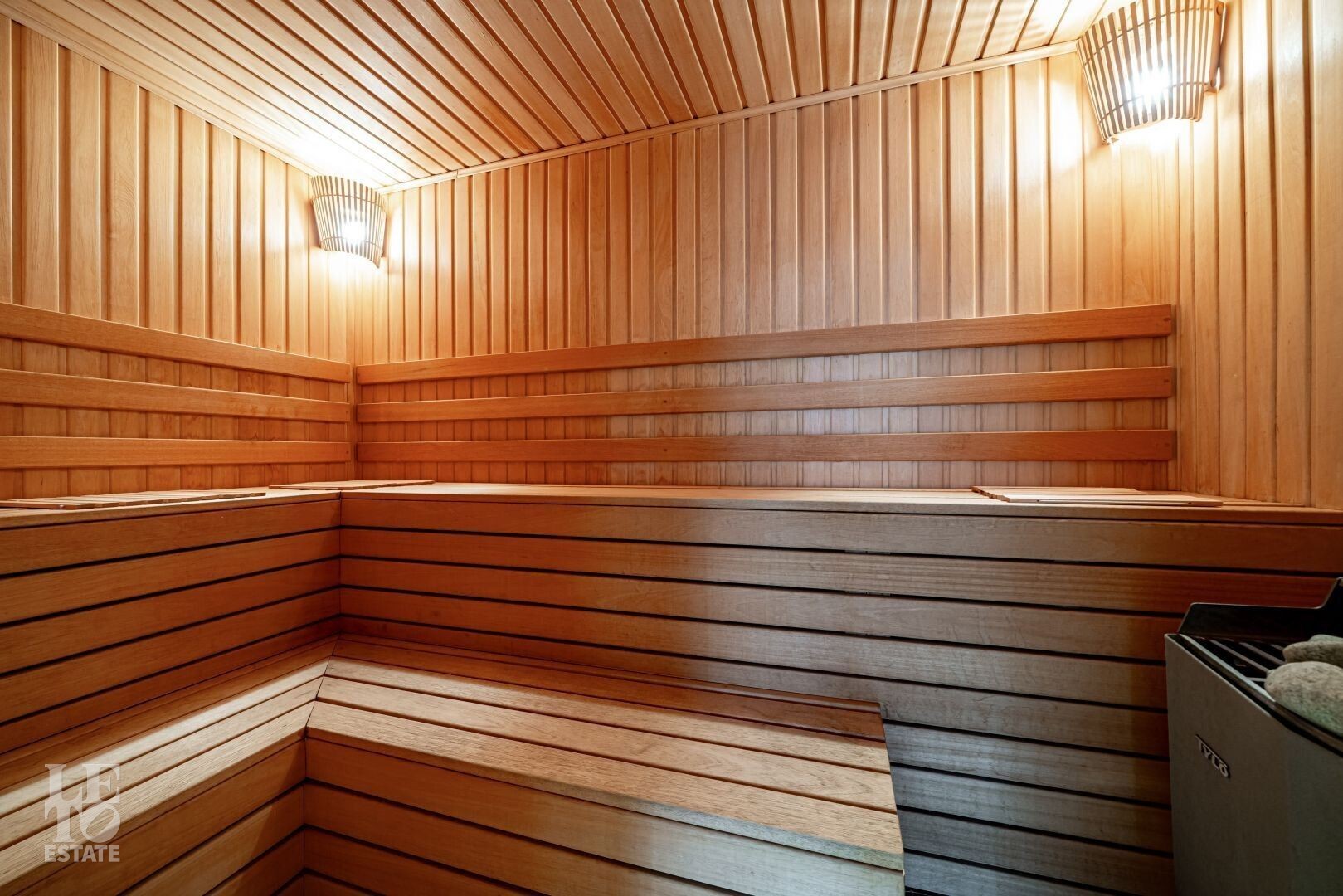 Первый этаж: холл, прихожая, гардеробная, санузел, гостиная, столовая с выходом на террасу, кухня, кабинет, спа-зона с бассейном, сауна, душевая, санузел;
