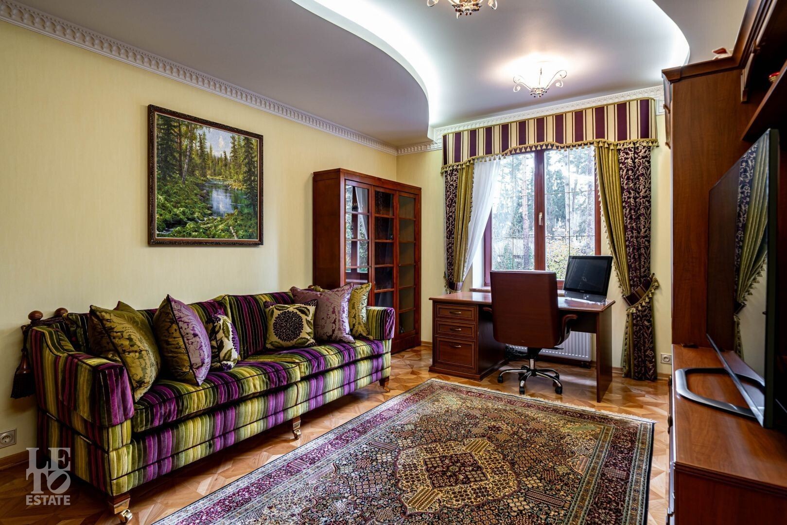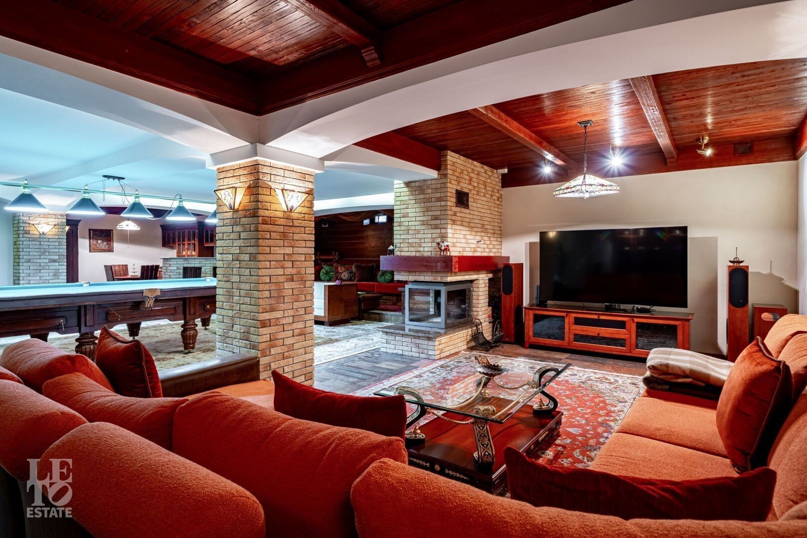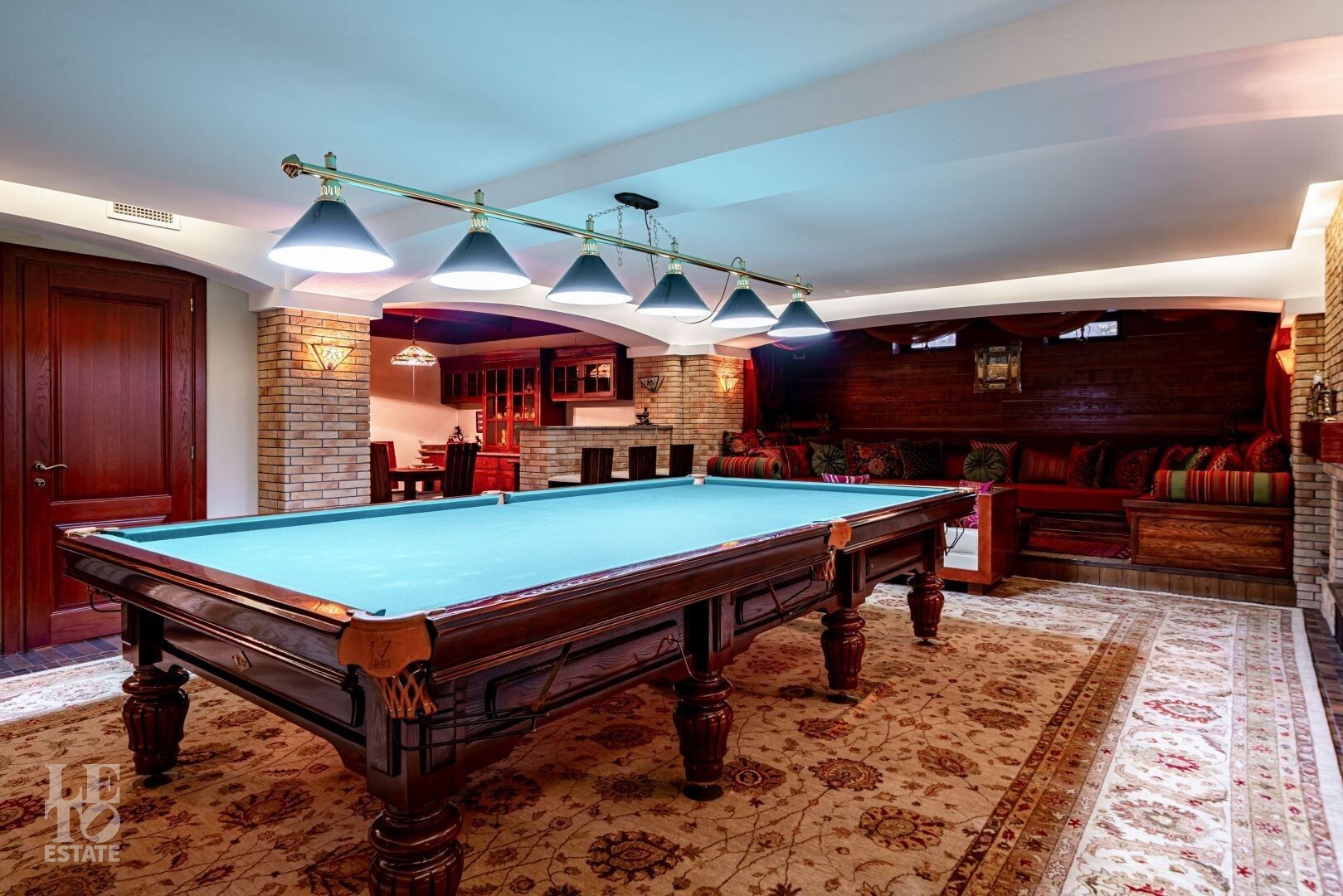 Простор и комфорт: коттедж предлагает достаточно места для всей семьи, пять спален, кабинет, гостиная с камином и вторым светом, на цокольном этаже располагается биллиардная, бар, ТВ-зона с удобными диванами- для полноценного отдыха. Собственный бассейн: возможность наслаждаться плаванием и расслаблением в собственном бассейне — это мечта, которая может стать реальностью. В доме есть гараж на два автомобиля и просторная парковка.