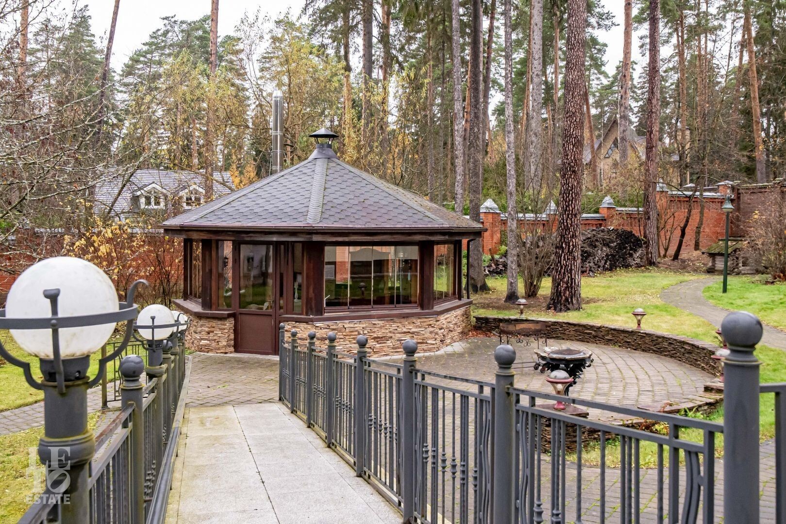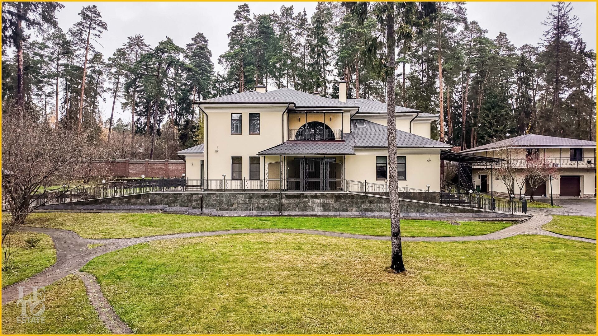 На участке также расположен гараж на три автомобиля с двухкомнатной квартирой для помощников, просторная парковка.