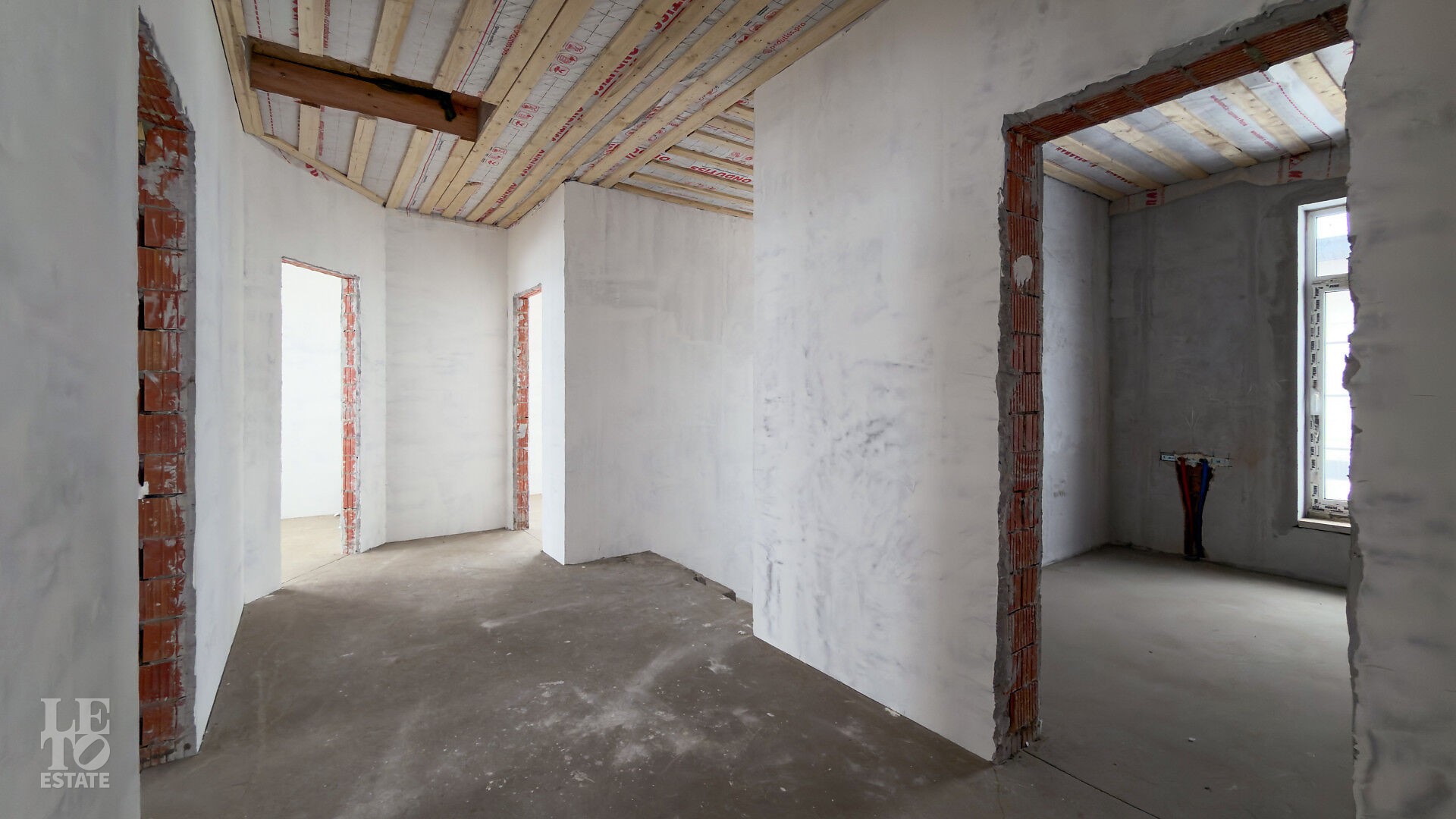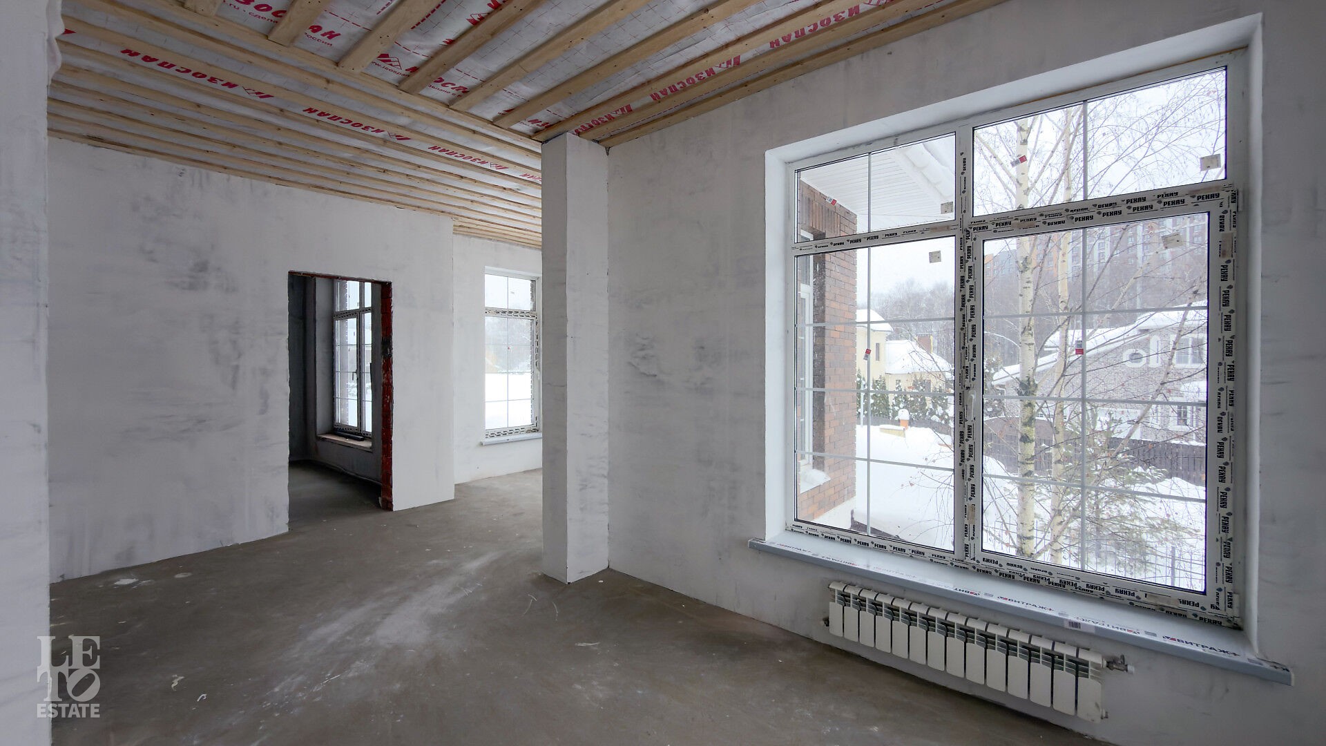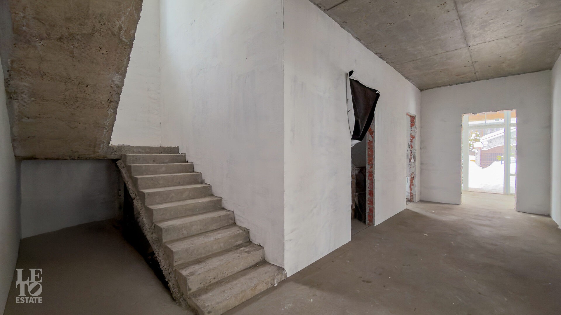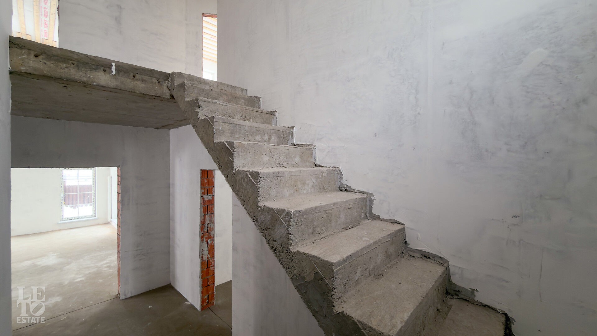 Дом построен из кирпича. Выполнена внутренняя отделка "White Box" - выровнены и отштукатурены стены под финишное покрытие. Установлены панорамные окна Rehau.