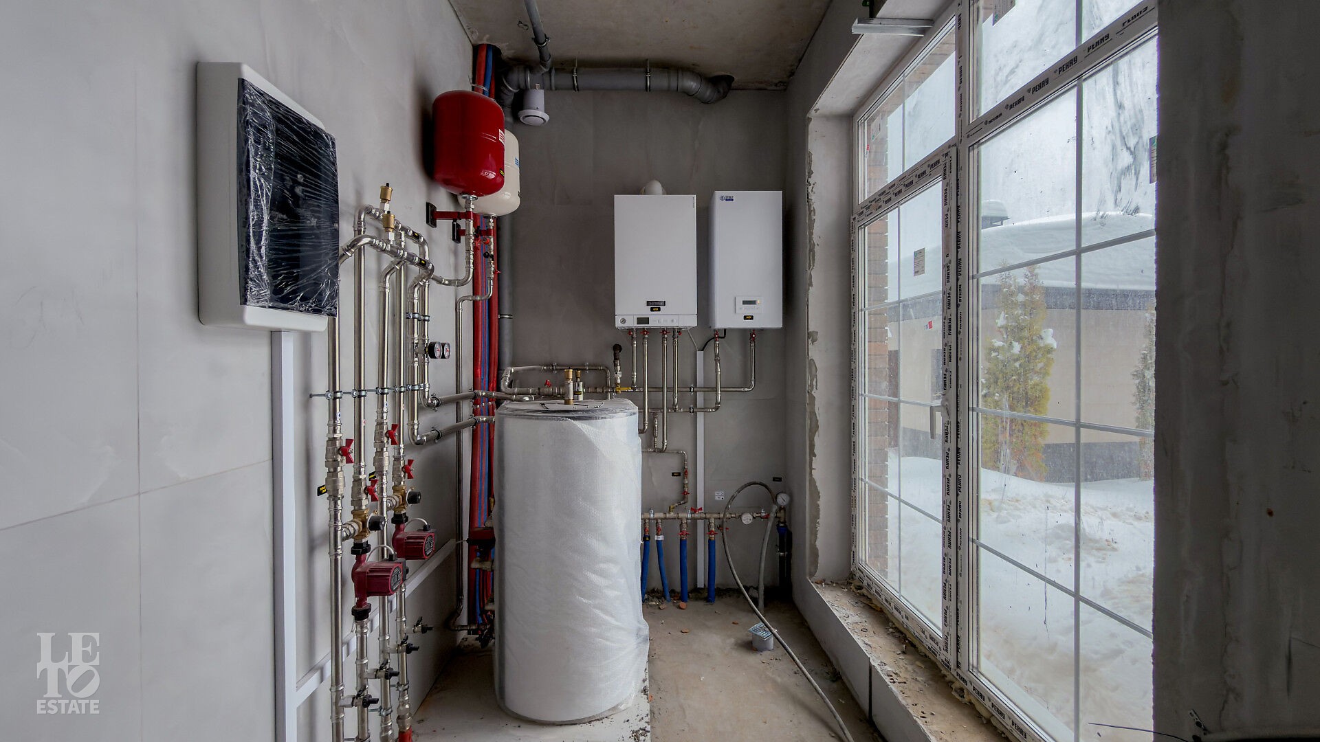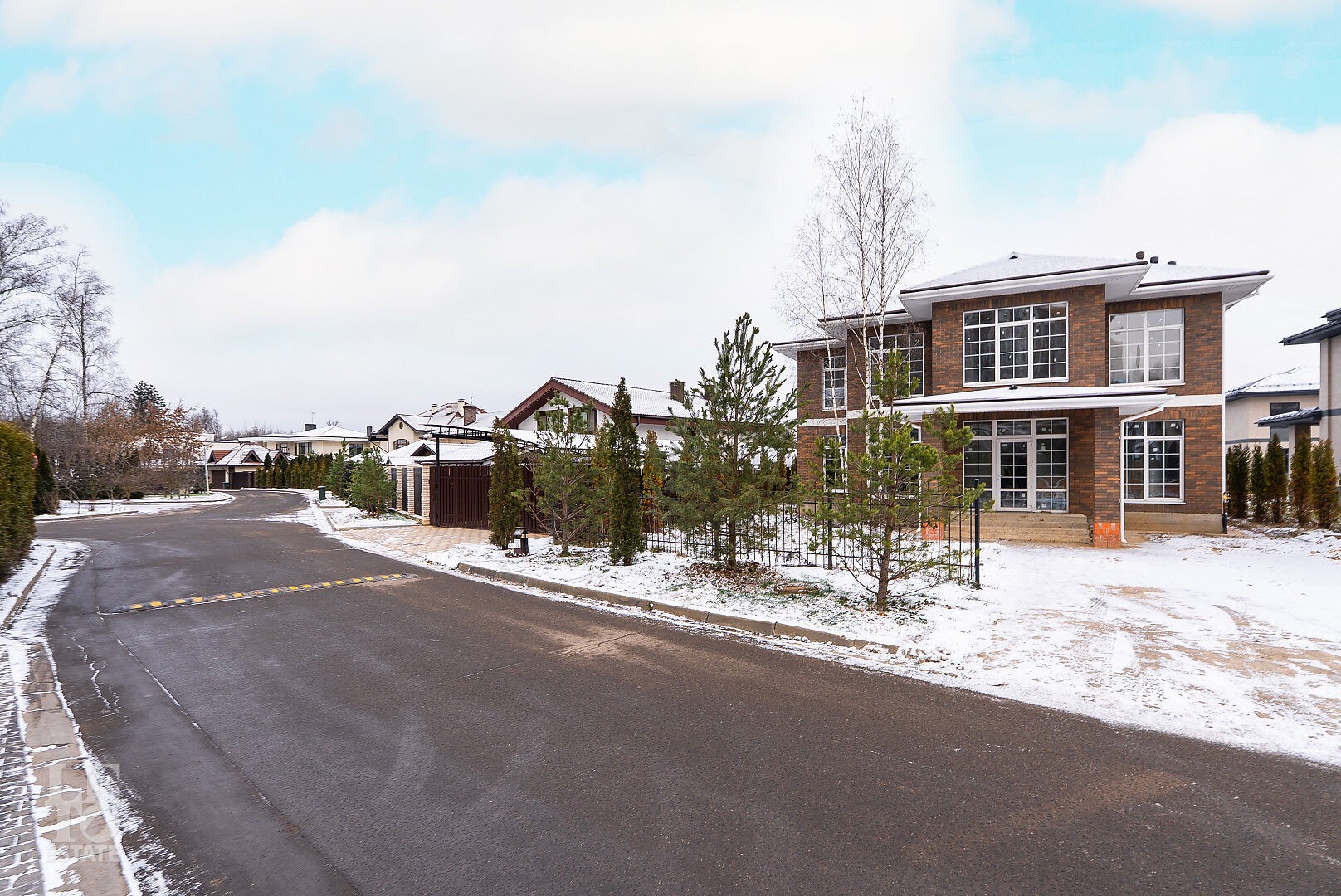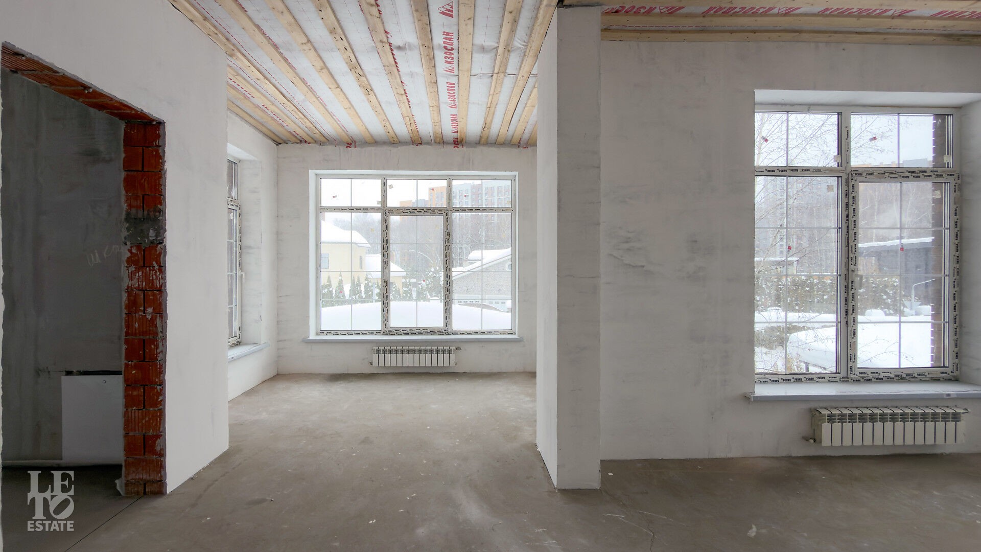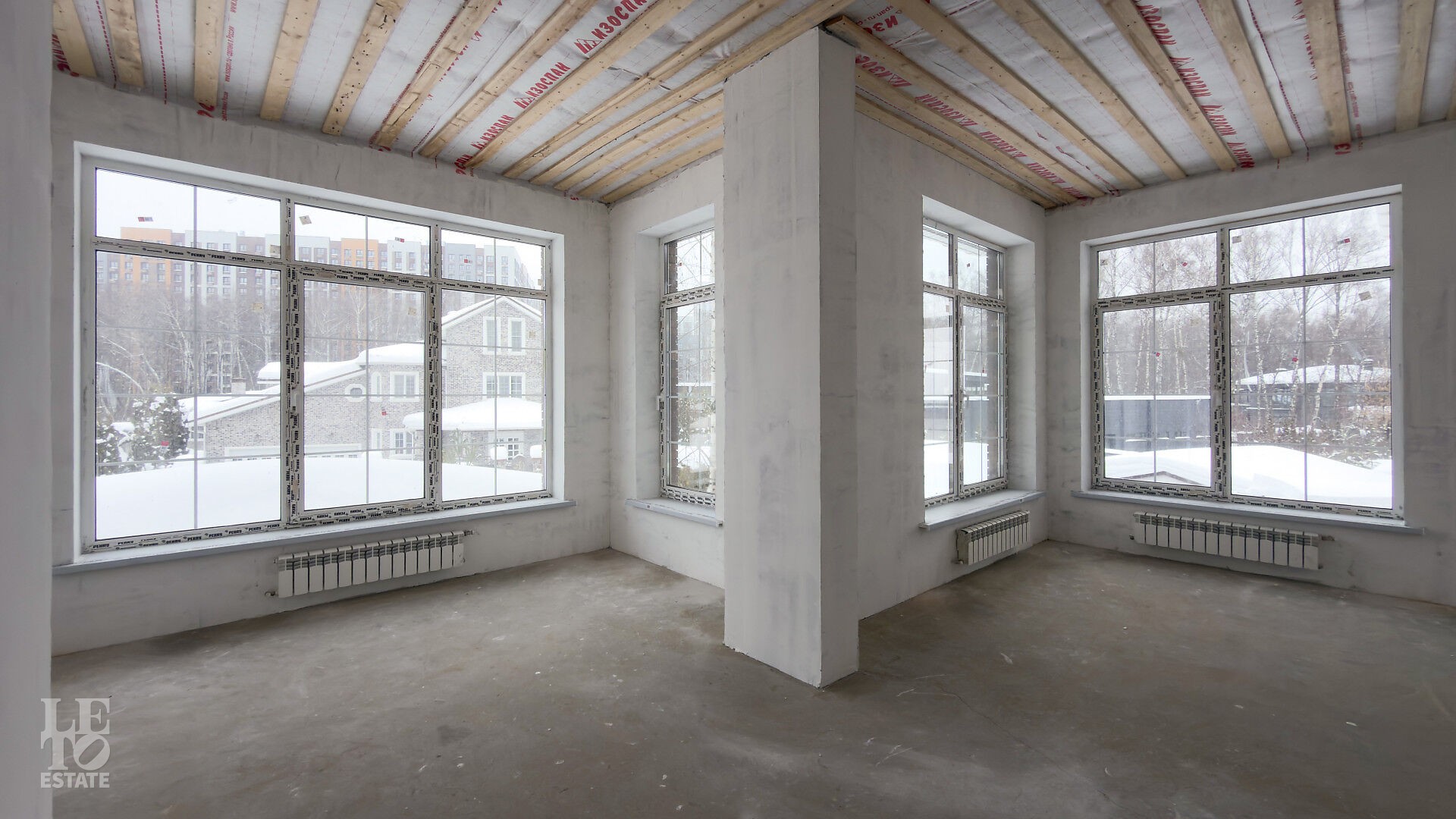 Дом построен из кирпича. Выполнена внутренняя отделка "White Box" - выровнены и отштукатурены стены под финишное покрытие. Установлены панорамные окна Rehau.