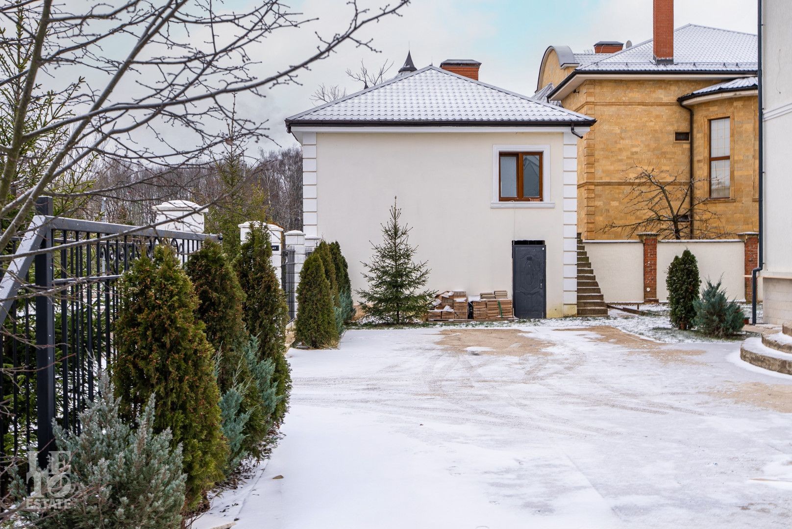 Участок площадью 15 соток полностью огорожен, выровнен. На участке гараж с комнатой для персонала на втором этаже.