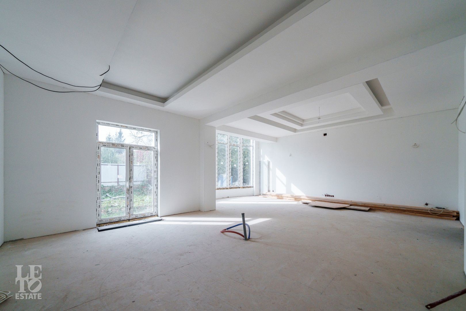 Выполнена внутренняя отделка "White Box" - выровнены и отштукатурены стены под финишное покрытие. По дому разведены тёплые полы. Дом представлен под отделку, поэтому в нём можно создать желаемую планировку и дизайн по своему вкусу.
