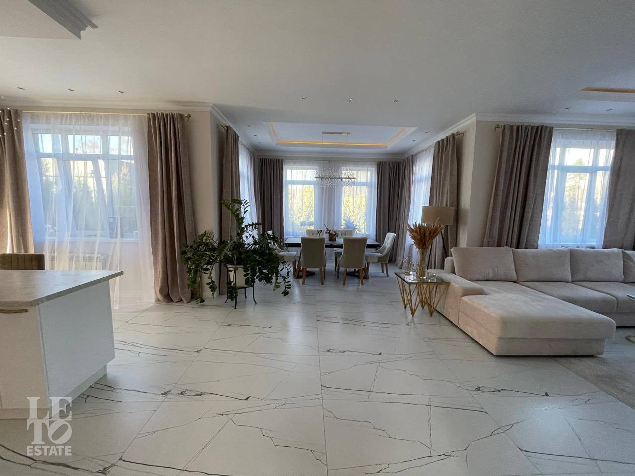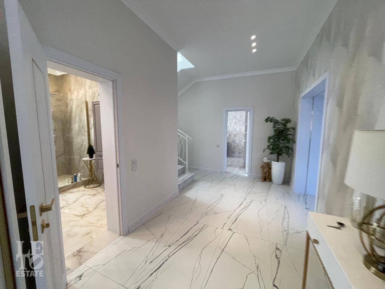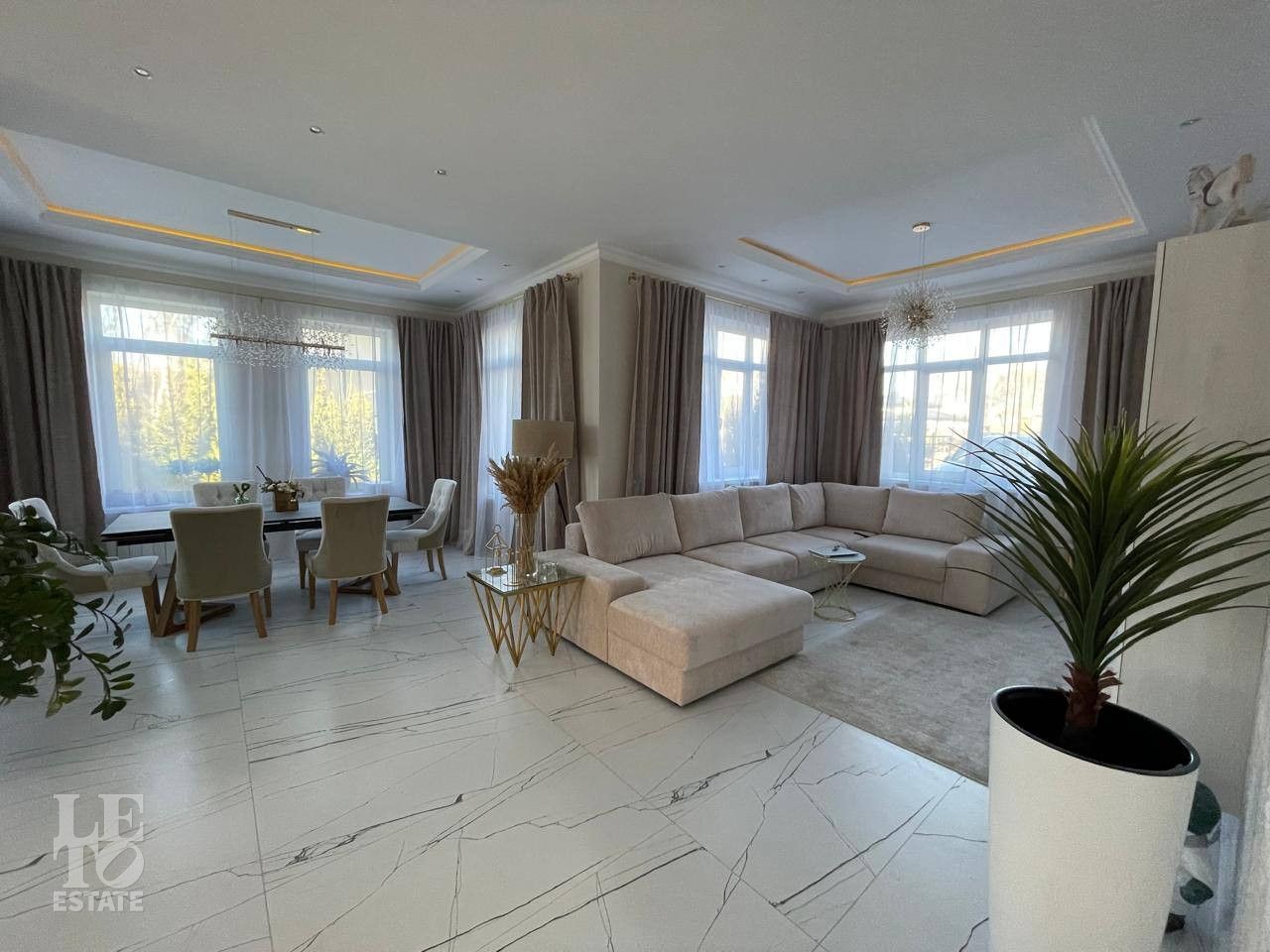 Отделка выполнена по индивидуальному проекту в мягких светлых тонах. Интерьер продуман до мелочей. Эксклюзивные дизайнерские решения придают уникальность внутреннему пространству дома.