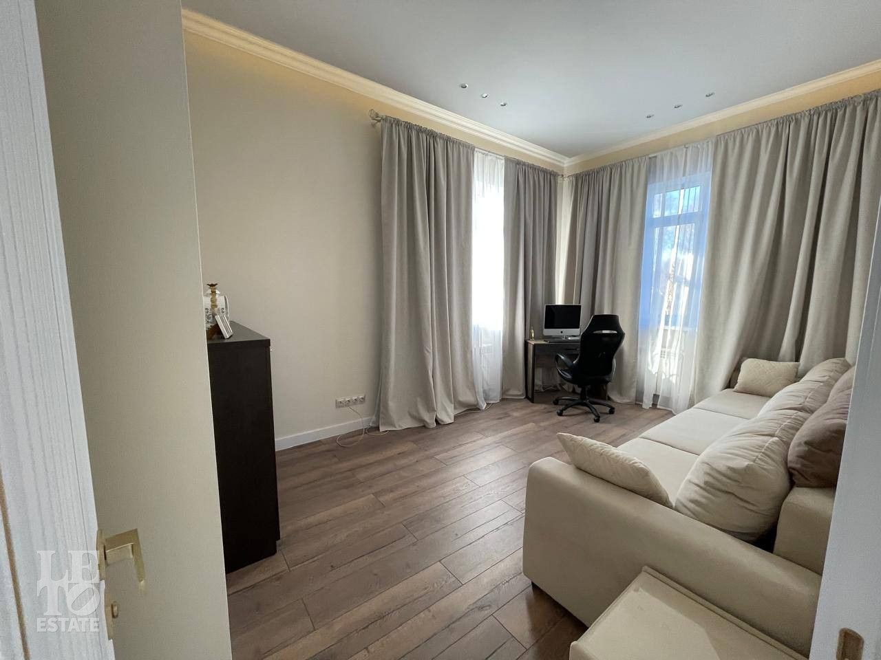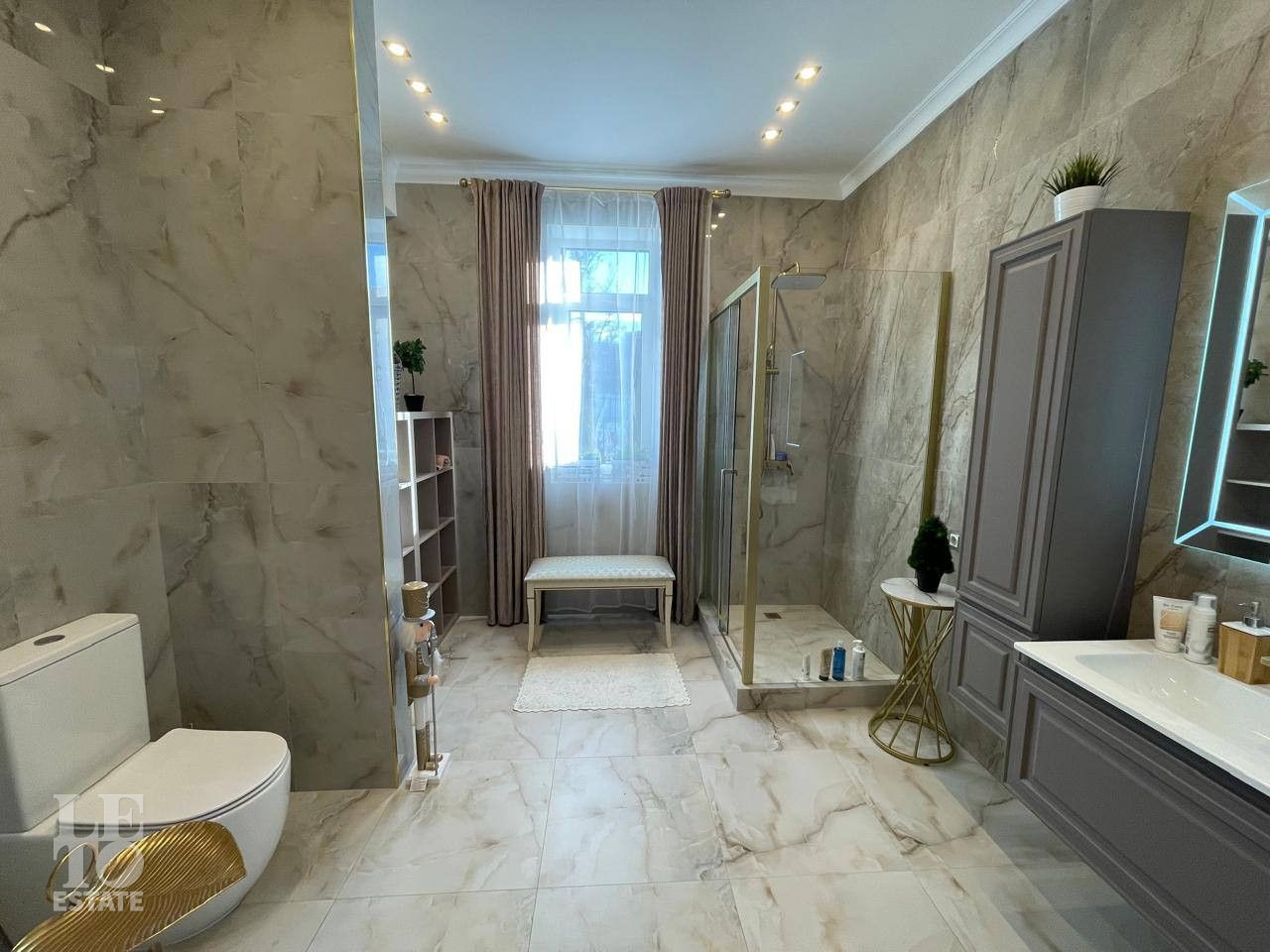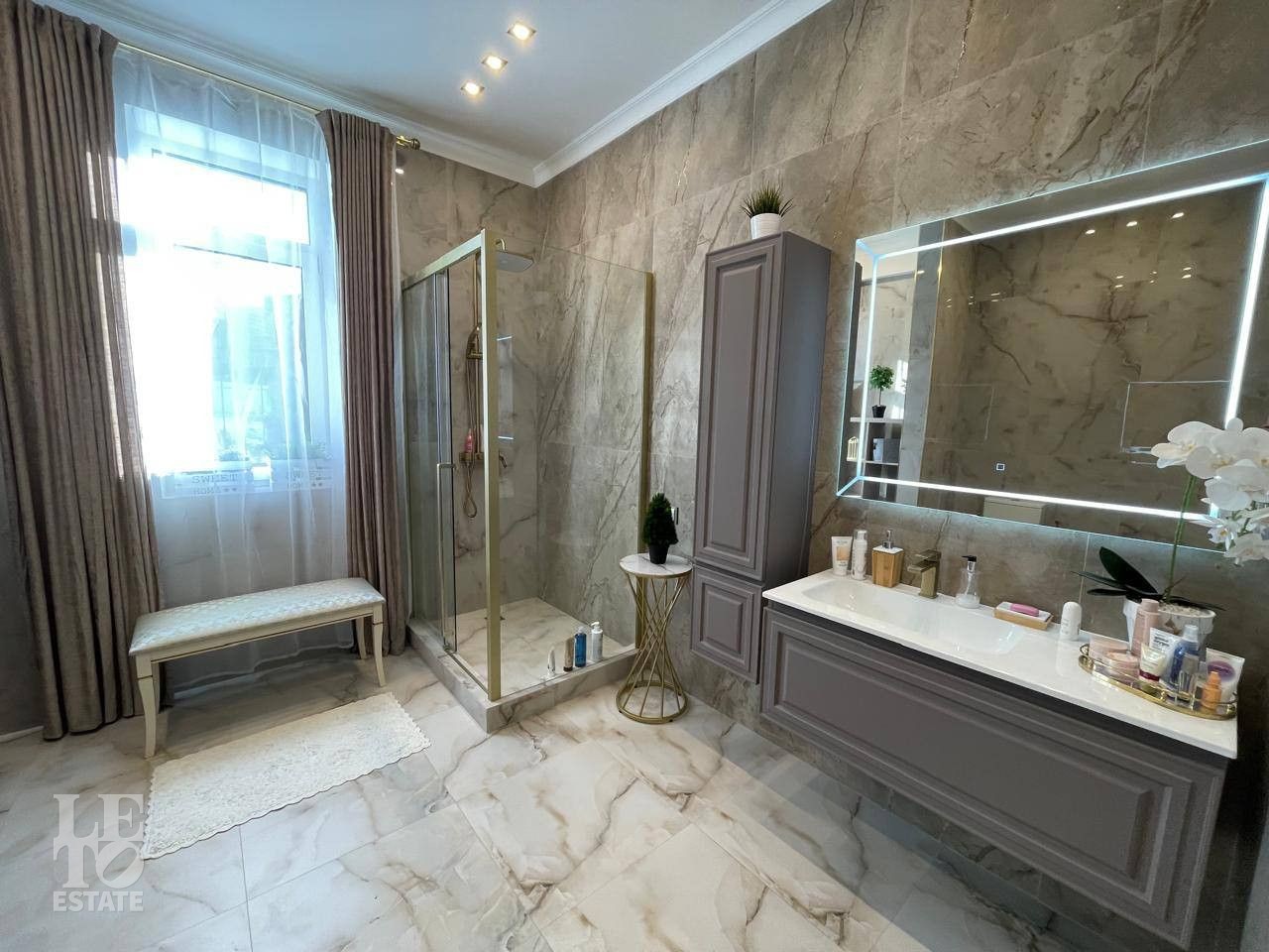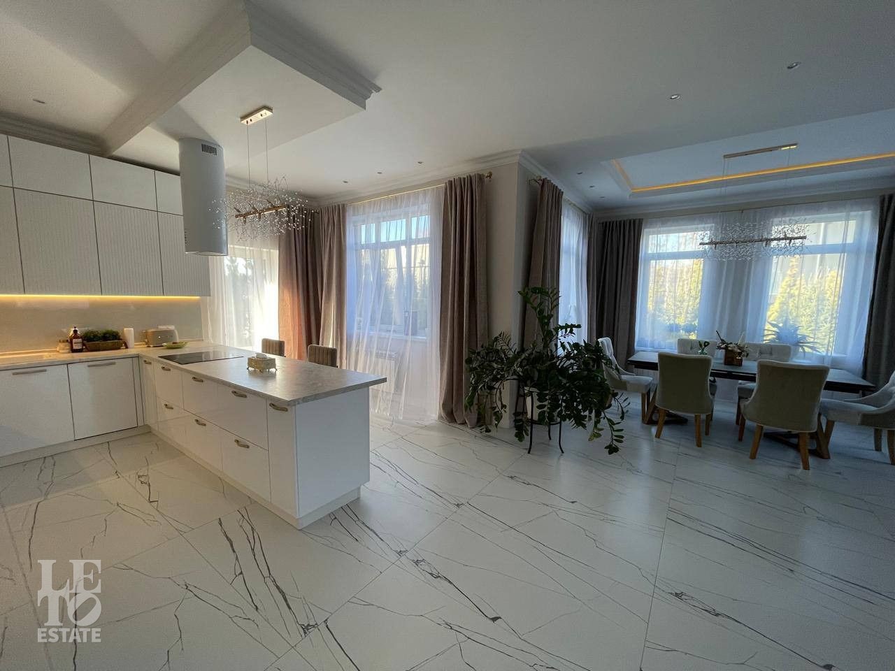 Отделка выполнена по индивидуальному проекту в мягких светлых тонах. Интерьер продуман до мелочей. Эксклюзивные дизайнерские решения придают уникальность внутреннему пространству дома.
