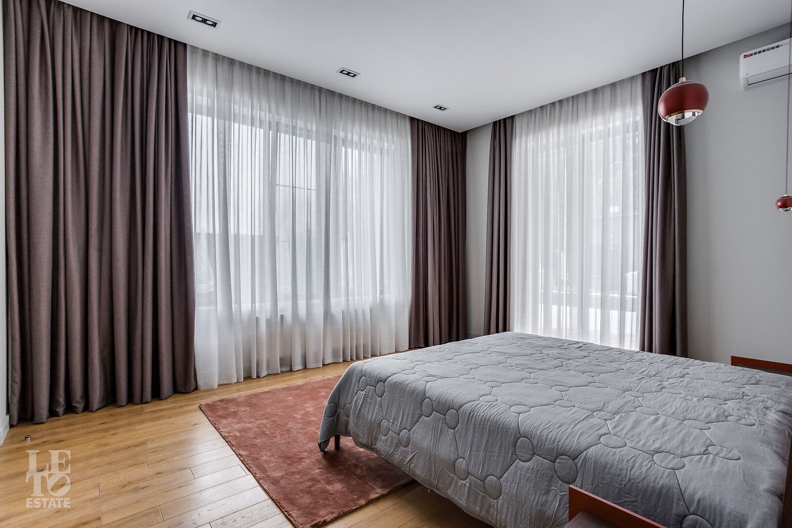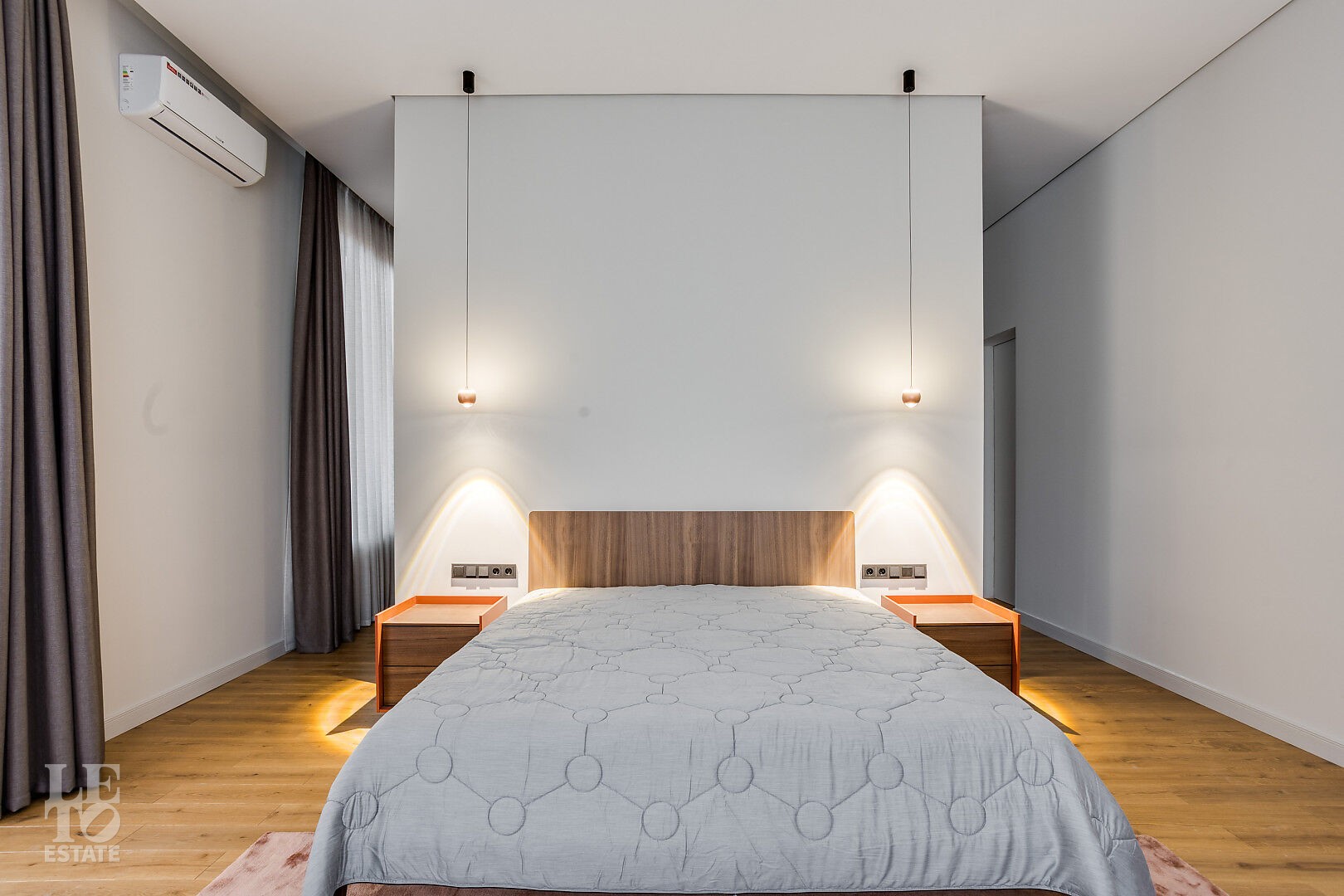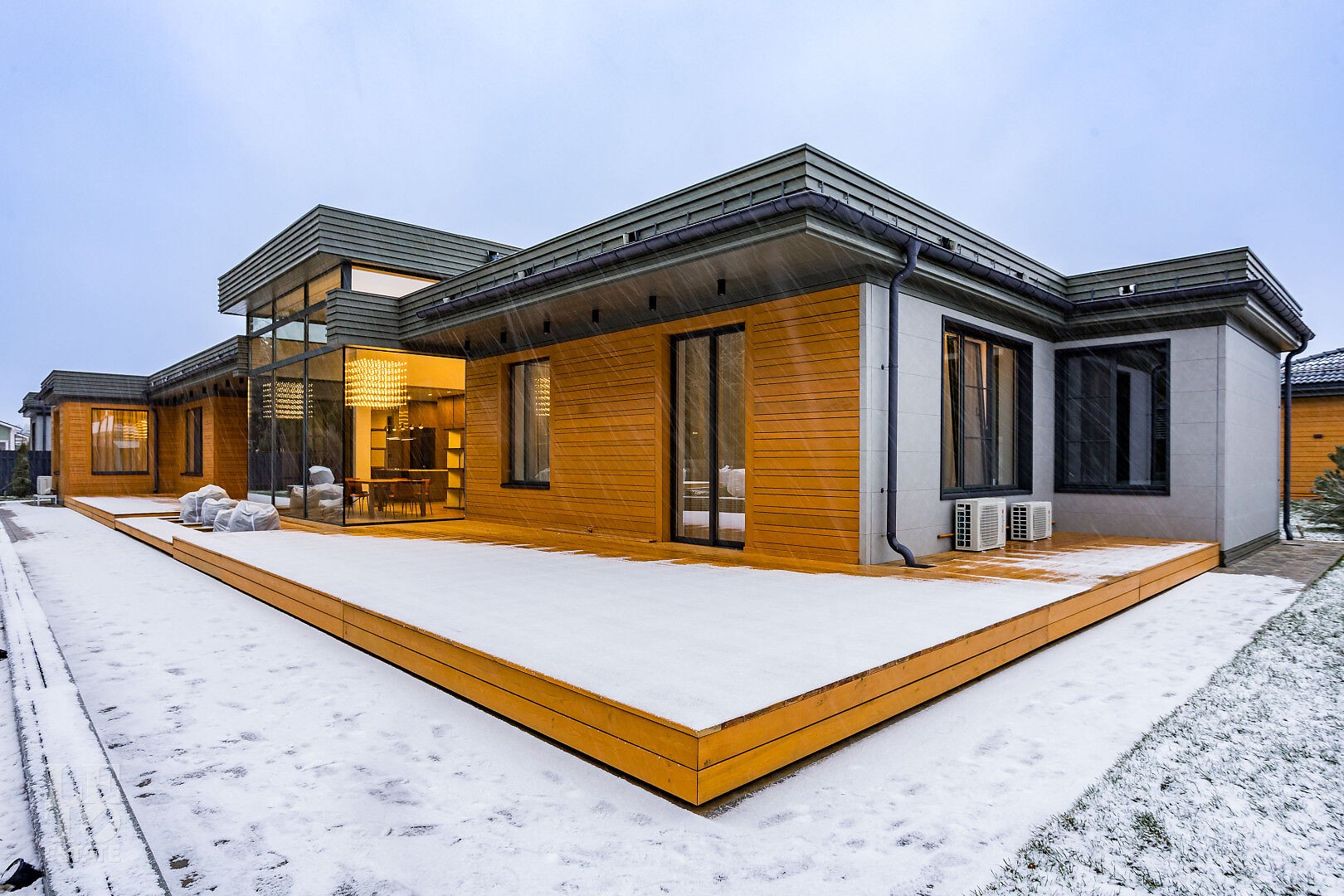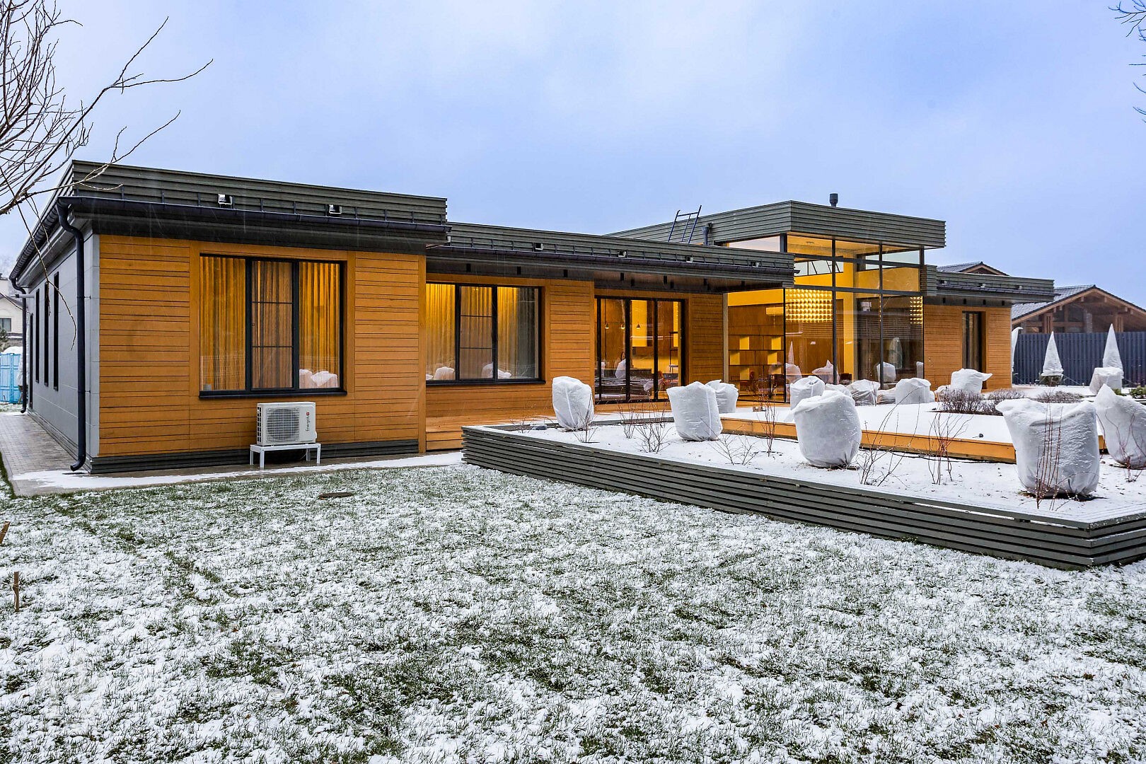 Весь дом оснащён современной инженерной инфраструктурой: вытяжной вентиляцией, кондиционерами, системой подсветки фасада и участка.